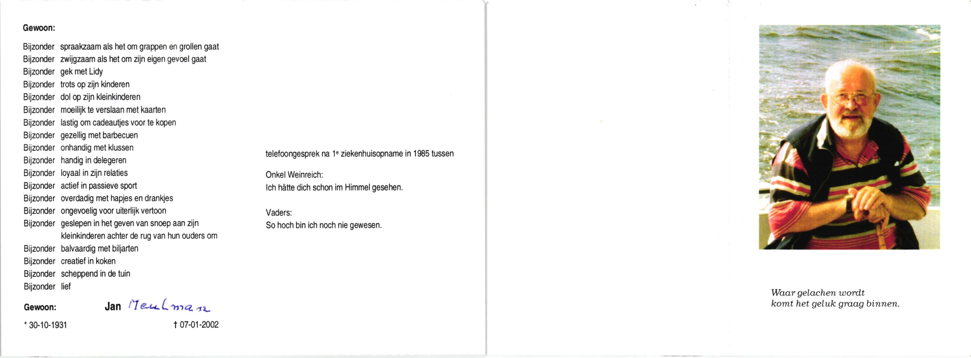 MEULMAN, , Jan, geboren op 30-10-1931, overleden op 7-1-2002 op 70-jarige leeftijd.