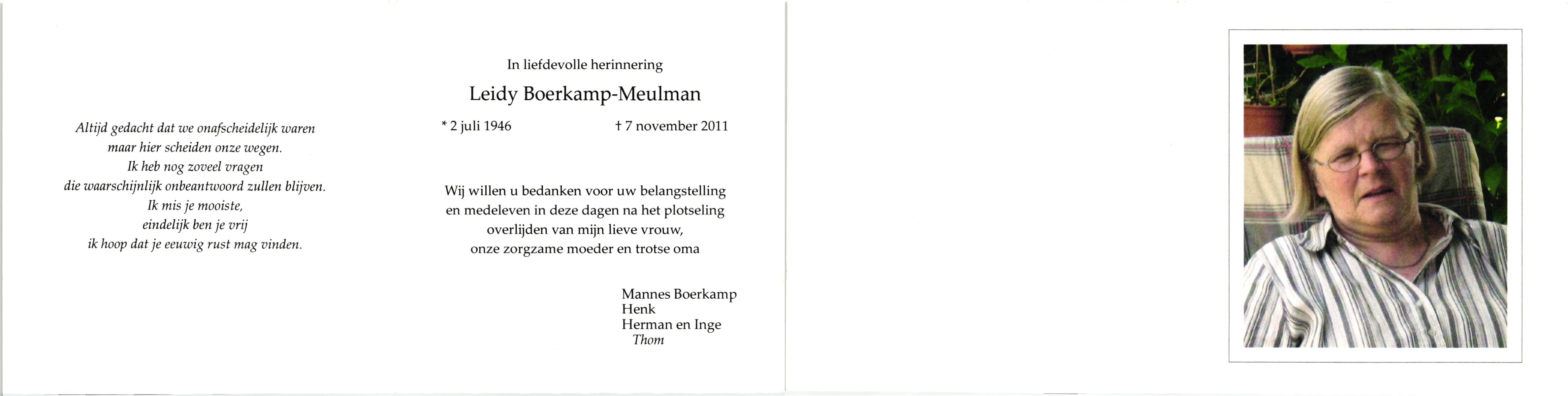 MEULMAN, , Leidy, geboren op 2-7-1946, overleden op 7-11-2011 op 65-jarige leeftijd.