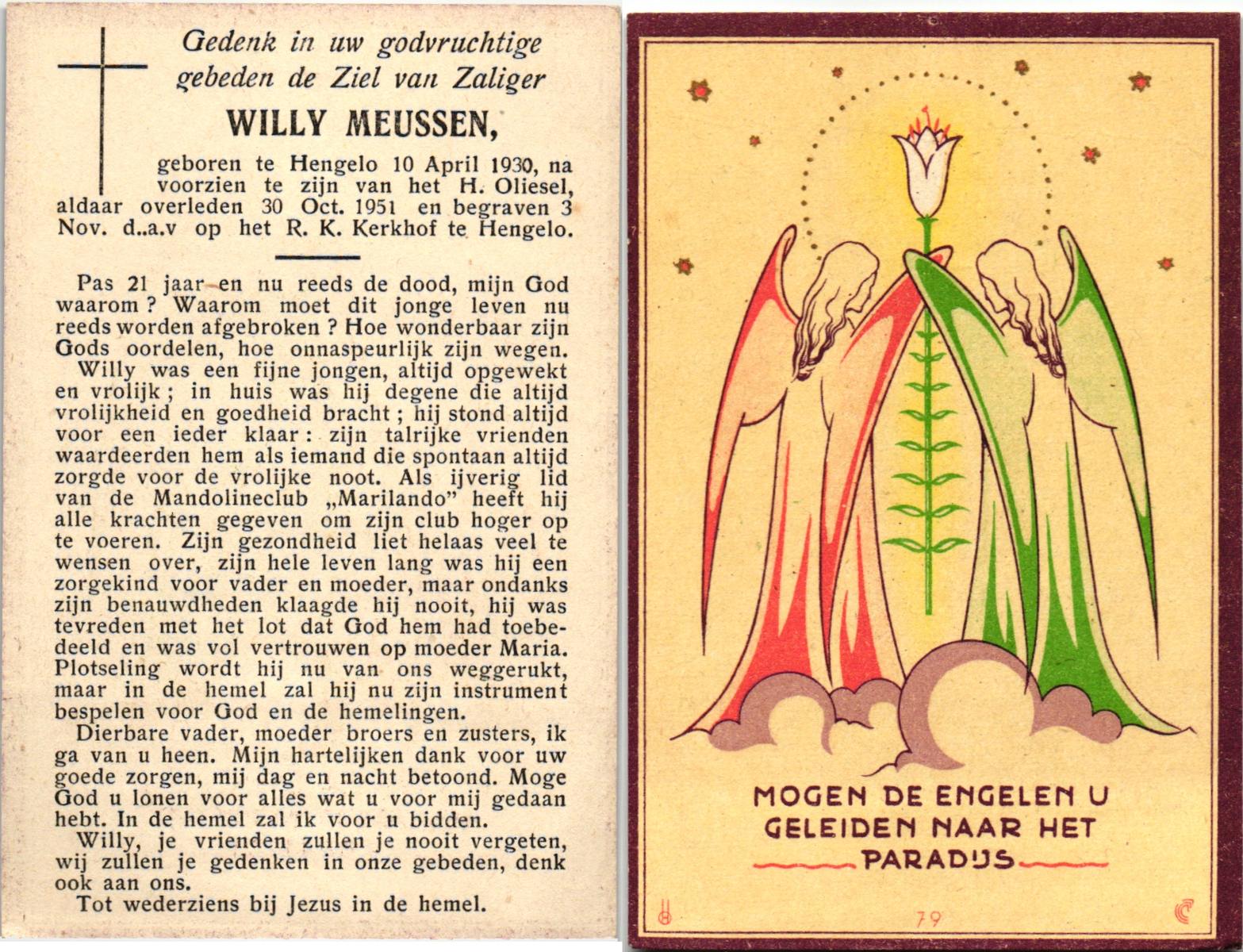 MEUSSEN, , Willy, geboren op 10-4-1930 te Hengelo (O), overleden op 30-10-1951 te Hengelo (O) op 21-jarige leeftijd, begraven op 3-11-1951 te Hengelo, rk.