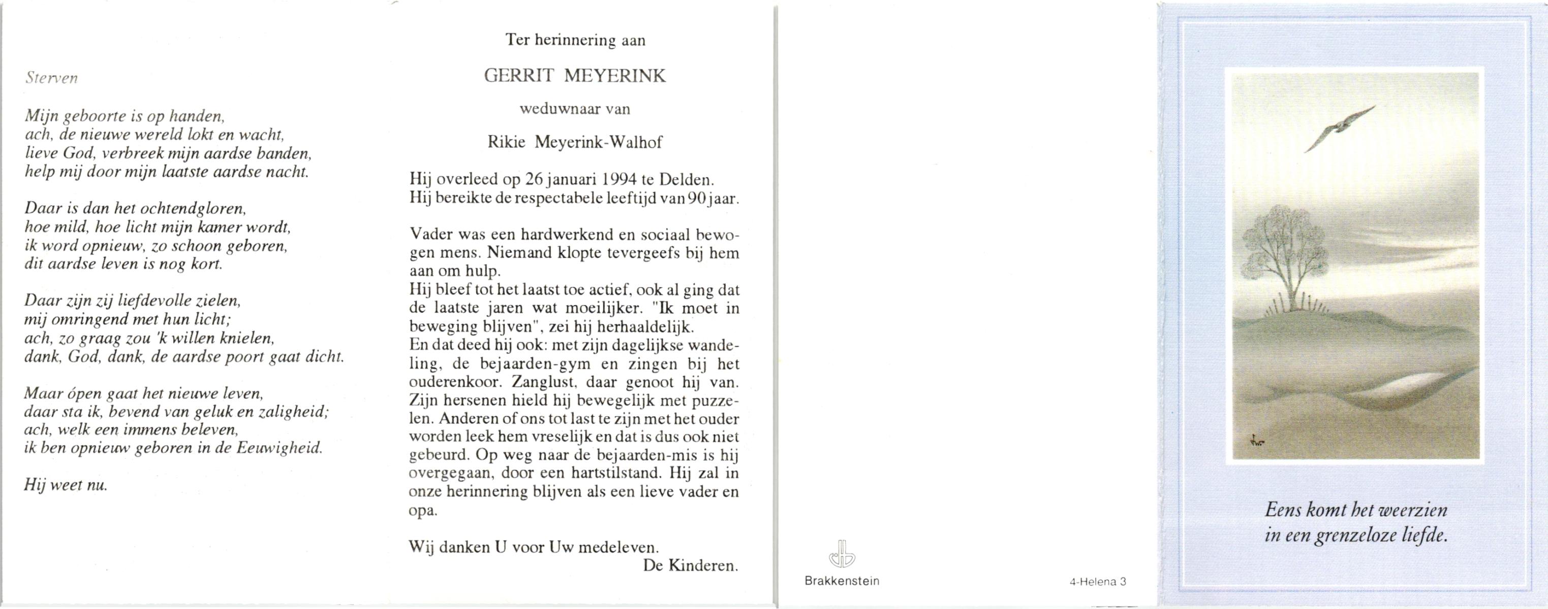 MEYERINK, , Gerrit, geboren op 26-1-1904 te Delden op 90-jarige leeftijd.