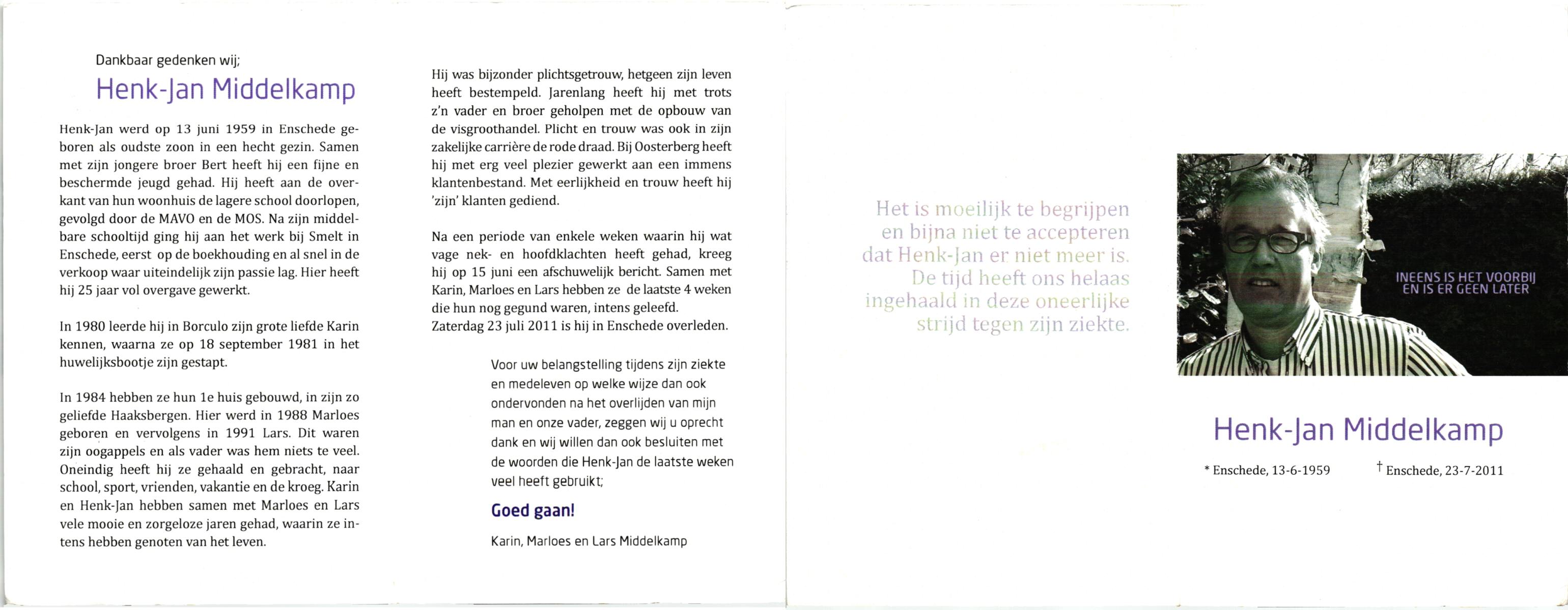 MIDDELKAMP, , Henk-Jan, geboren op 13-6-1959 te Enschede, overleden op 23-7-2011 te Enschede op 52-jarige leeftijd.