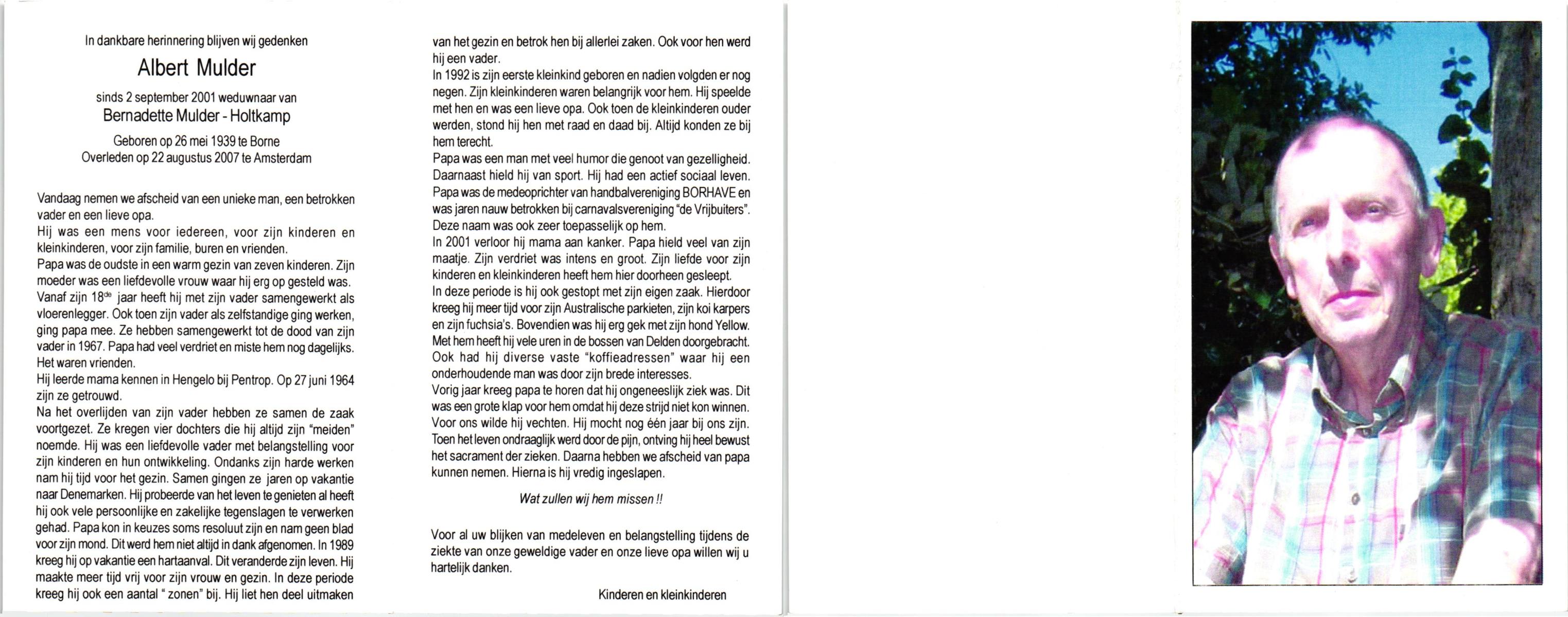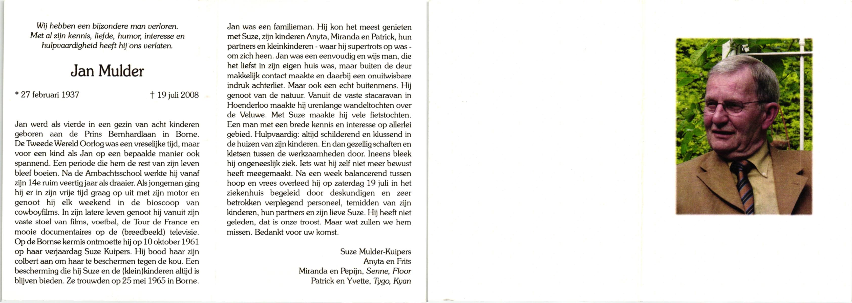 MULDER, , Jan, geboren op 27-2-1937 te Borne, overleden op 19-7-2008 op 71-jarige leeftijd.