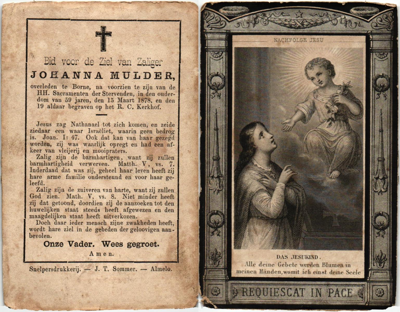 MULDER, , Johanna, overleden op 15-03-1878 te Borne op 59-jarige leeftijd, begraven op 19-03-1878 te Borne.