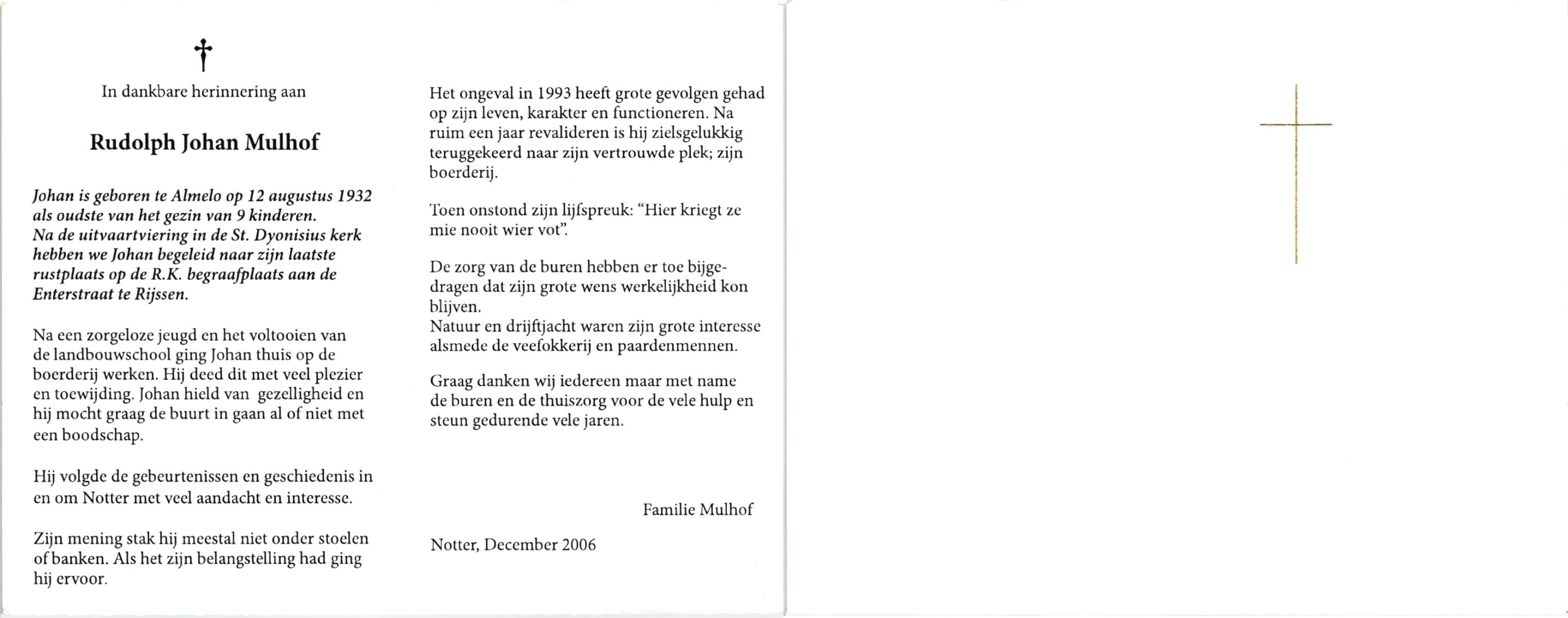 MULHOF, , Rudolph Johan, geboren op 12-8-1932 te Almelo, overleden op 00-12-2006, begraven te Rijssen.