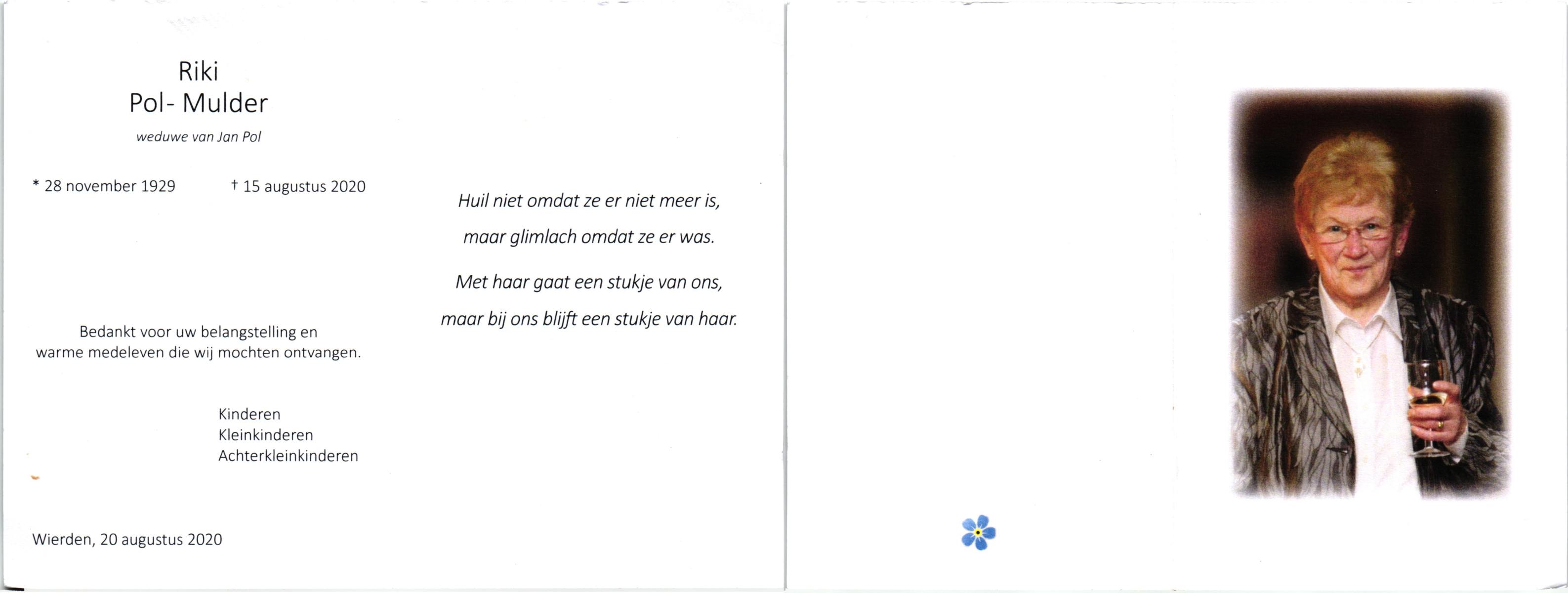 MULDER, Riki, geboren op 28-11-1929, overleden op 15-8-2020.