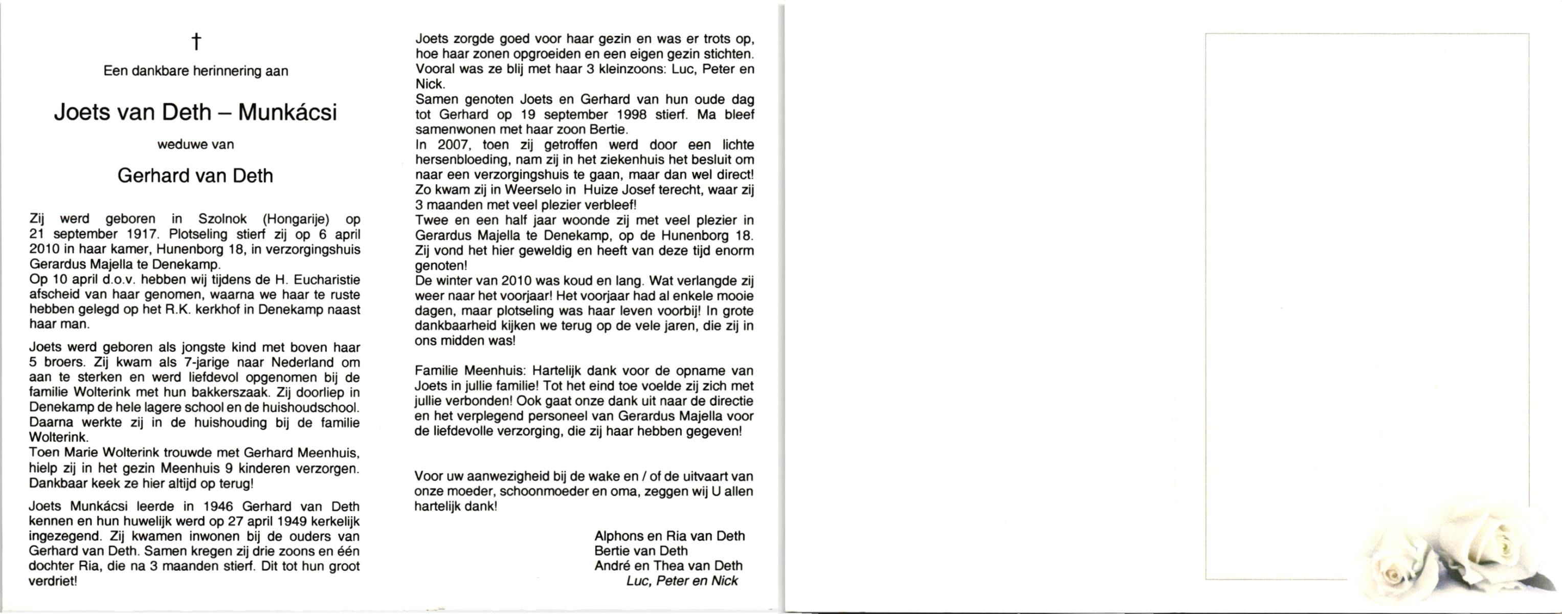 MUNKACSI, , Joets, geboren op 21-9-1917 te Szolnok, Hong., overleden op 6-4-2010 te Denekamp op 92-jarige leeftijd, begraven op 10-4-2010 te Denekamp.