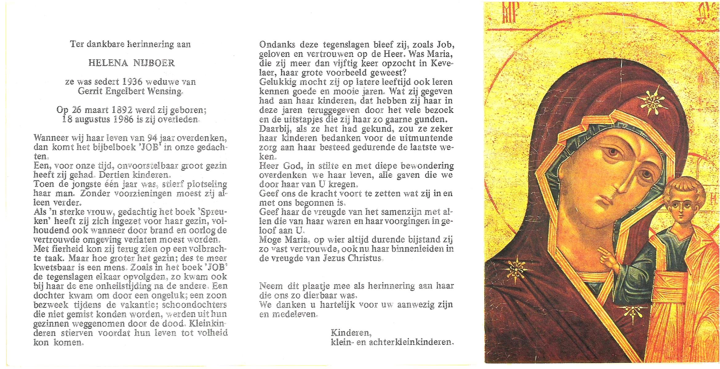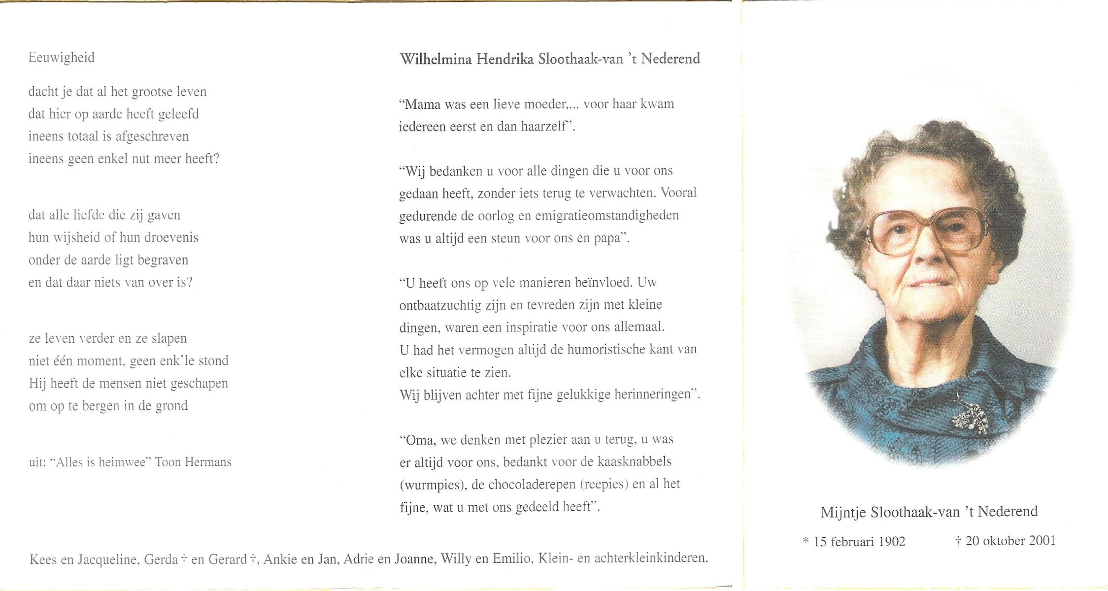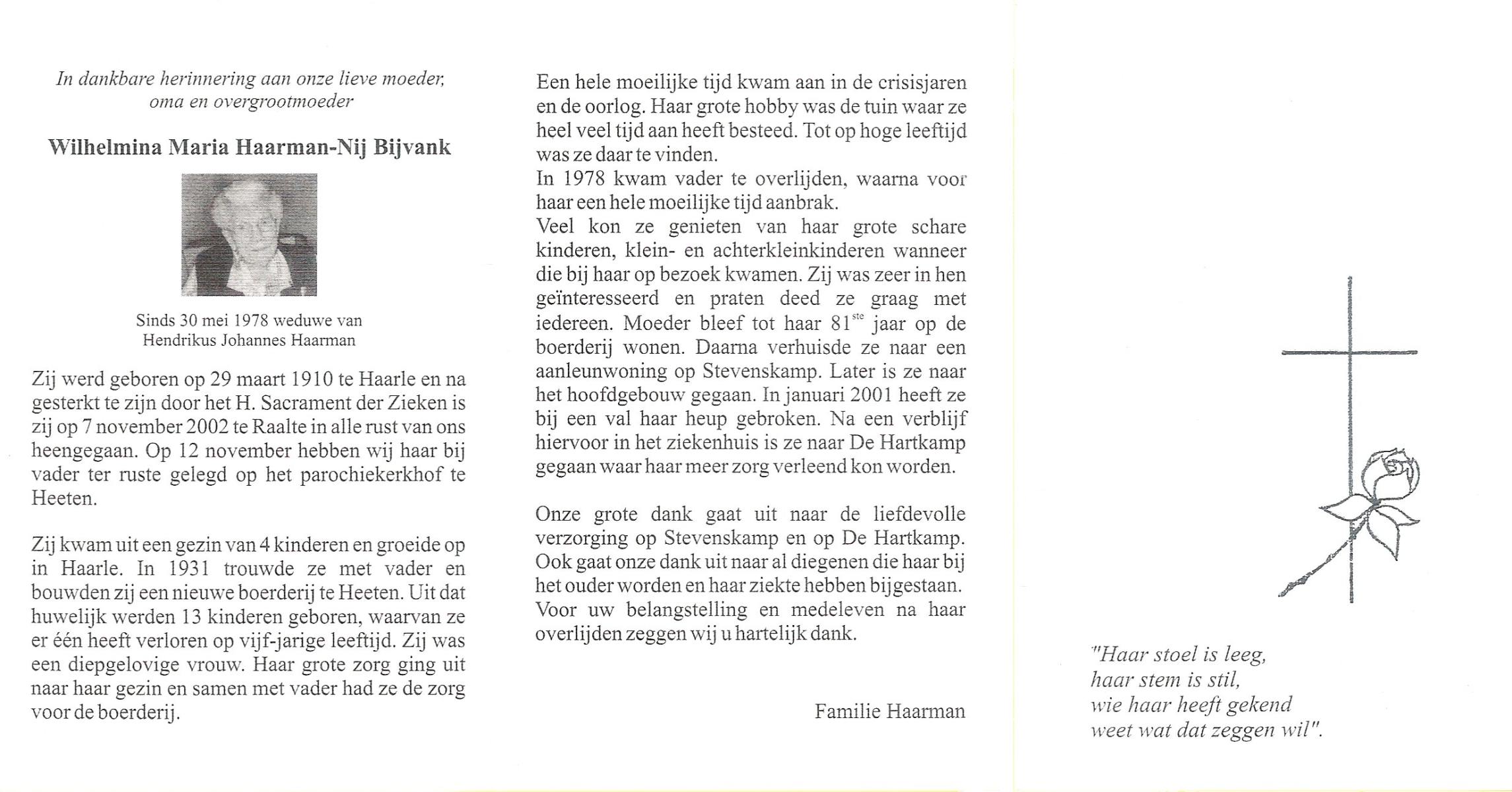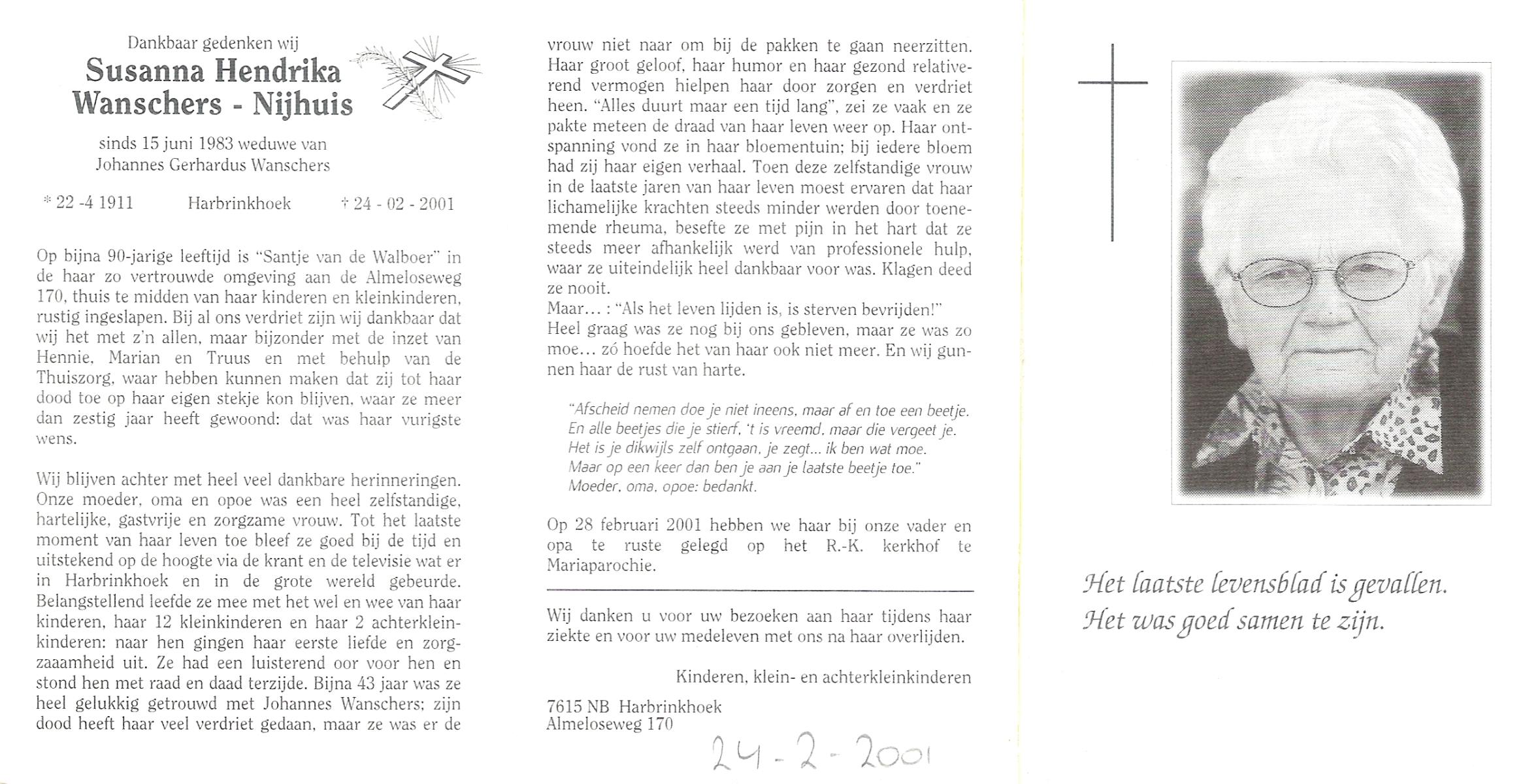 NAHUIS, Henrica Maria, geboren op 13-11-1906 te Hellendoorn, Haarle, overleden op 21-2-1996 te Hellendoorn op 89-jarige leeftijd, begraven op 26-2-1996 te Hellendoorn.