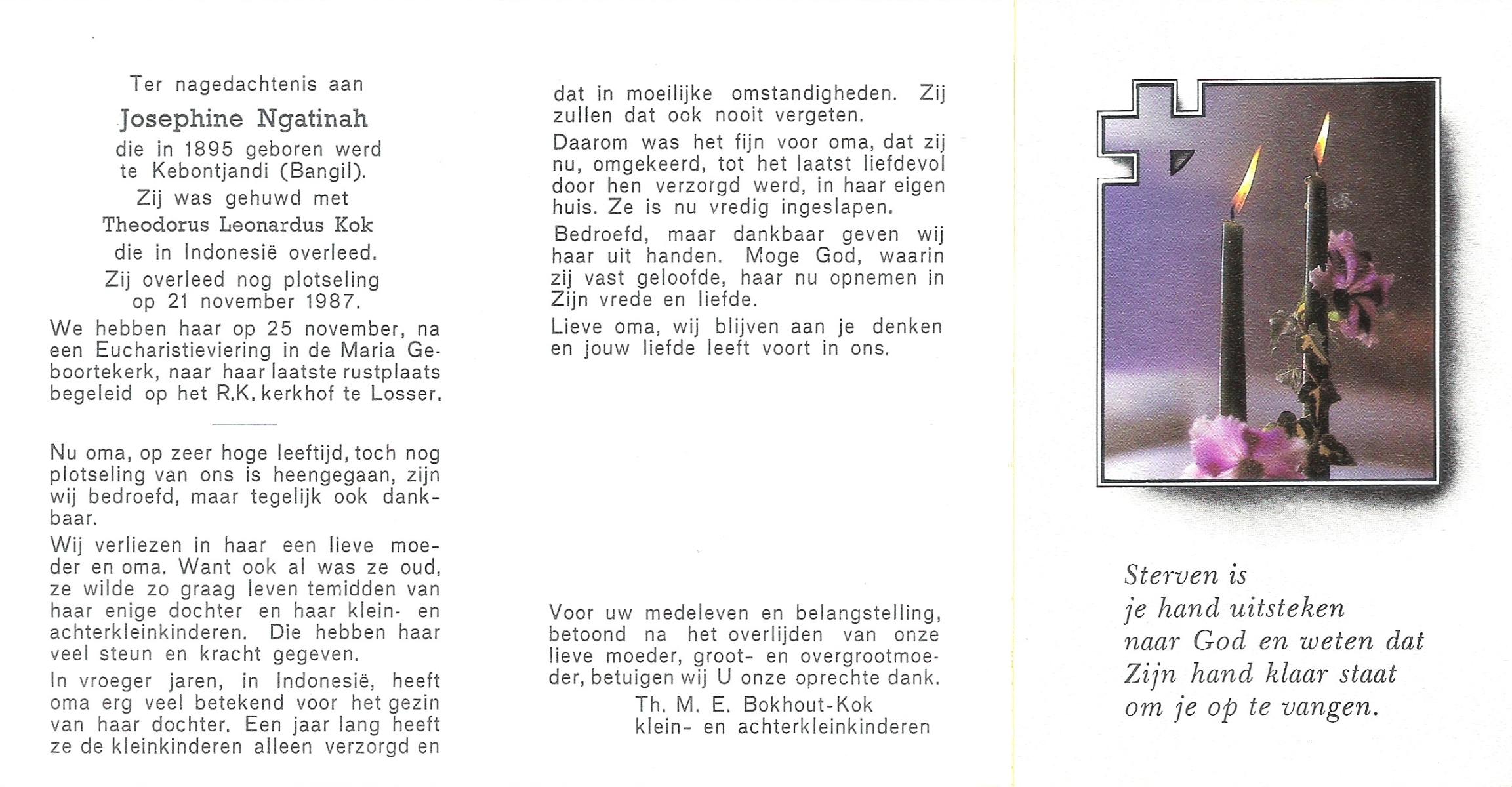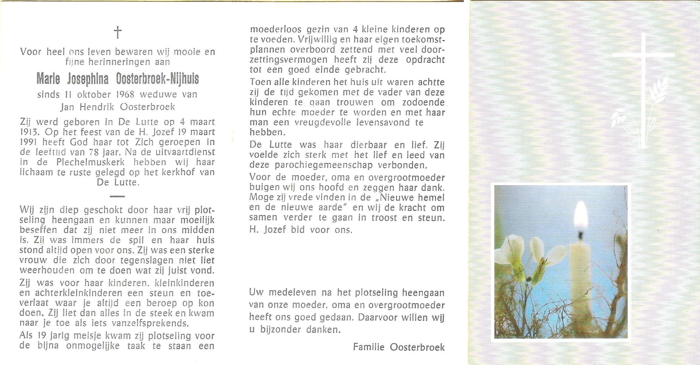 NIJHUIS, Marie Josephina, geboren op 4-3-1913 te De Lutte, overleden op 19-3-1991 op 78-jarige leeftijd, begraven te De Lutte.