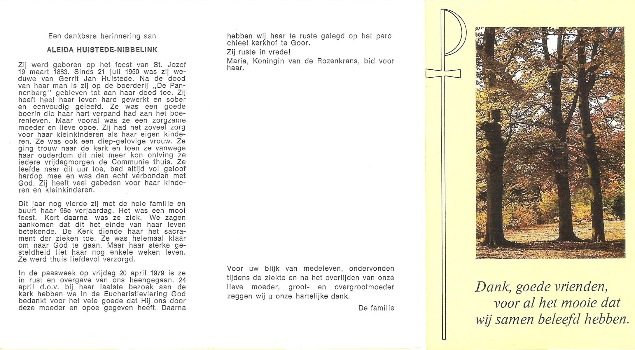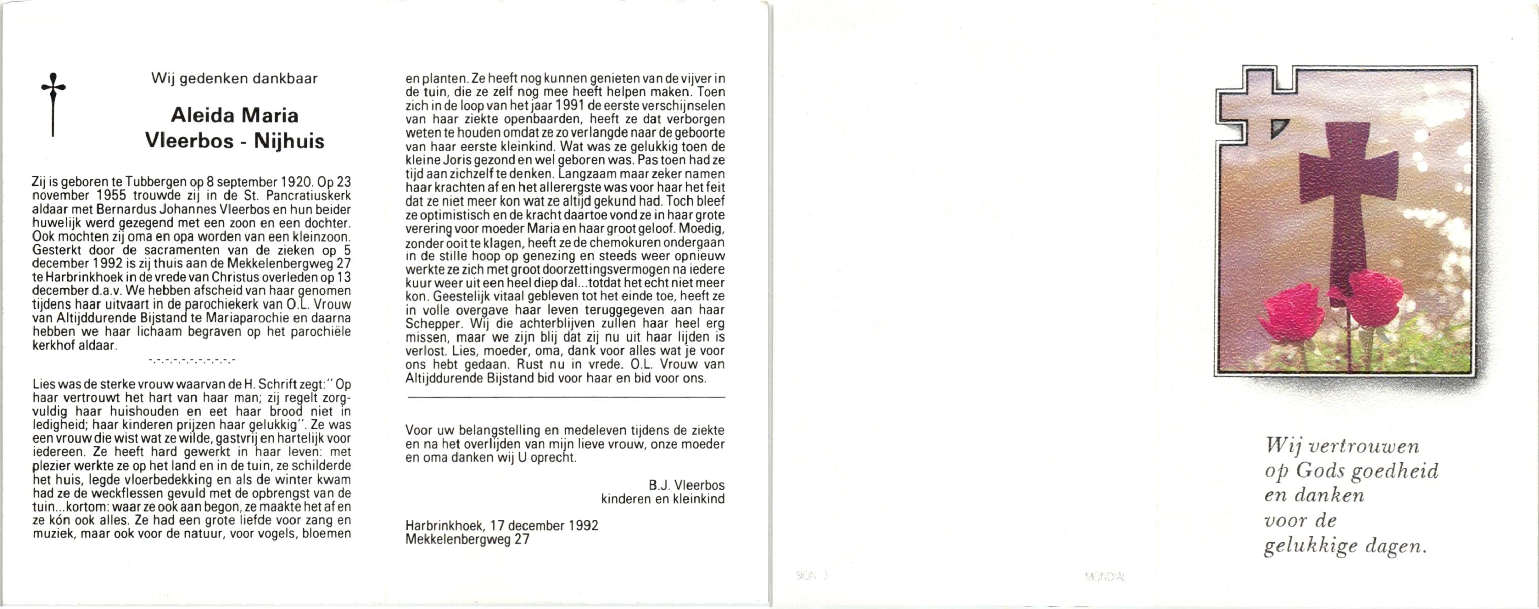 NIJHUIS, , Aleida Maria, geboren op 8-9-1920 te Tubbergen, overleden op 5-12-1992 te Harbrinkhoek op 72-jarige leeftijd, begraven op 13-12-1992 te Mariaparochie.