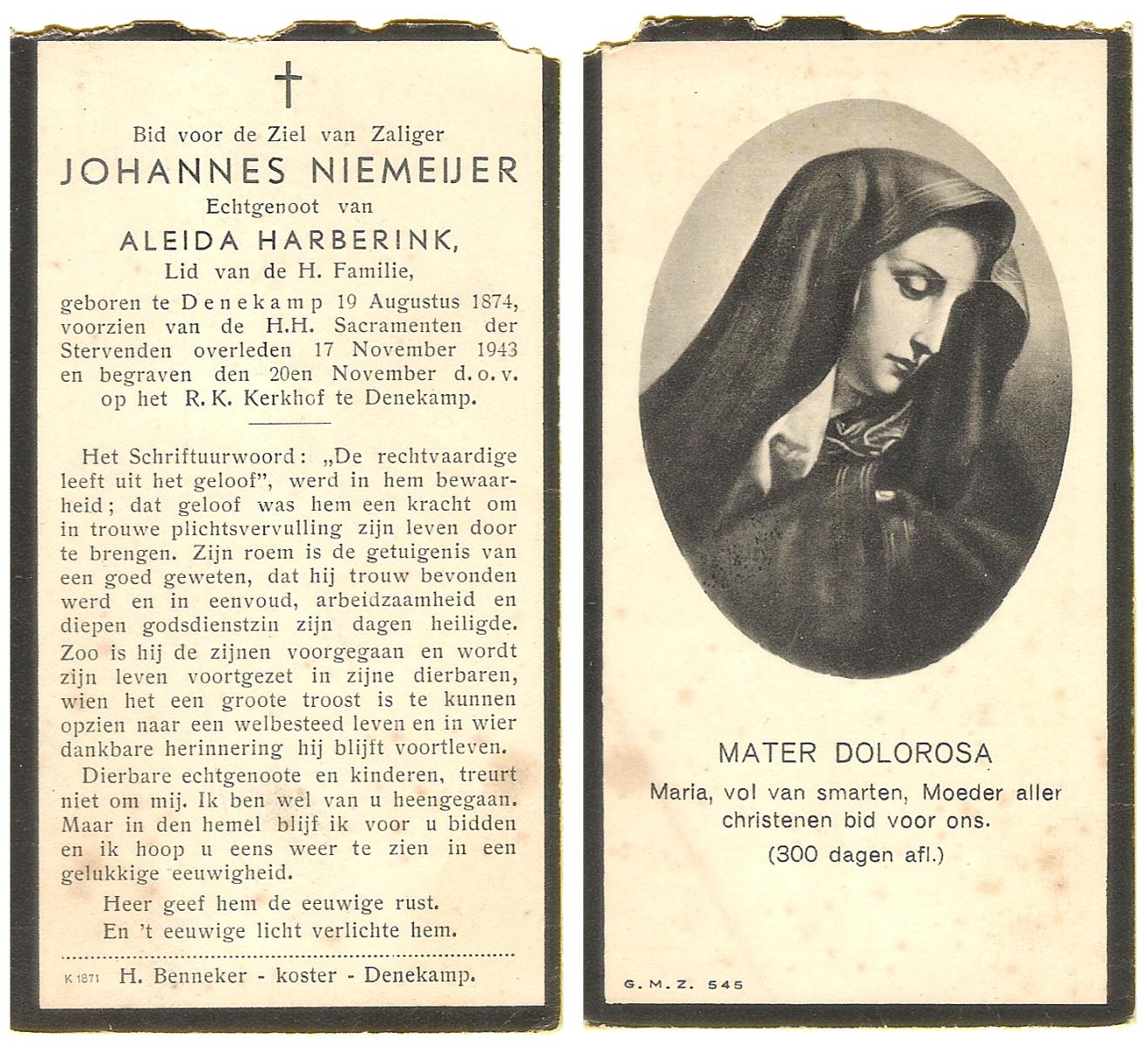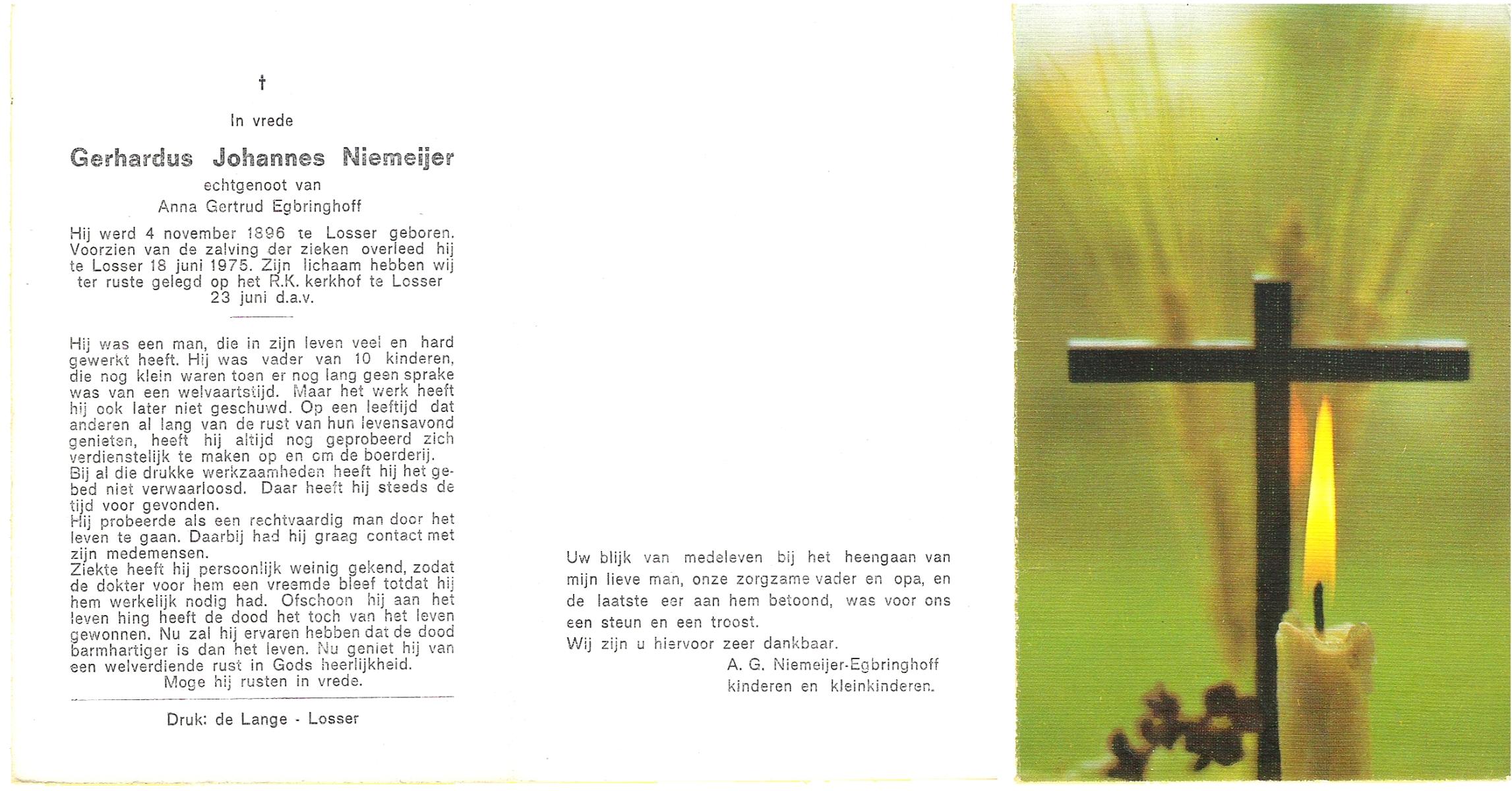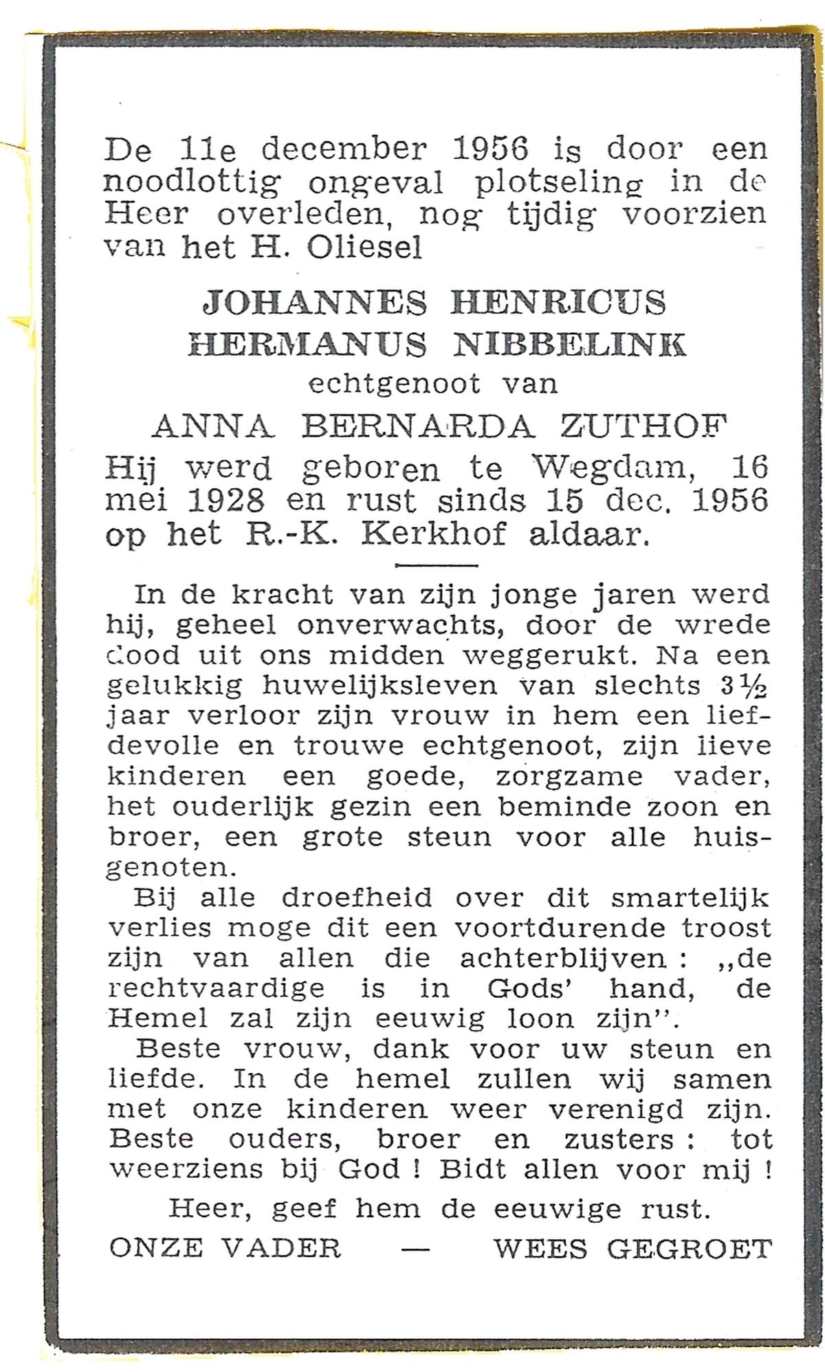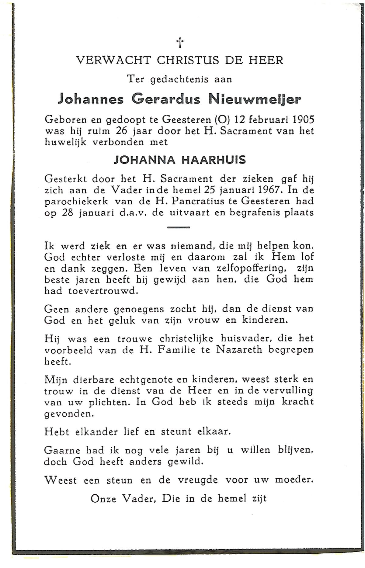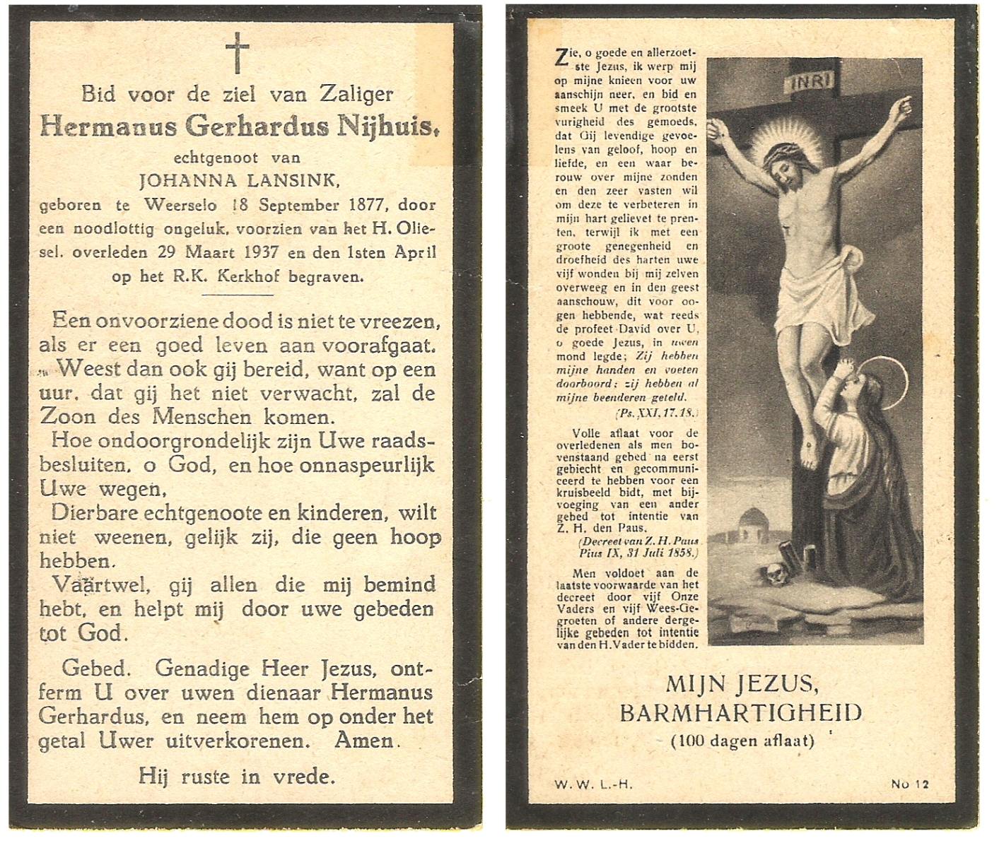 NIJHUIS, Johannes, geboren op 23-09-1887 te De Lutte, overleden op 3-11-1958 te De Lutte op 71-jarige leeftijd, begraven op 6-11-1958 te De Lutte.