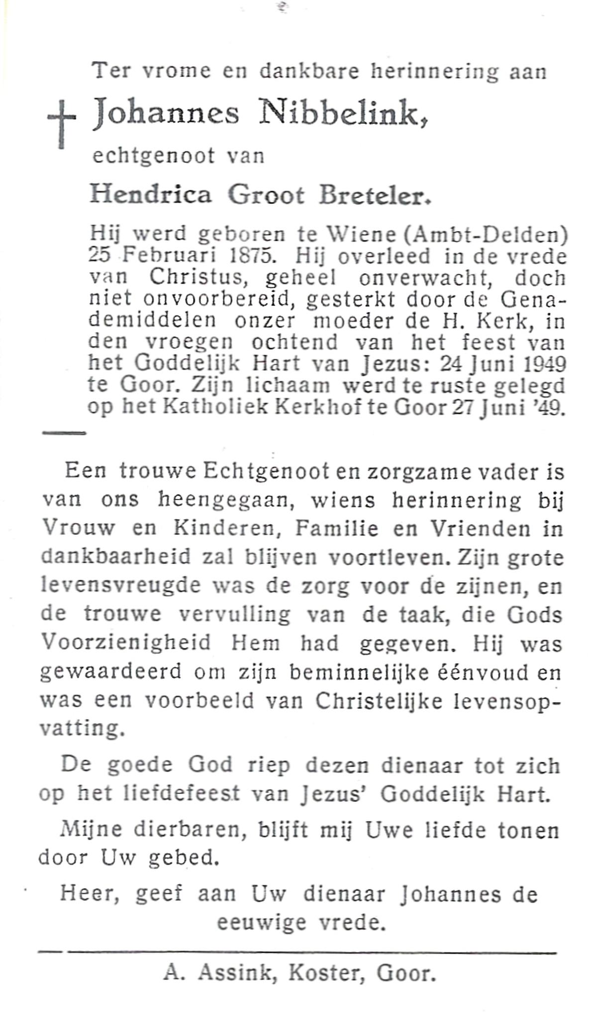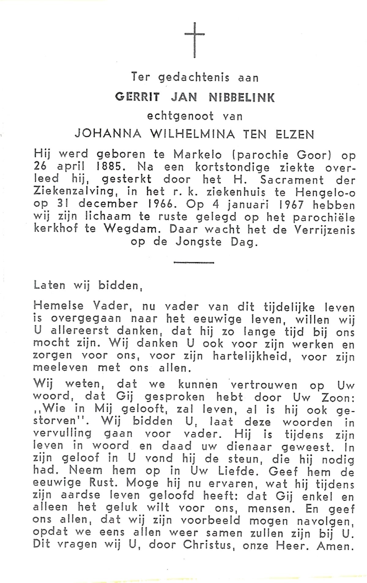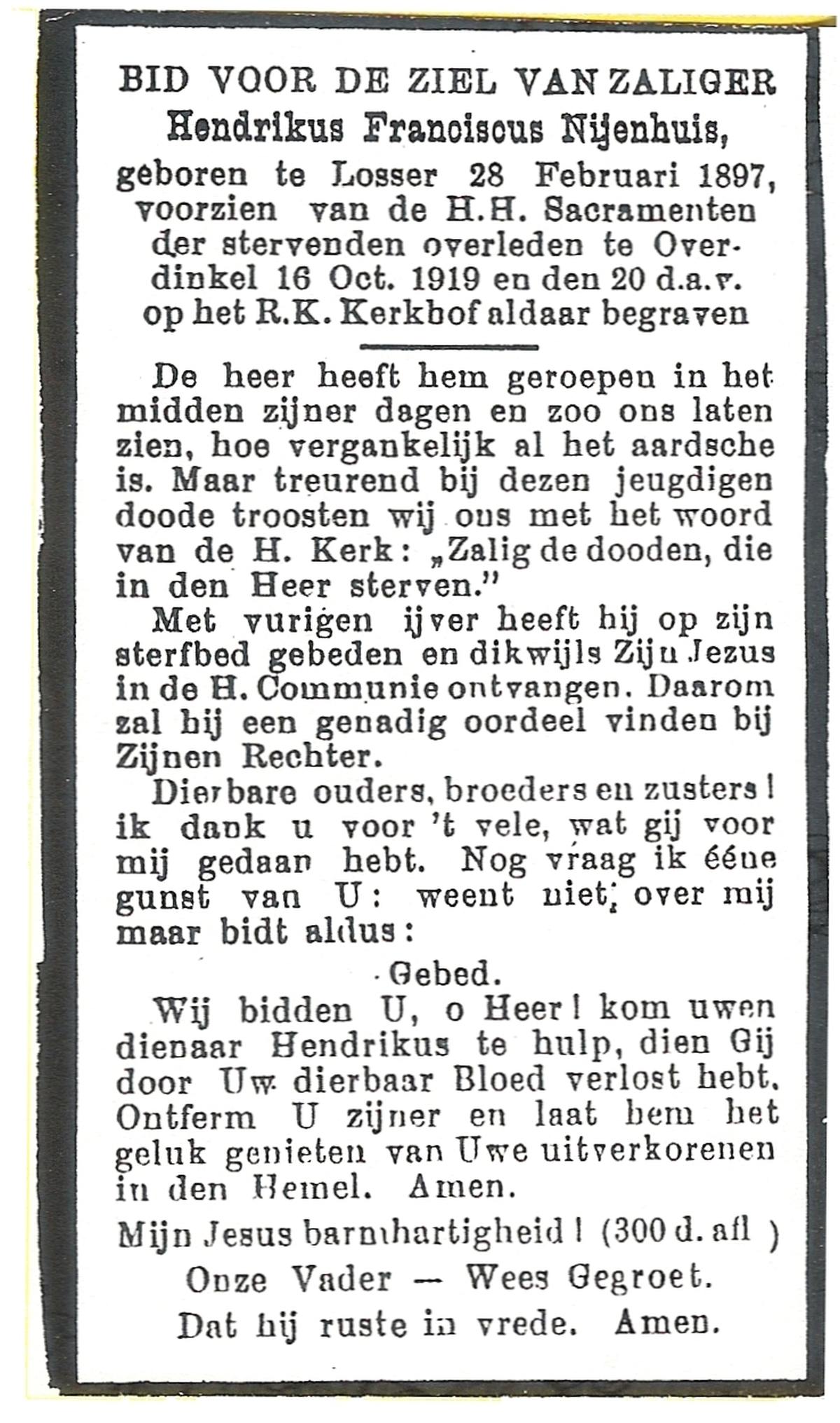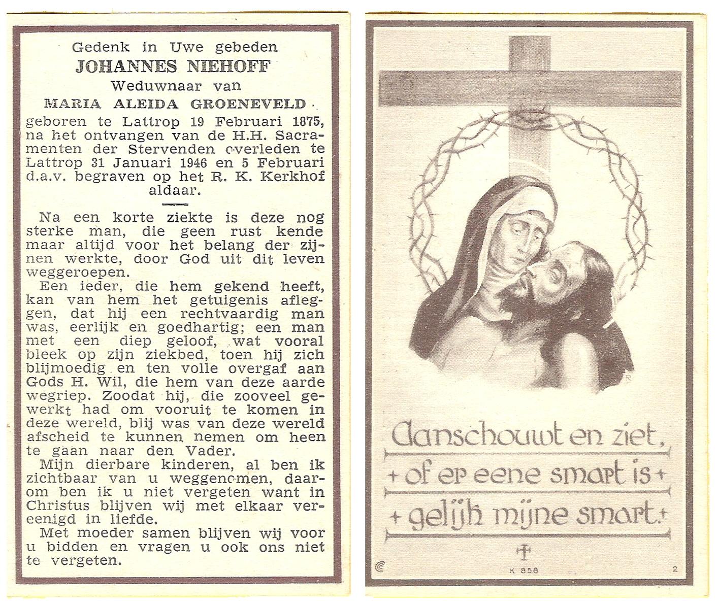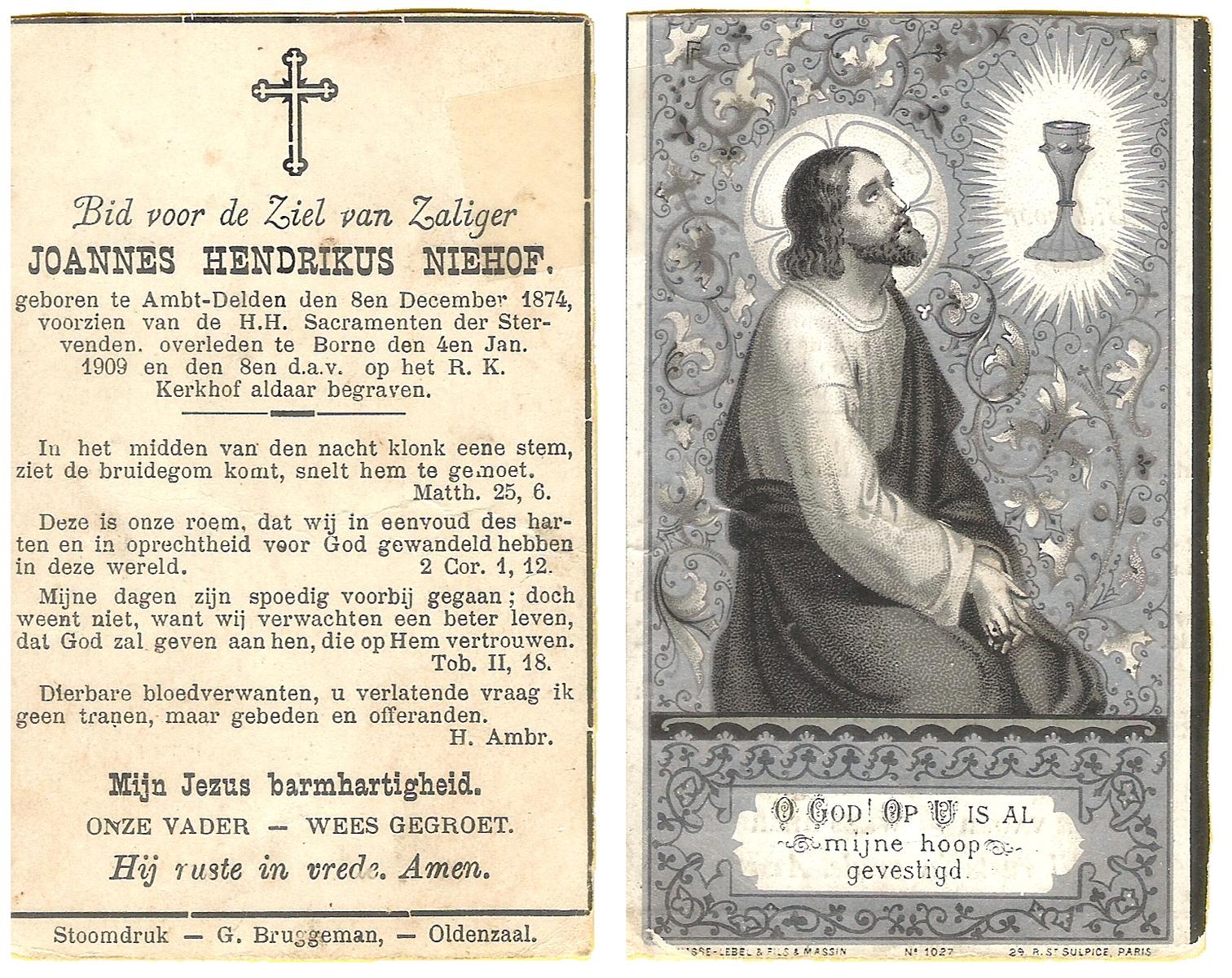 NIJHUIS, Johannes, geboren op 23-09-1887 te De Lutte, overleden op 3-11-1958 te De Lutte op 71-jarige leeftijd, begraven op 6-11-1958 te De Lutte.