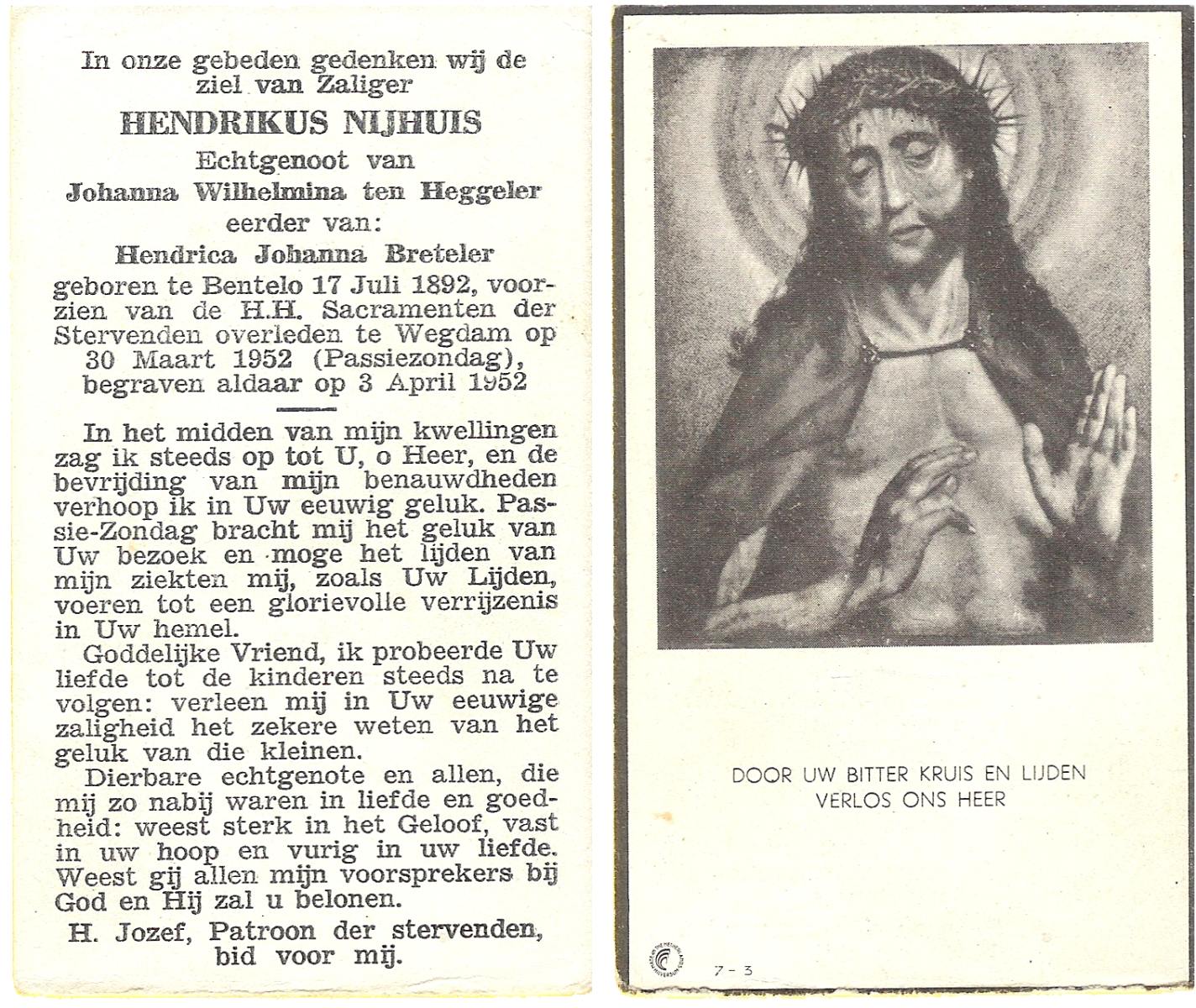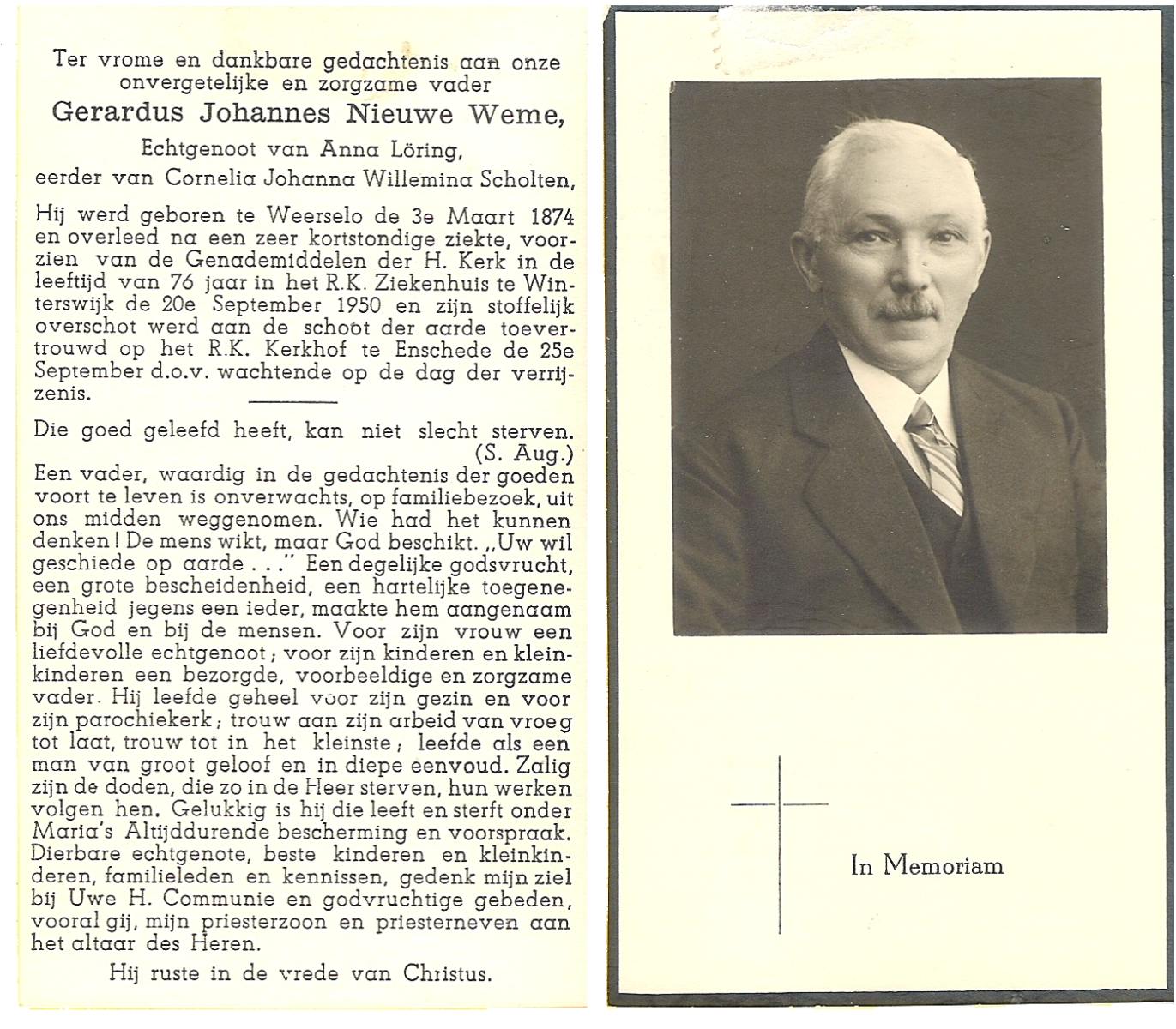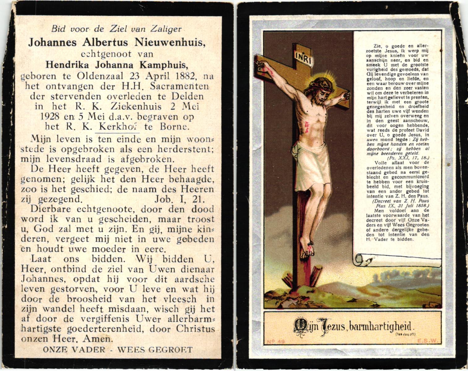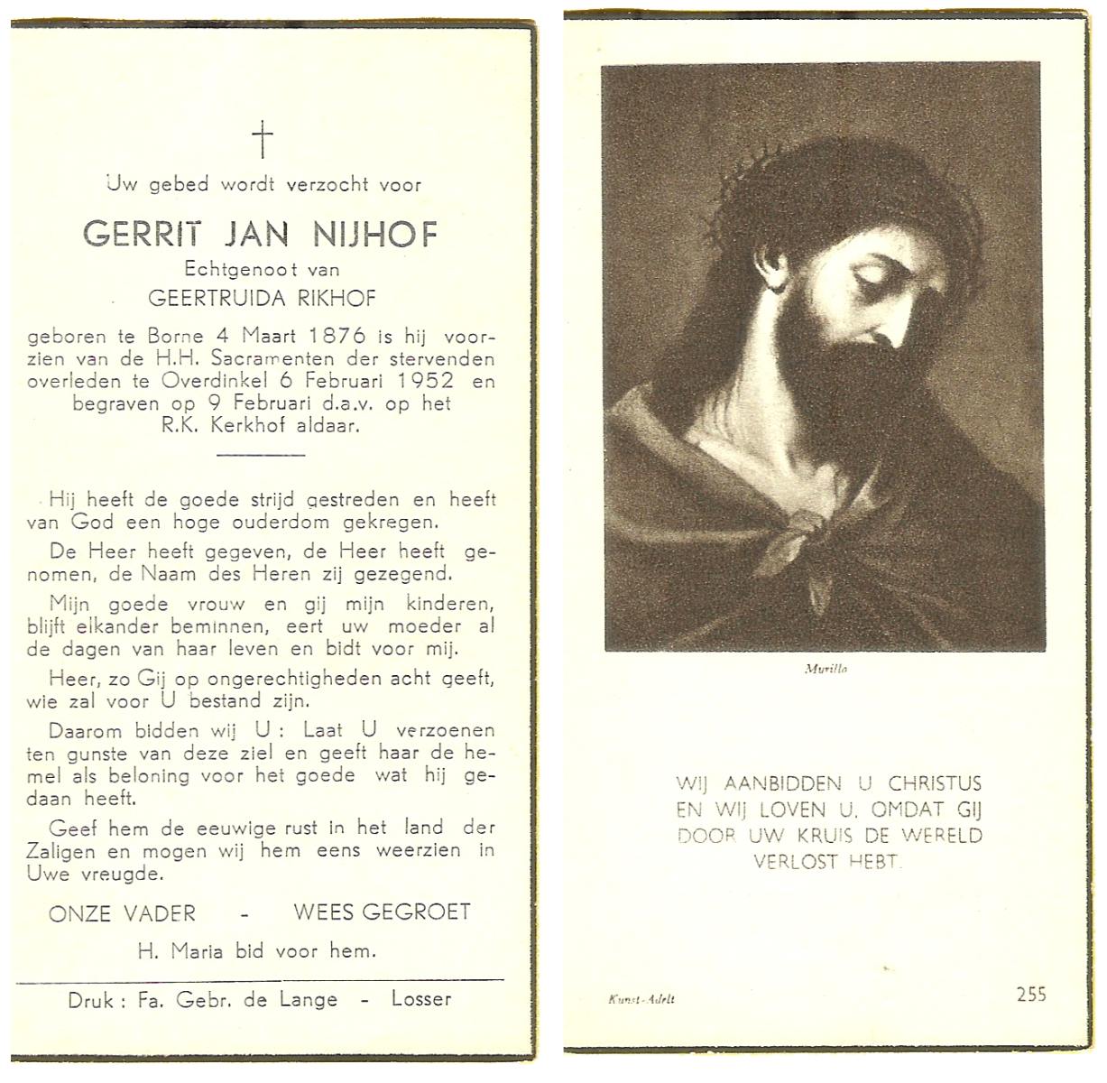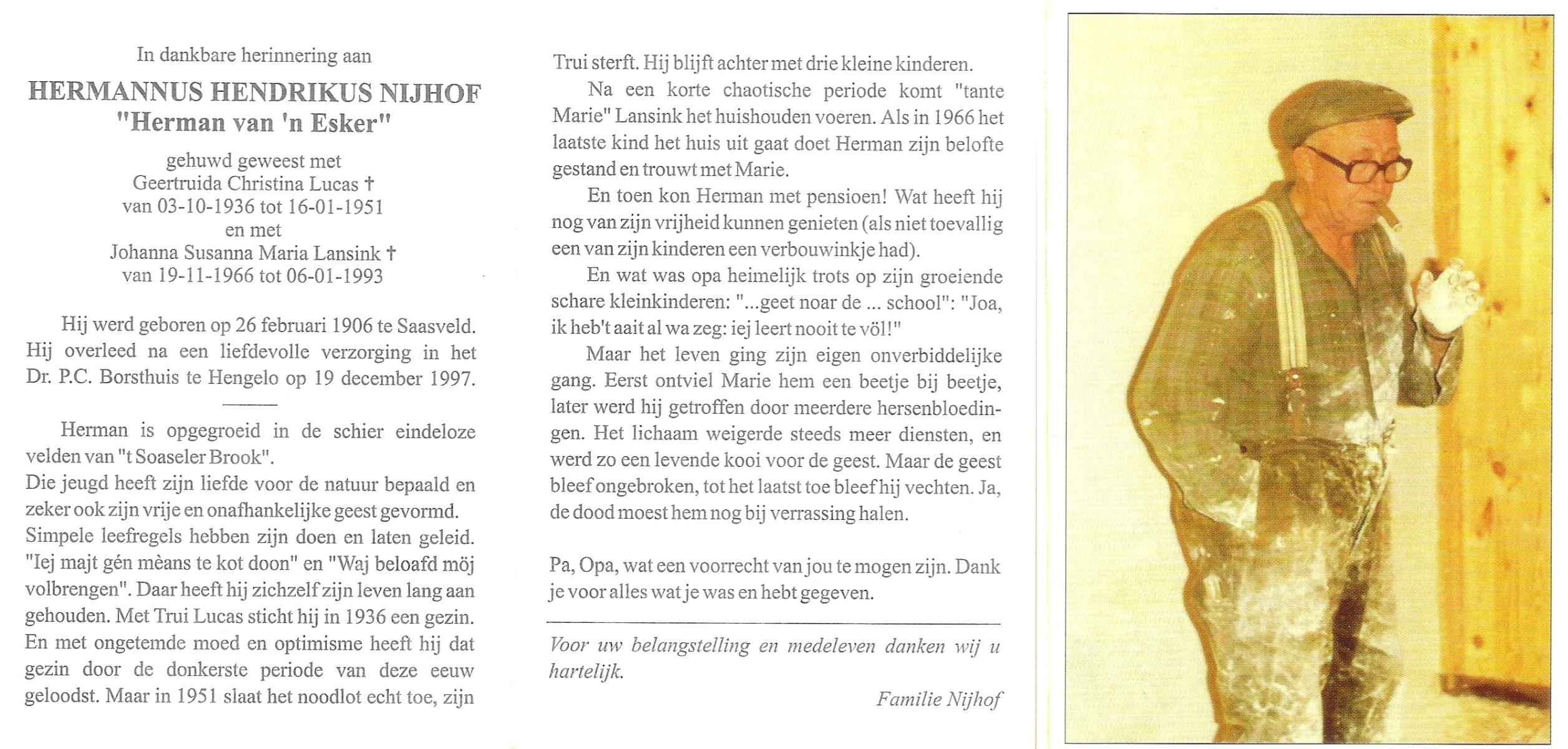 NIJHUIS, Johannes, geboren op 23-09-1887 te De Lutte, overleden op 3-11-1958 te De Lutte op 71-jarige leeftijd, begraven op 6-11-1958 te De Lutte.