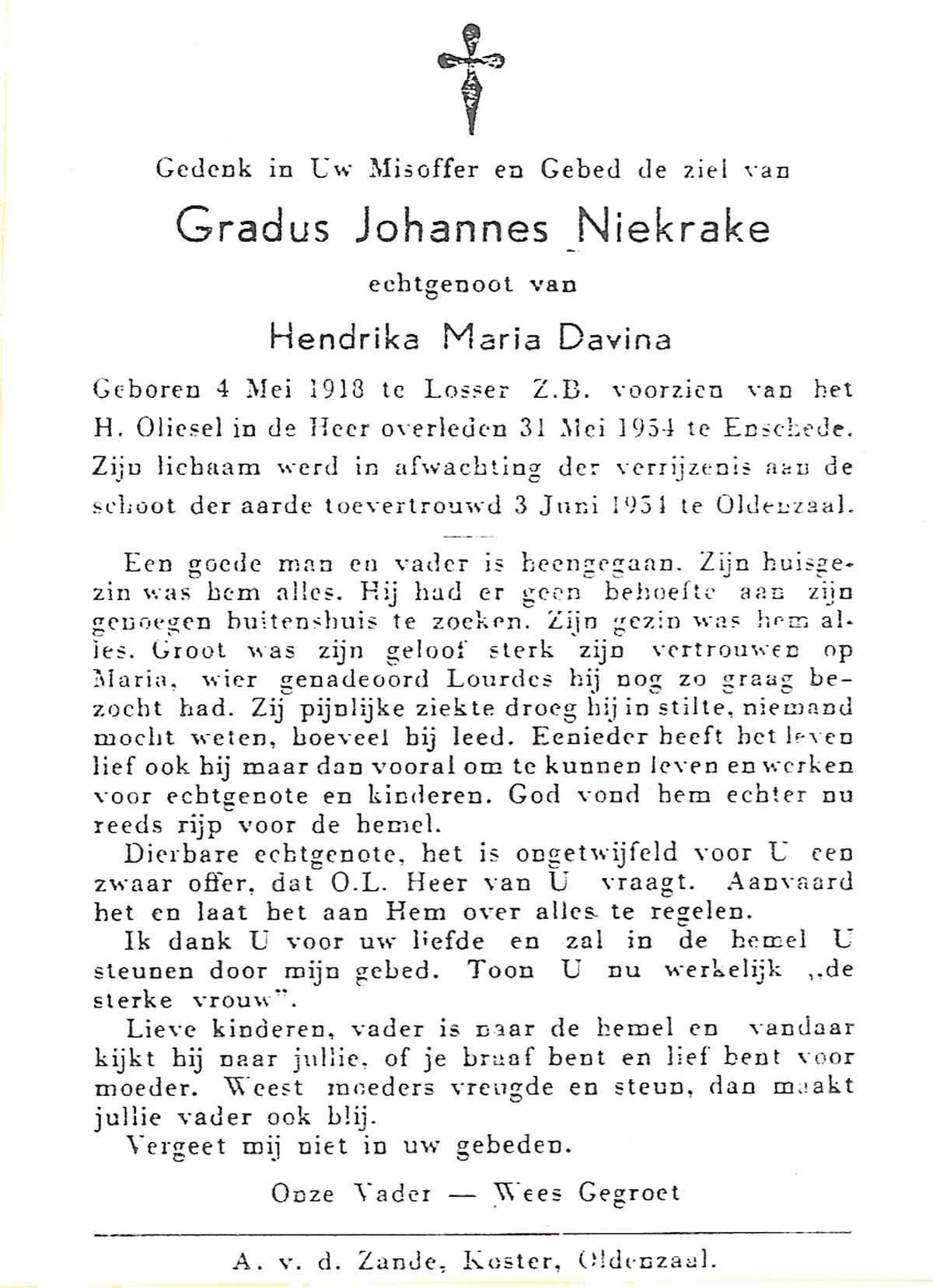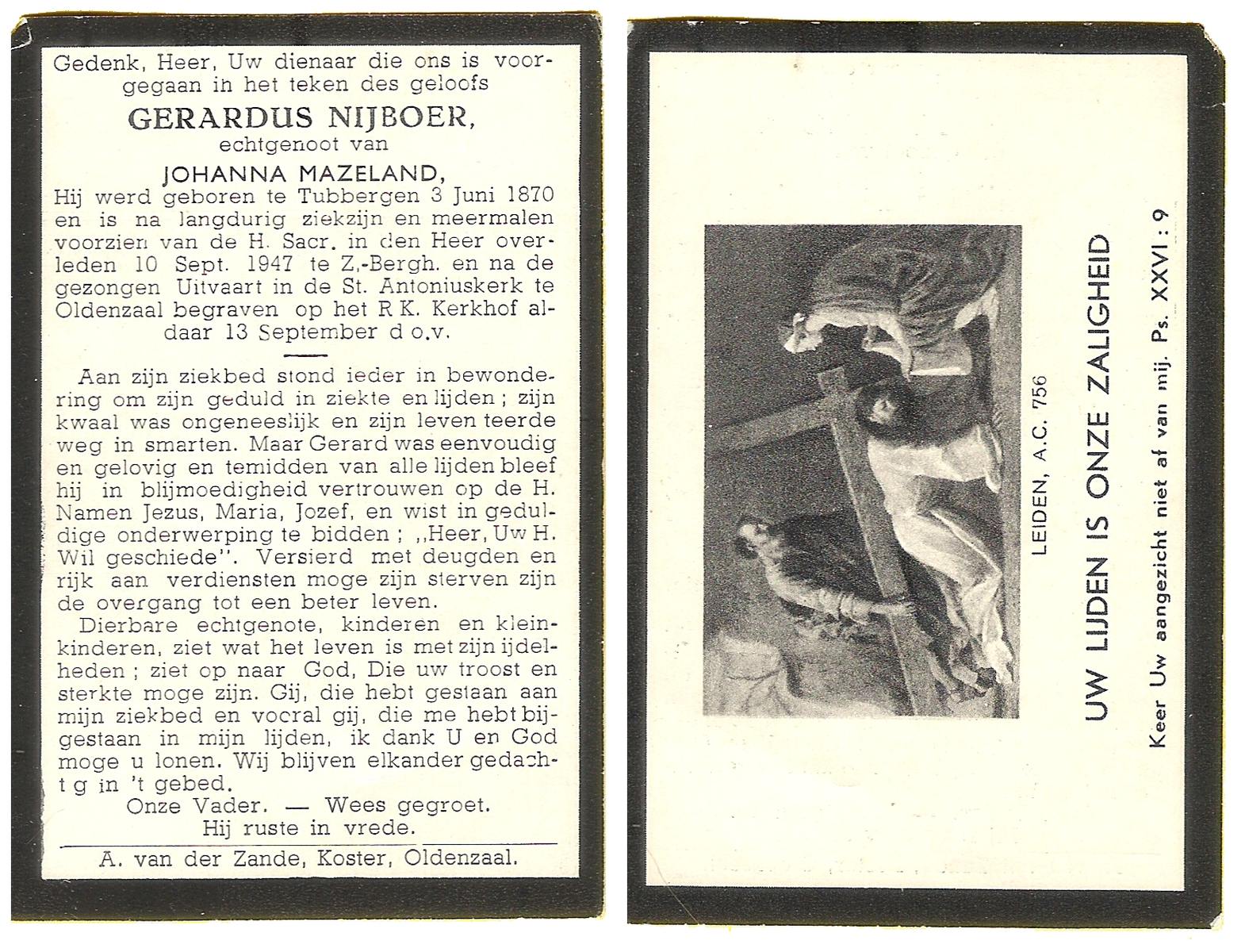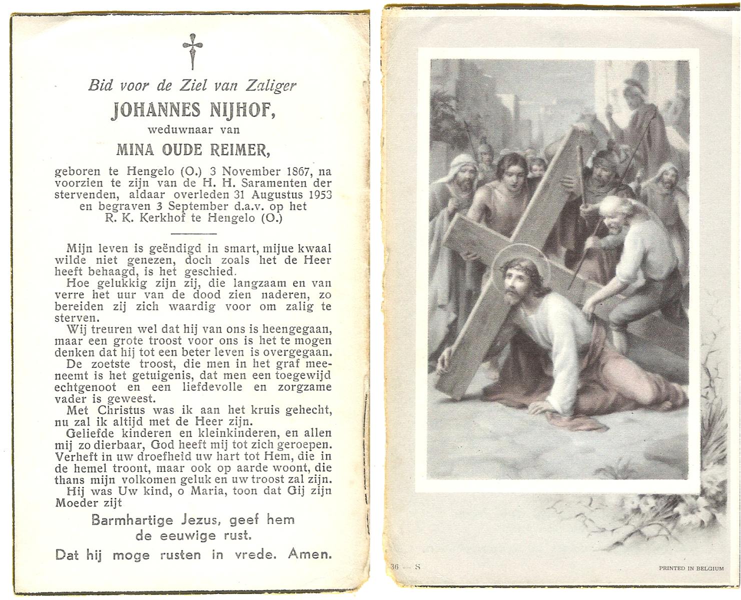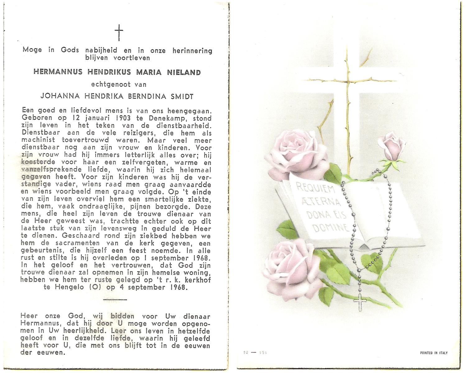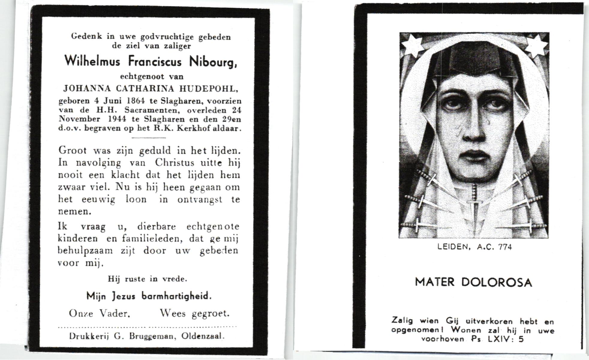 NIJHUIS, Johannes, geboren op 23-09-1887 te De Lutte, overleden op 3-11-1958 te De Lutte op 71-jarige leeftijd, begraven op 6-11-1958 te De Lutte.