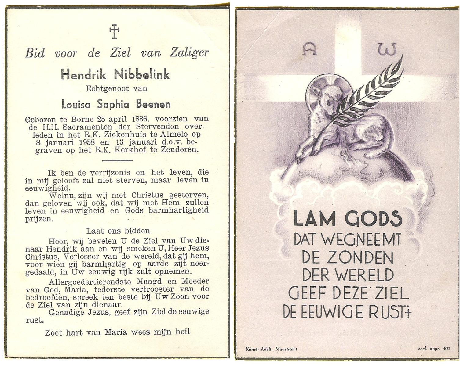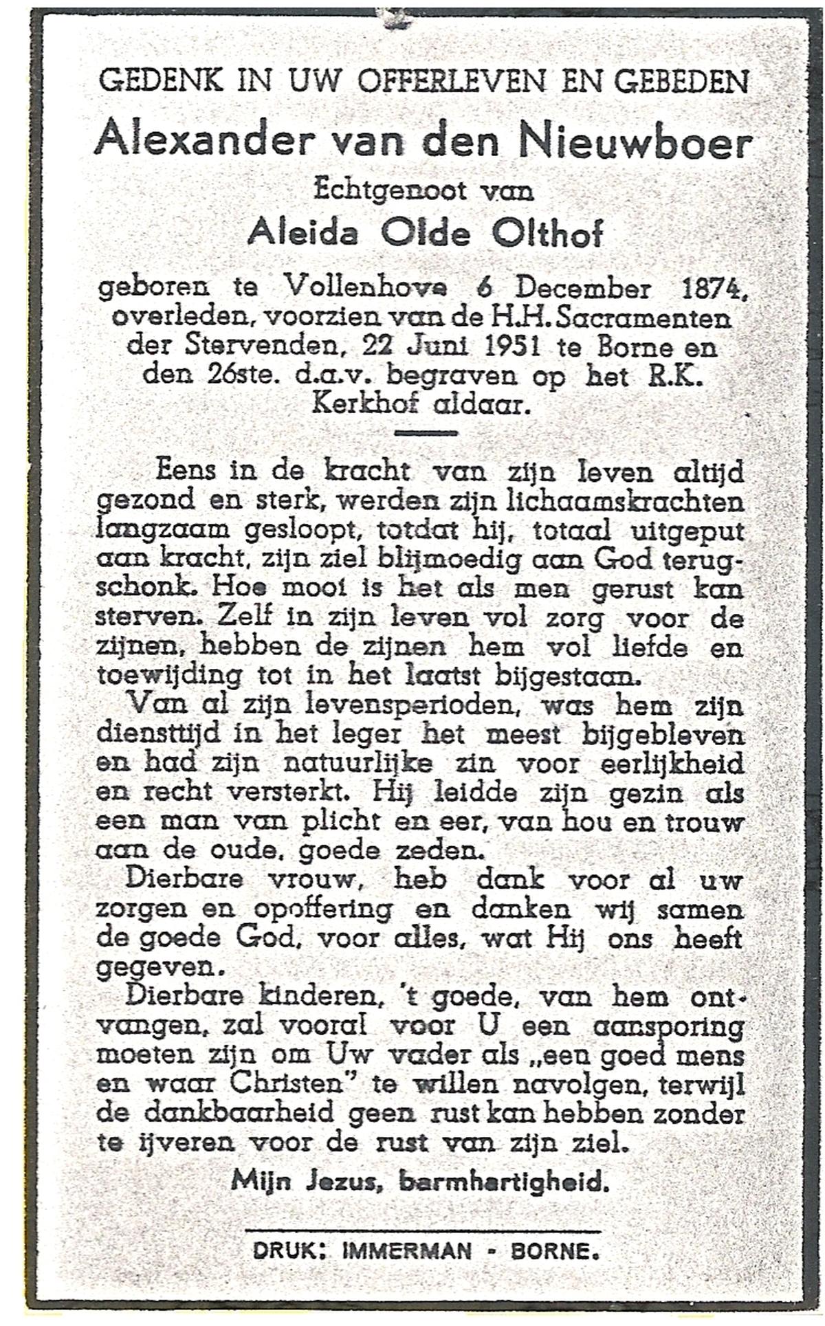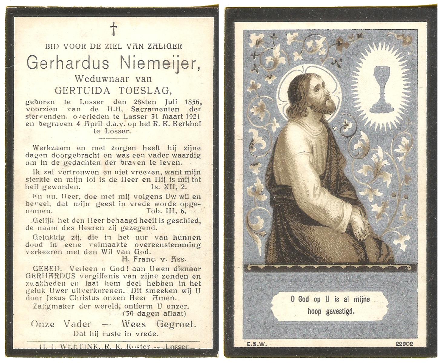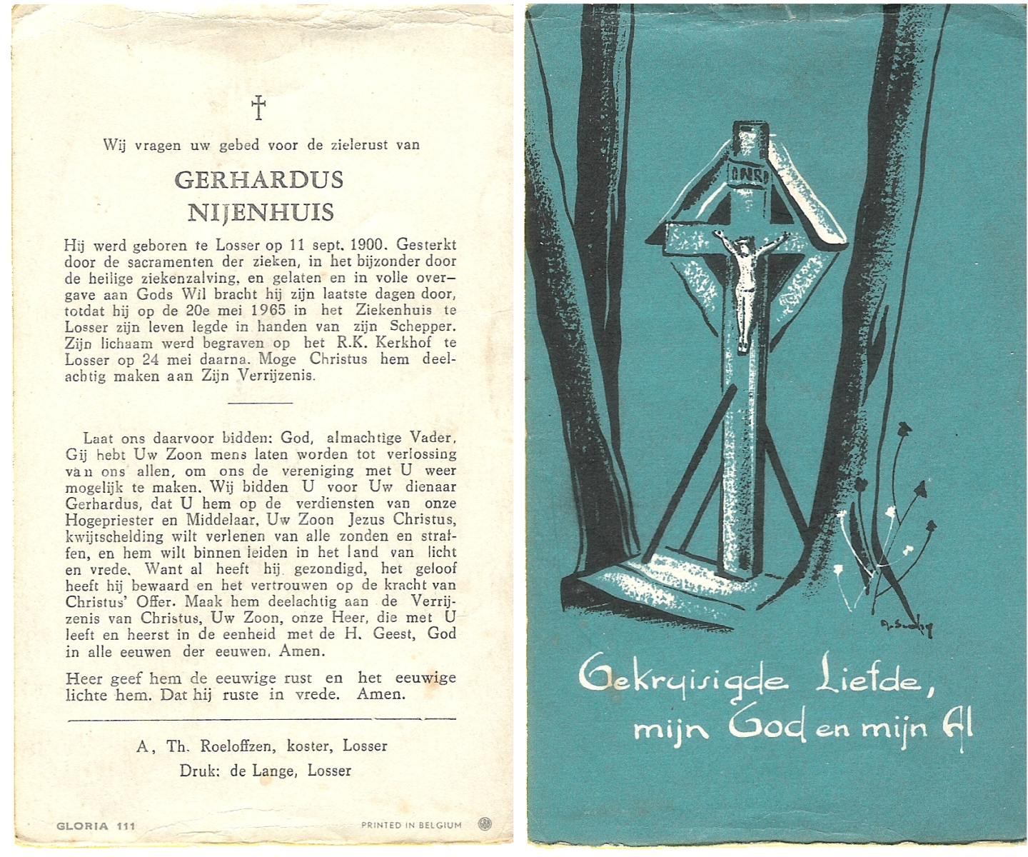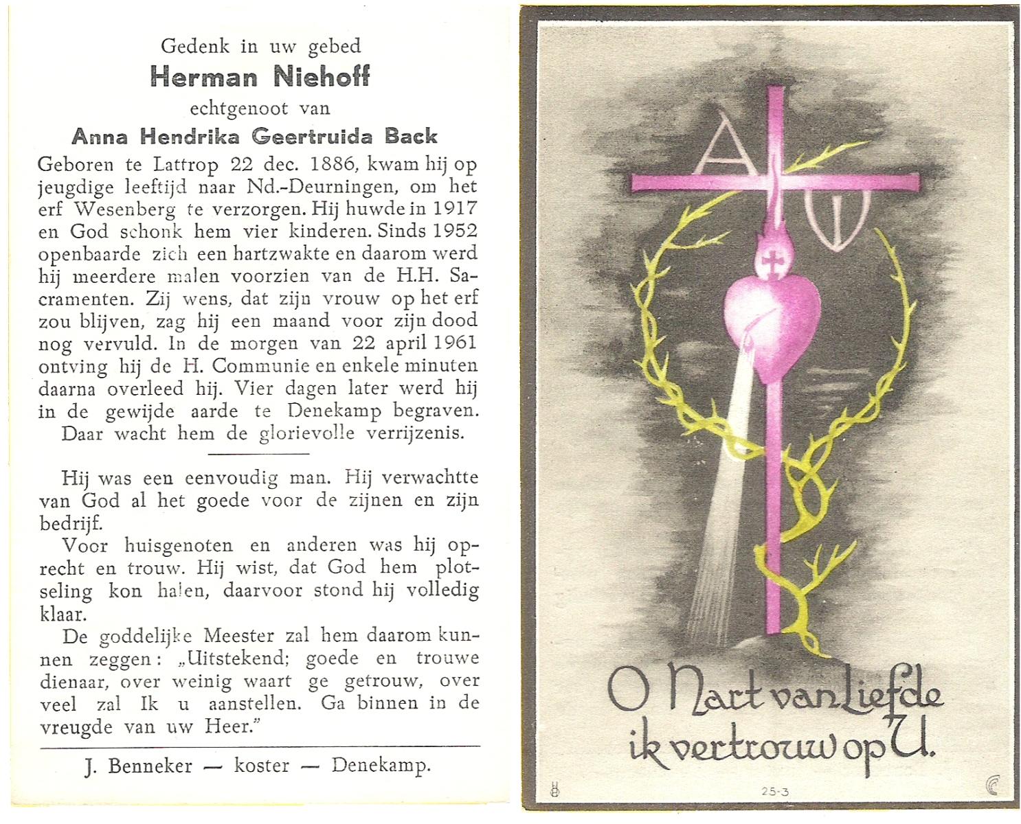 NIJHUIS, Johannes, geboren op 23-09-1887 te De Lutte, overleden op 3-11-1958 te De Lutte op 71-jarige leeftijd, begraven op 6-11-1958 te De Lutte.