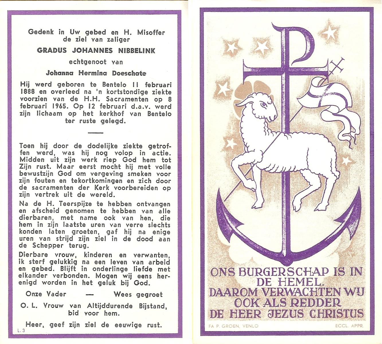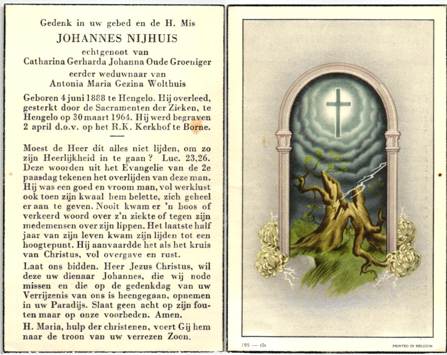 NIJHUIS, , Johannes, geboren op 04-06-1888 te Hengelo (O), overleden op 30-3-1964 te Hengelo (O) op 75-jarige leeftijd, begraven op 2-4-1964 te Borne.