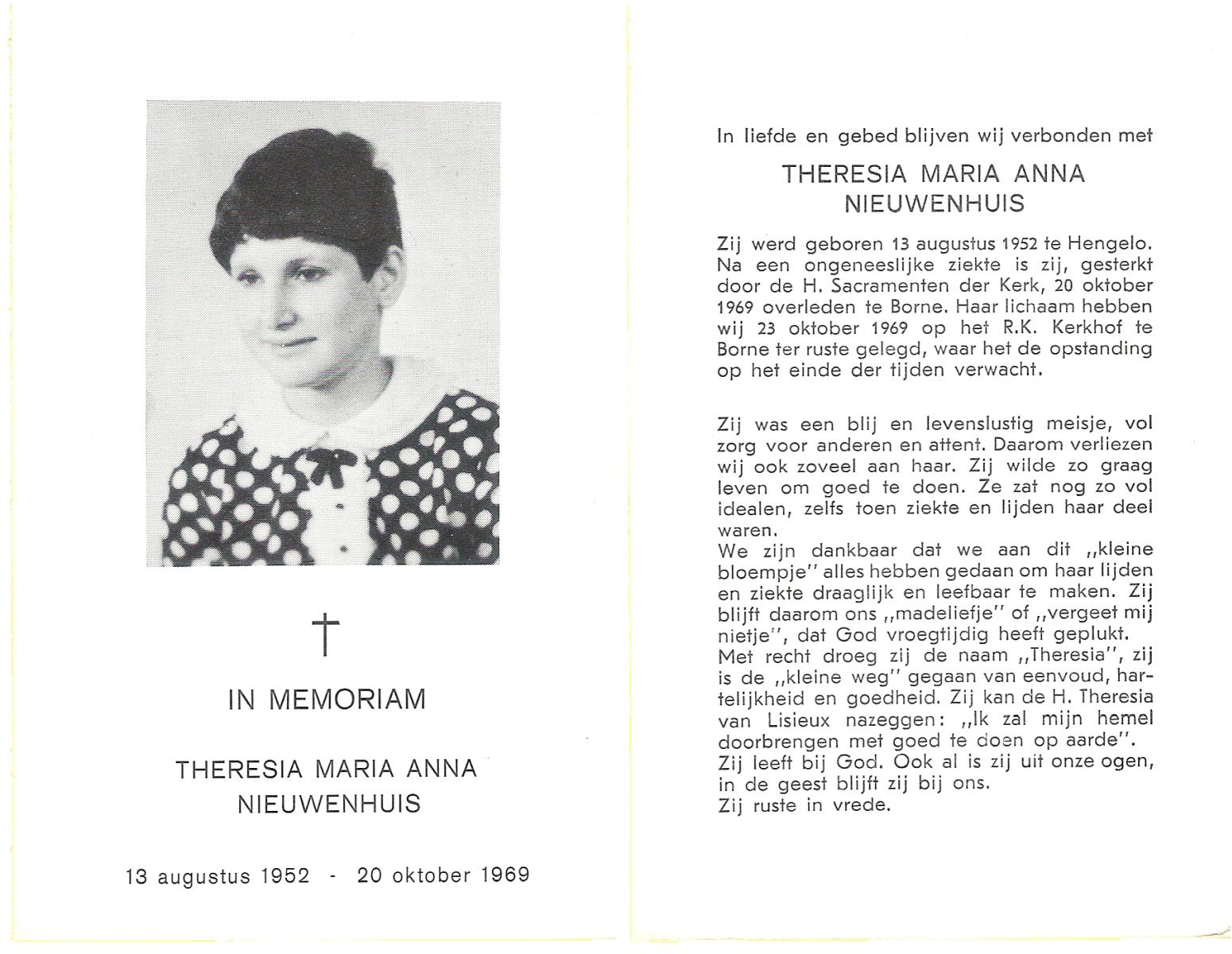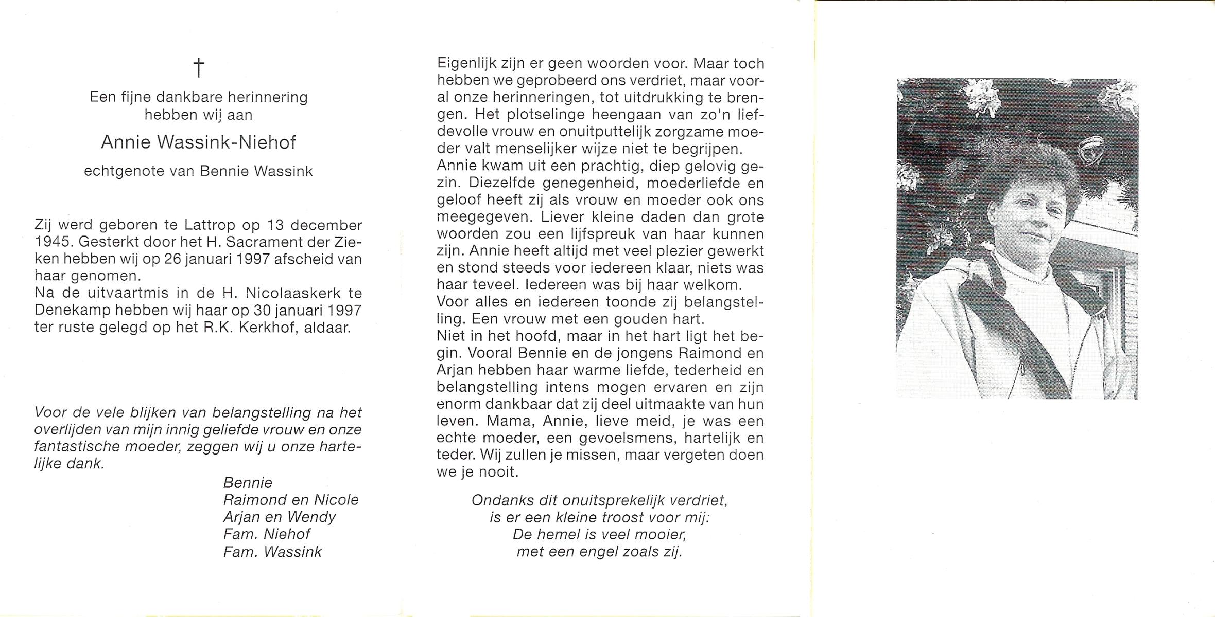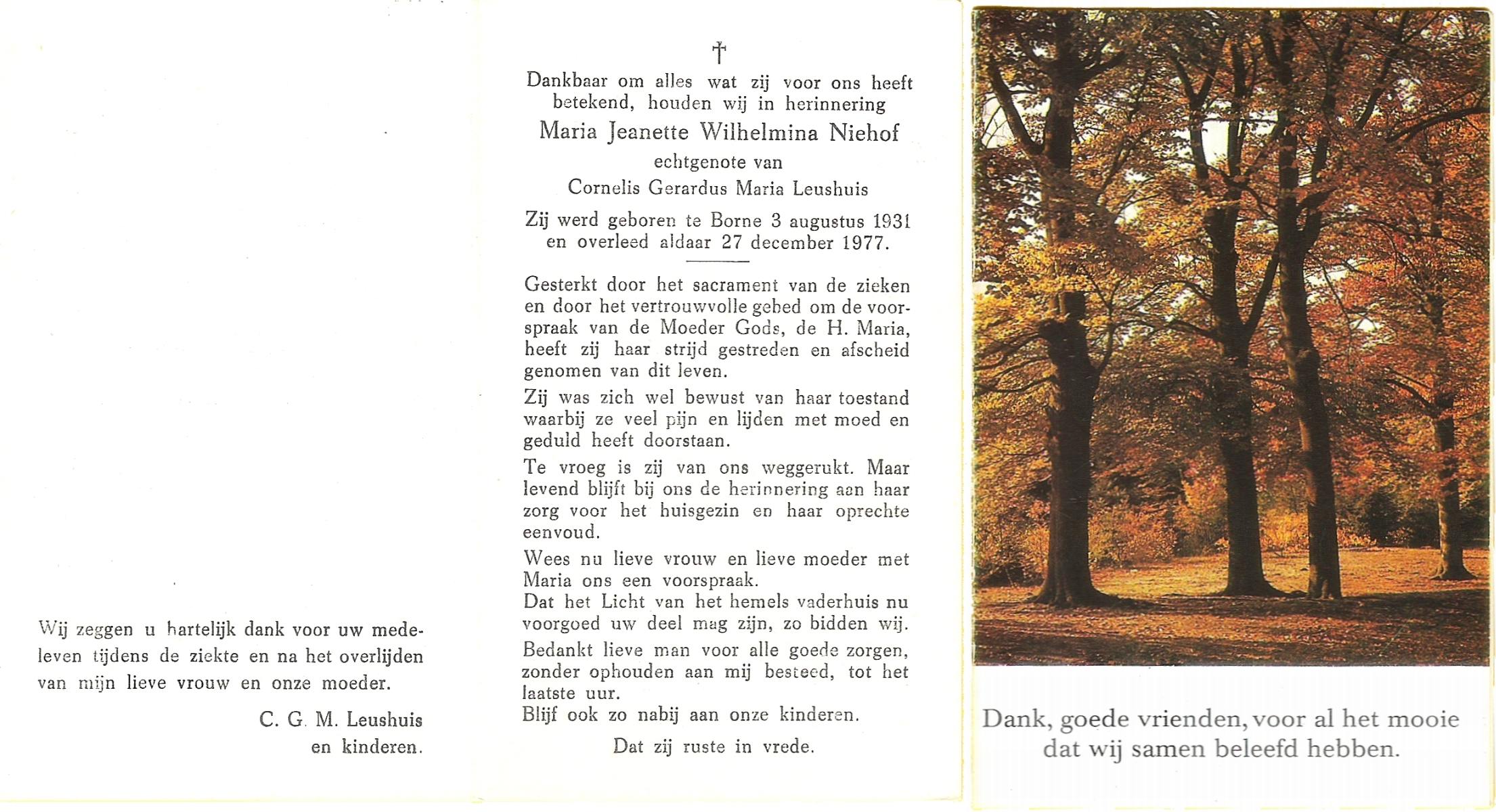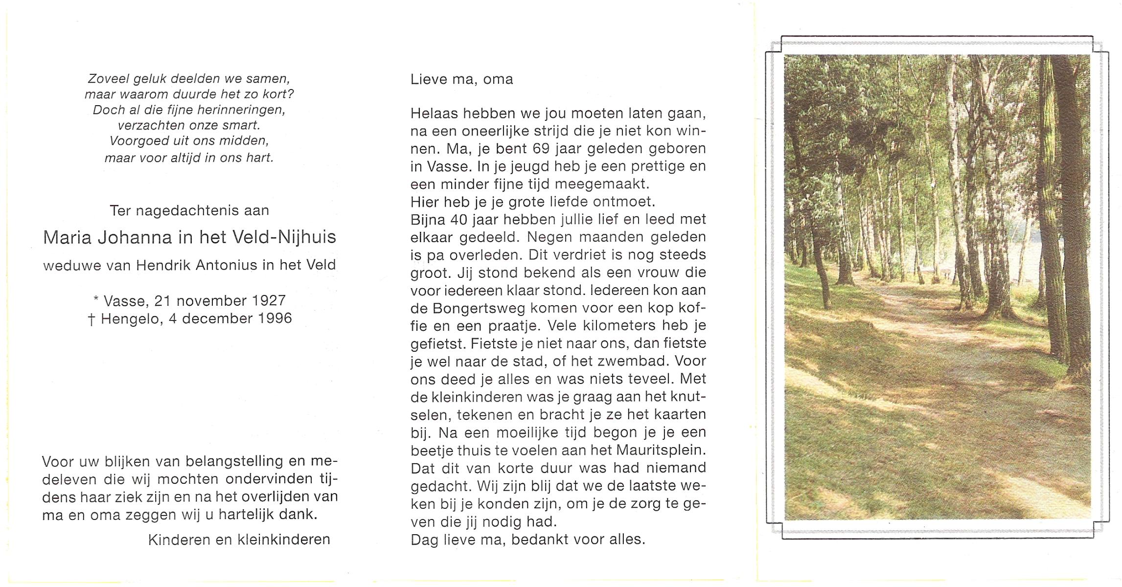 NIJHUIS, Maria Johanna, geboren op 21-11-1927 te Vasse, overleden op 4-12-1996 te Hengelo (Ov.) op 69-jarige leeftijd.