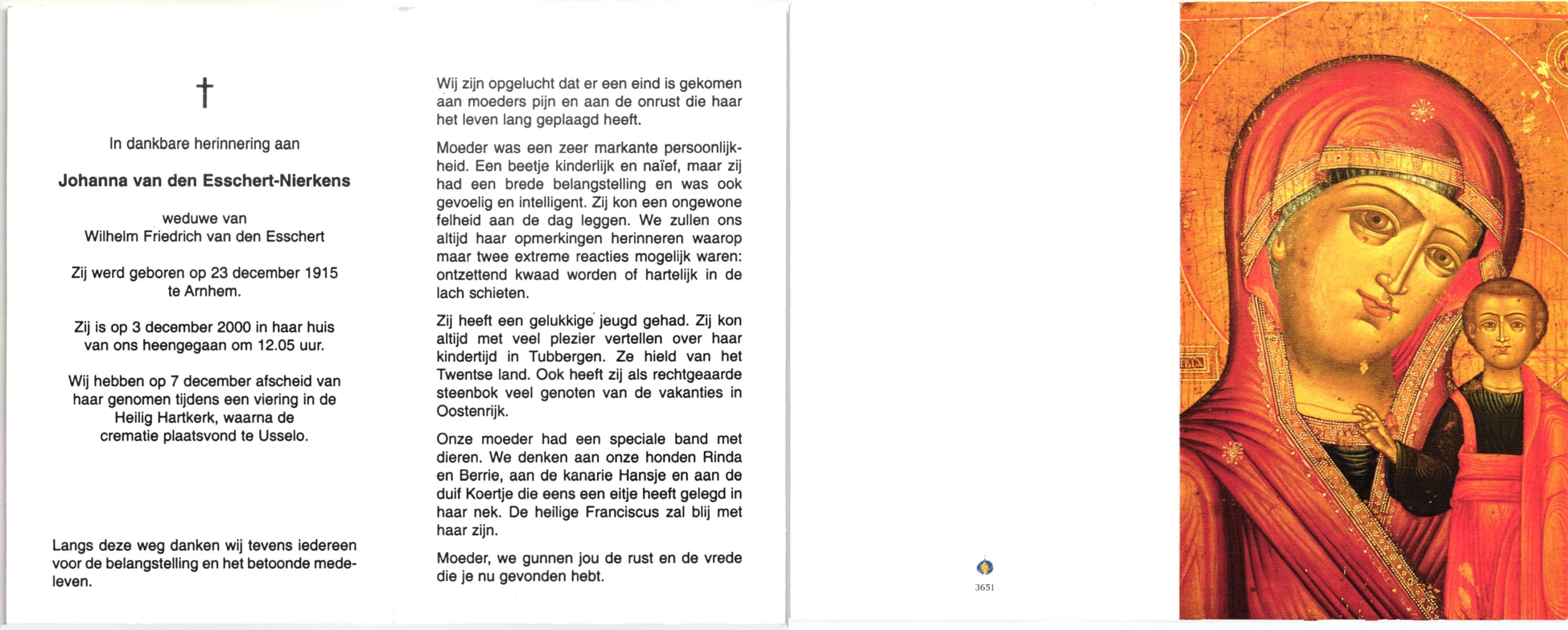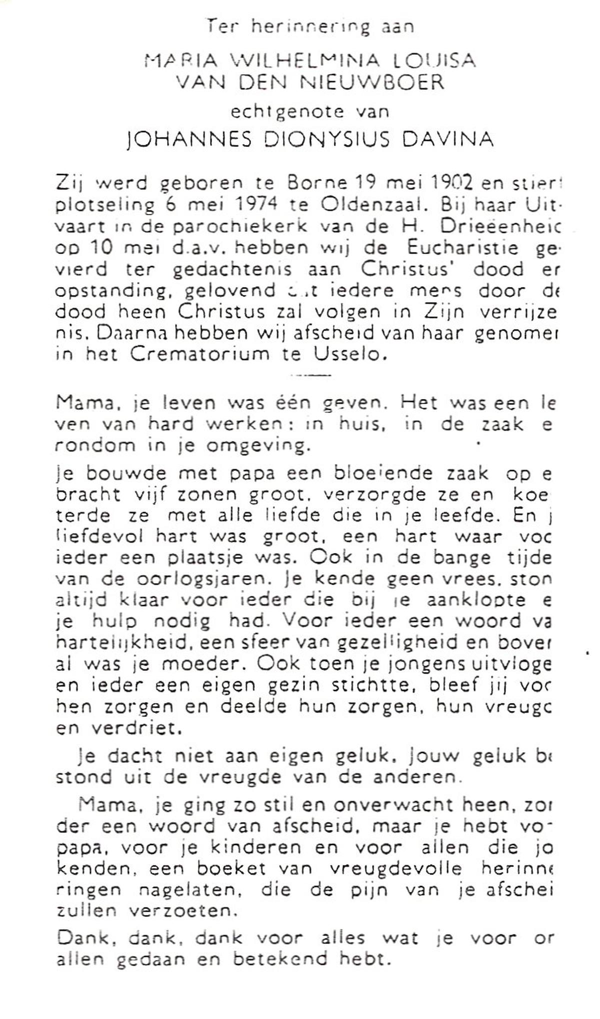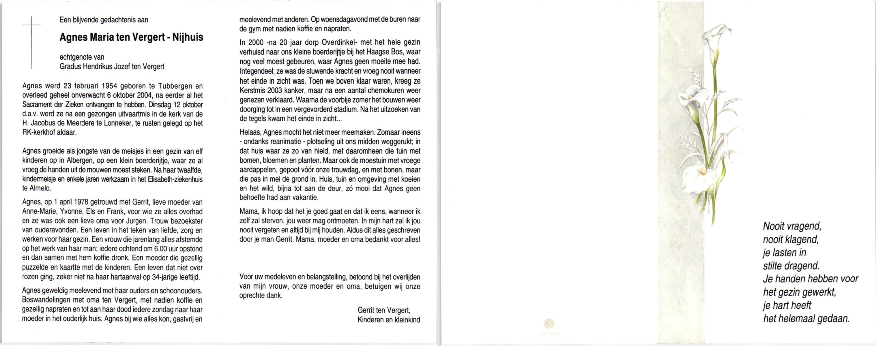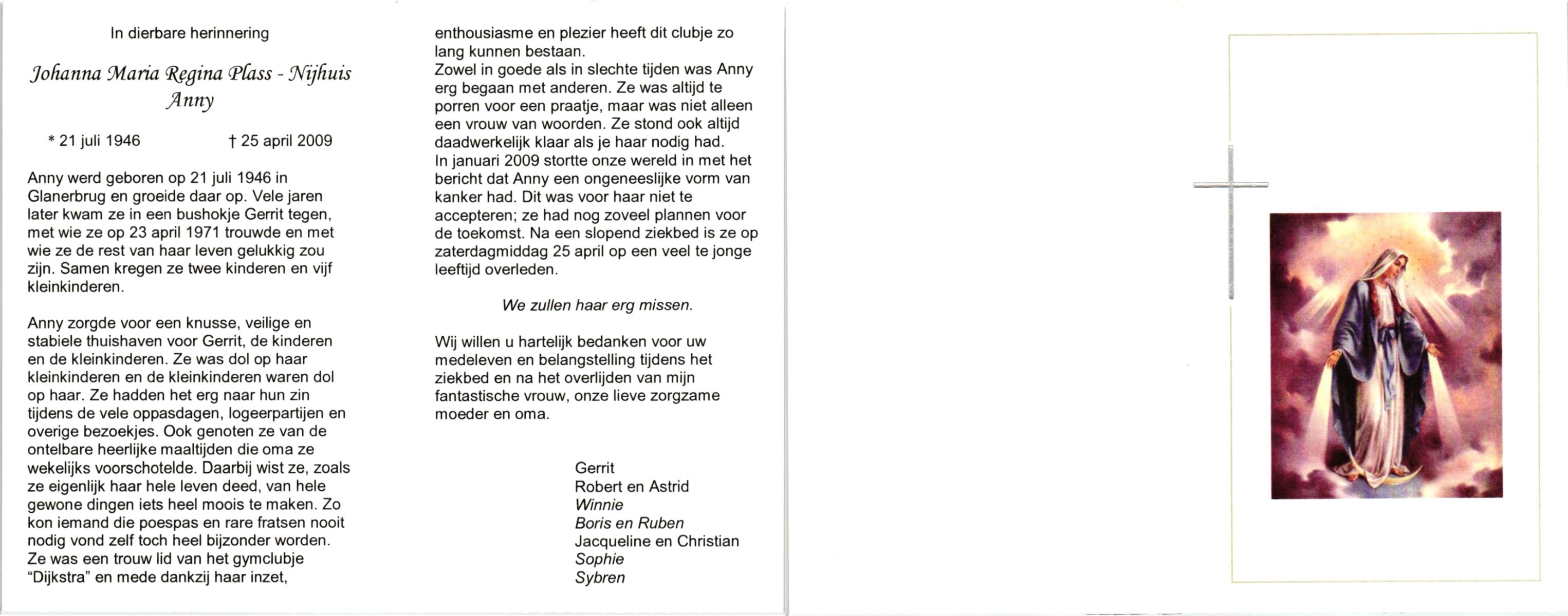 NIJHUIS, Maria Johanna, geboren op 21-11-1927 te Vasse, overleden op 4-12-1996 te Hengelo (Ov.) op 69-jarige leeftijd.