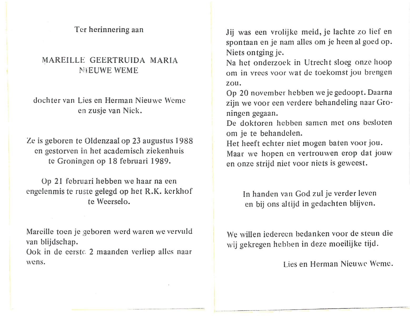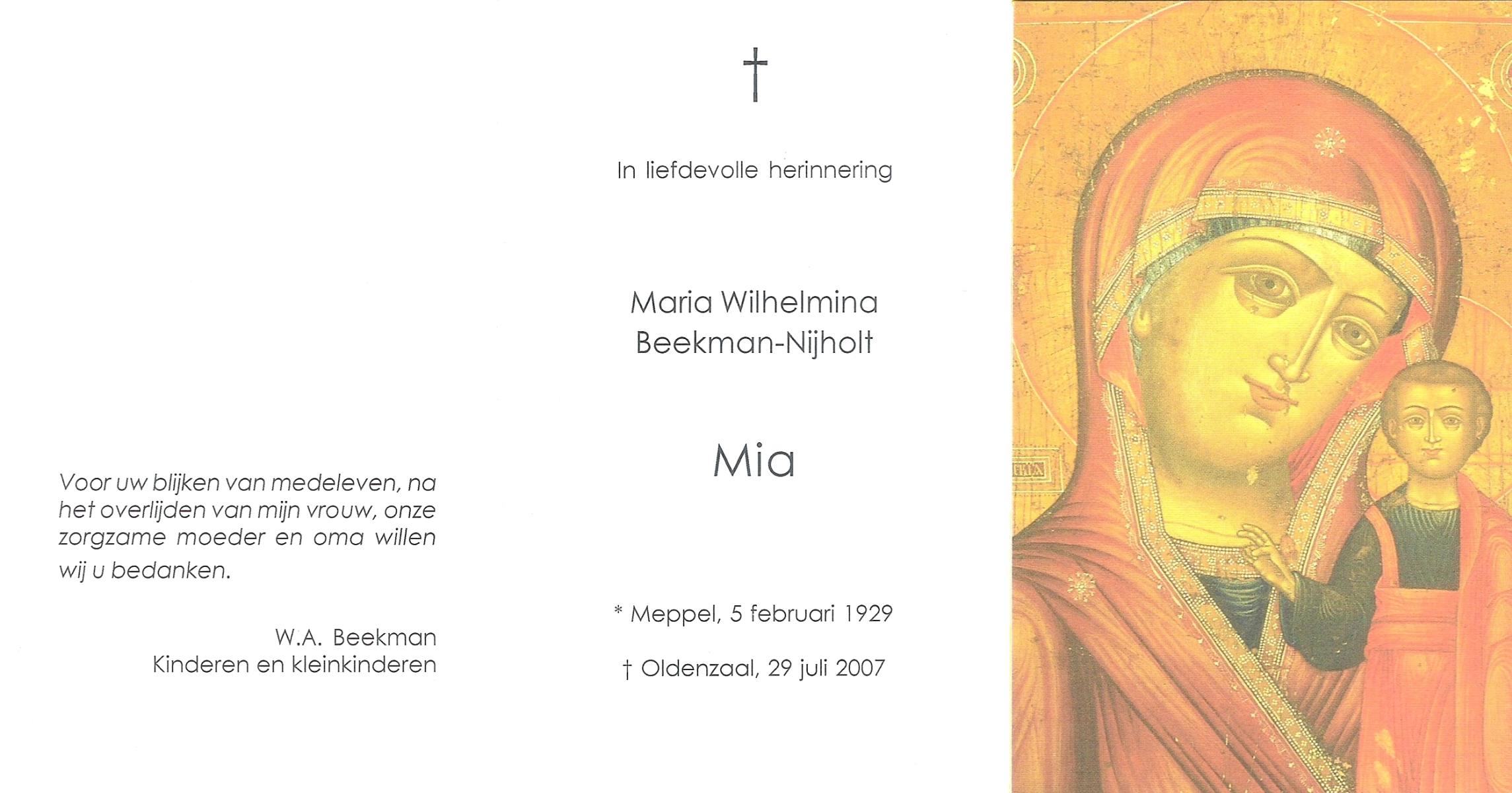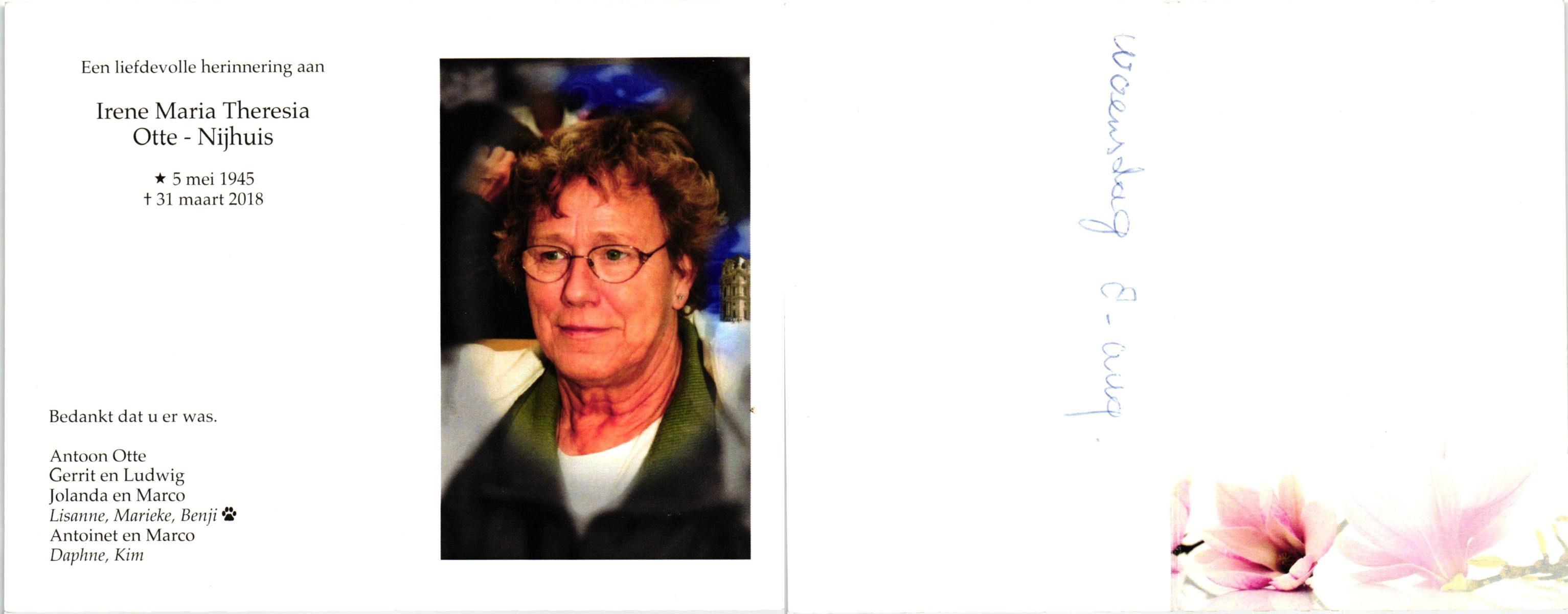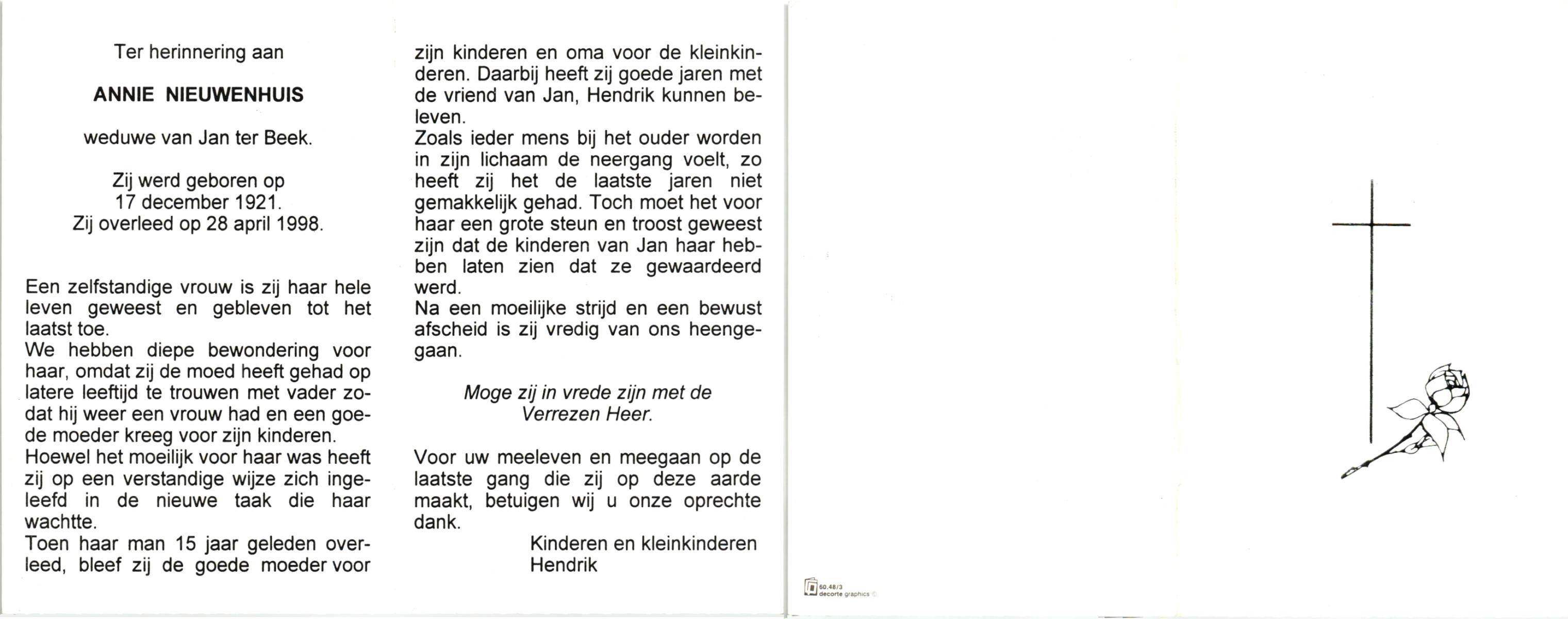NIJHUIS, Mieke, geboren op 4-5-1936, overleden op 11-7-1992 op 56-jarige leeftijd, gecremeerd op 15-7-1992 te Usselo.