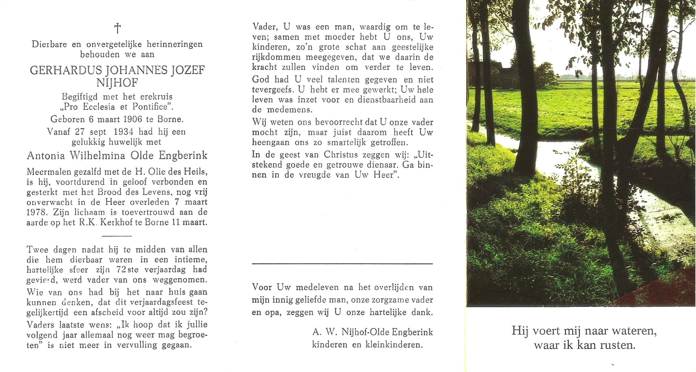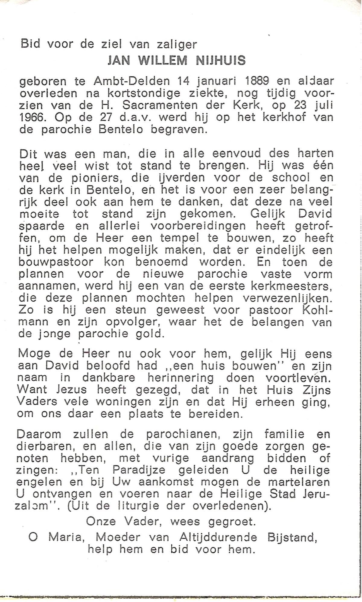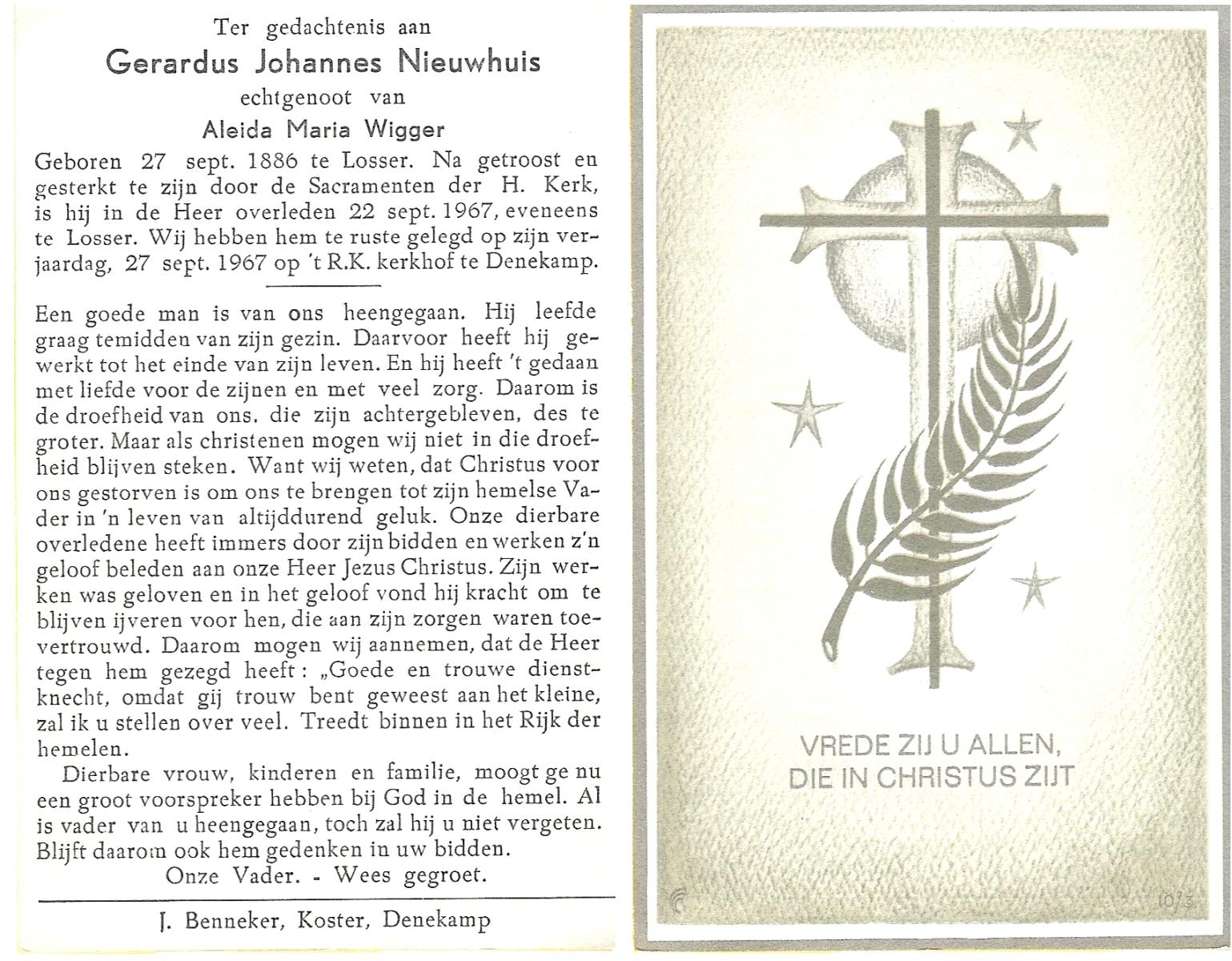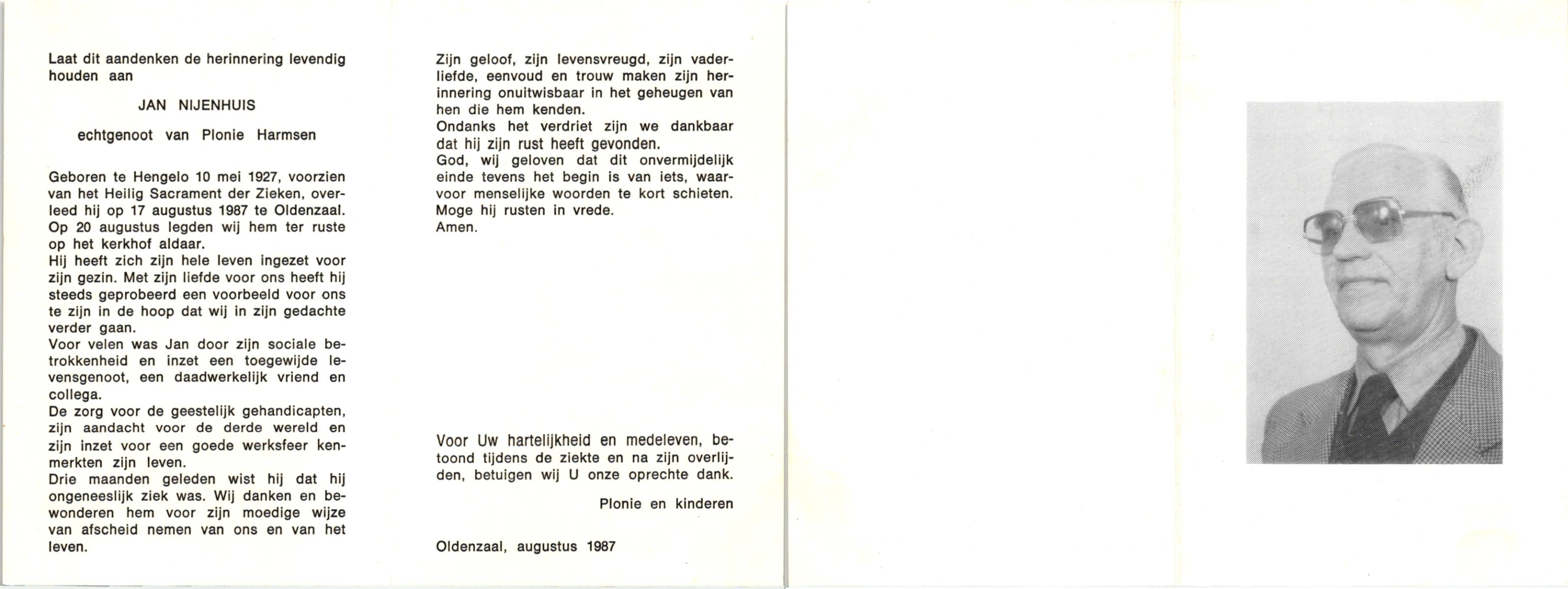 NIJHUIS, Johannes Gerhardus, geboren op 07-12-1894 te Bentelo, overleden op 2-1-1983 te Bentelo op 88-jarige leeftijd, begraven op 6-1-1983 te Bentelo.