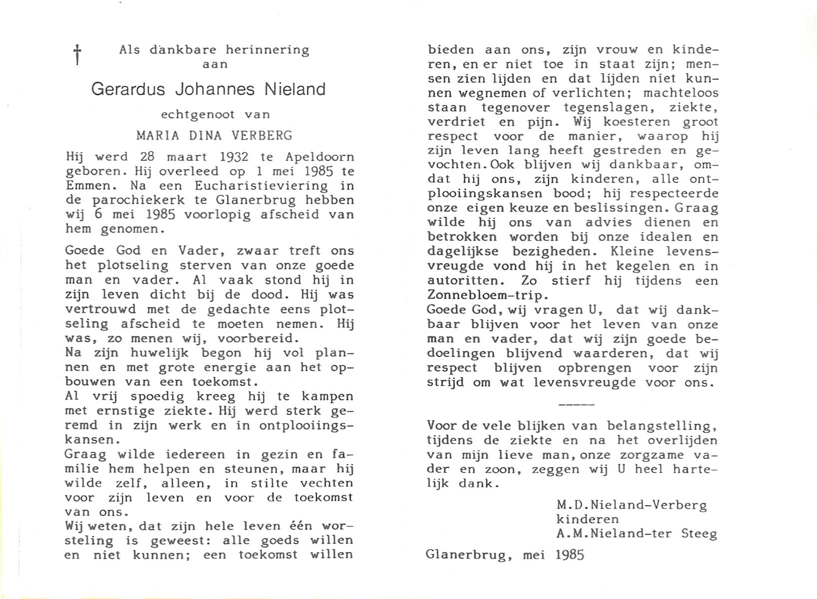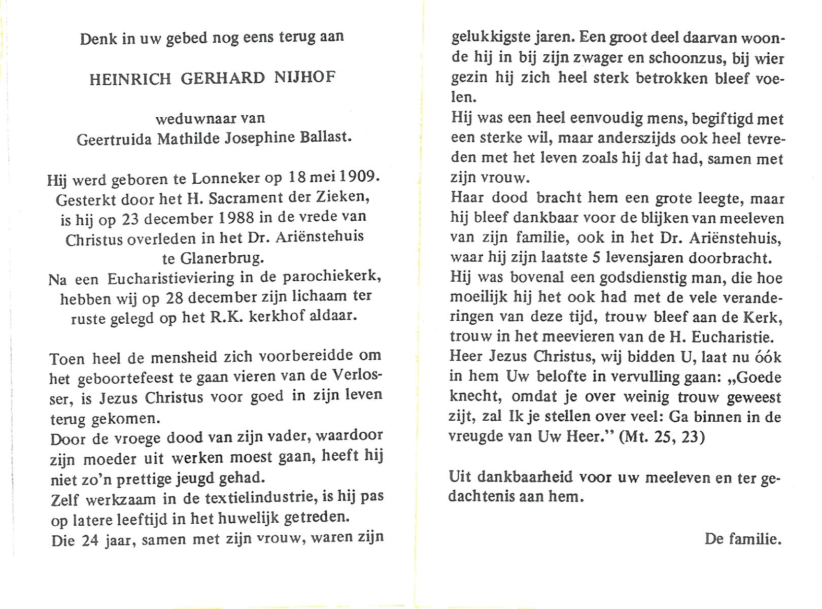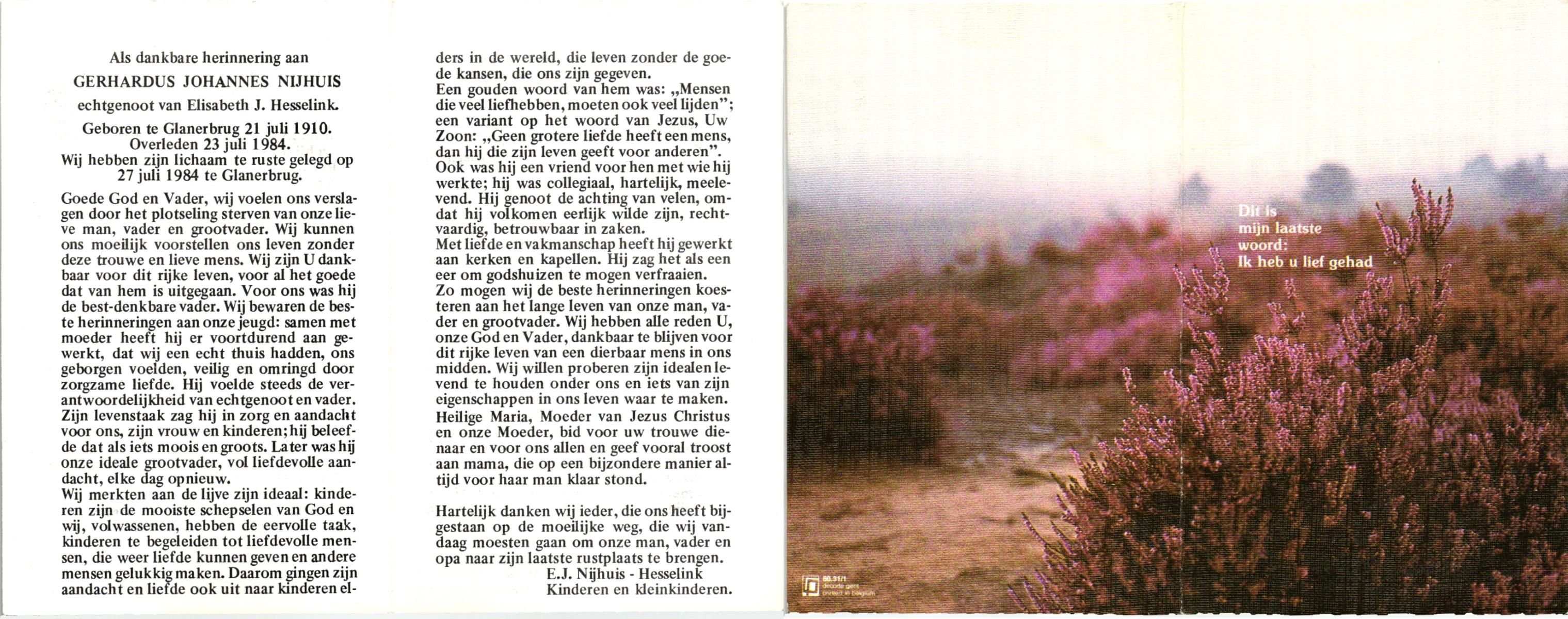 NIJHUIS, , Gerhardus Johannes, geboren op 21-7-1910 te Glanerbrug, overleden op 23-7-1984 op 74-jarige leeftijd, begraven op 27-7-1984 te Glanerbrug.