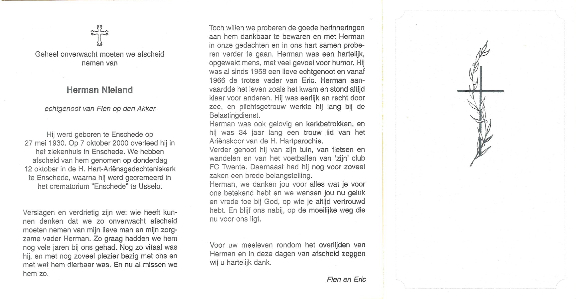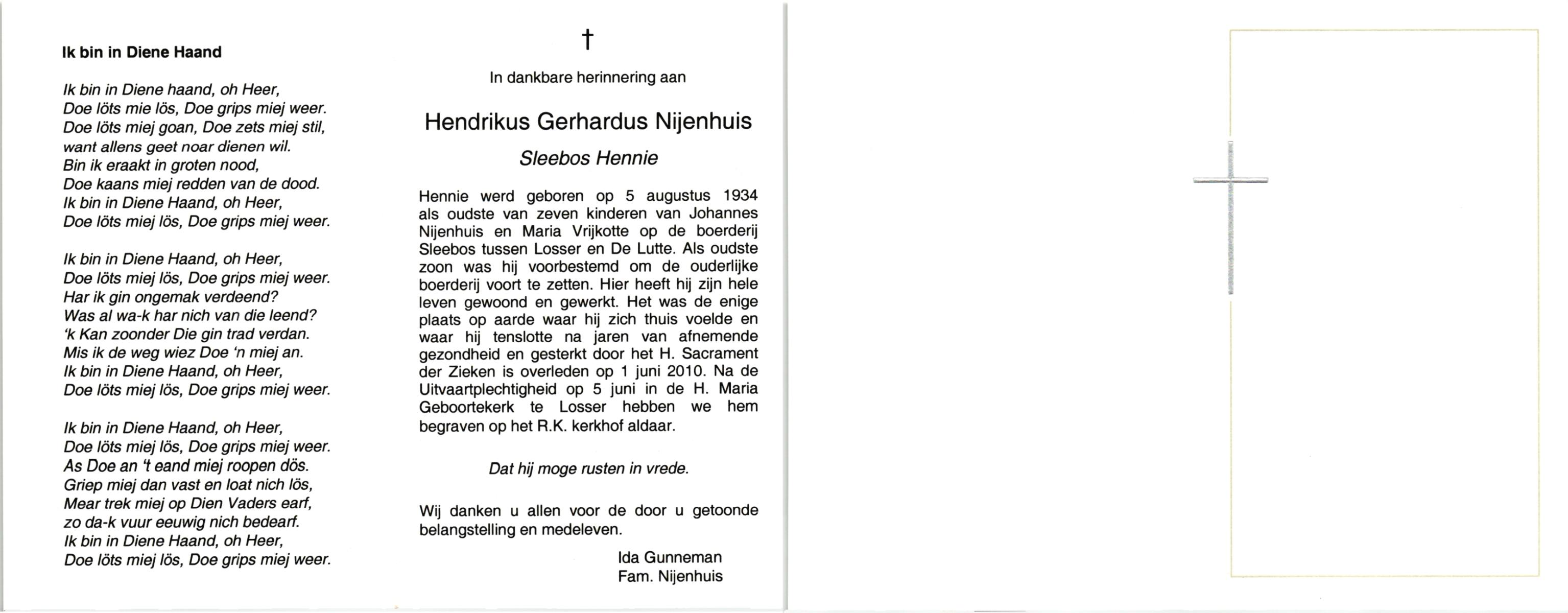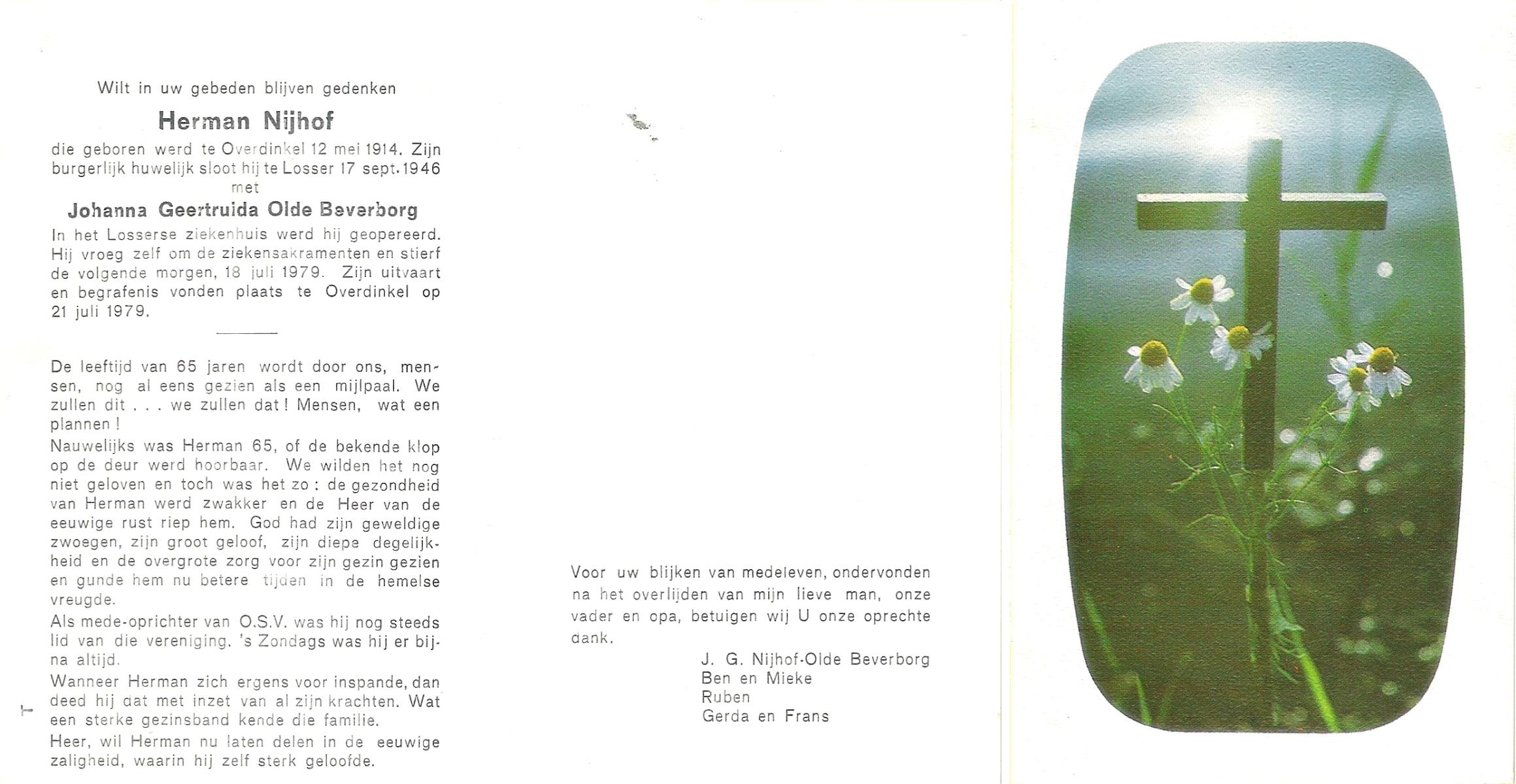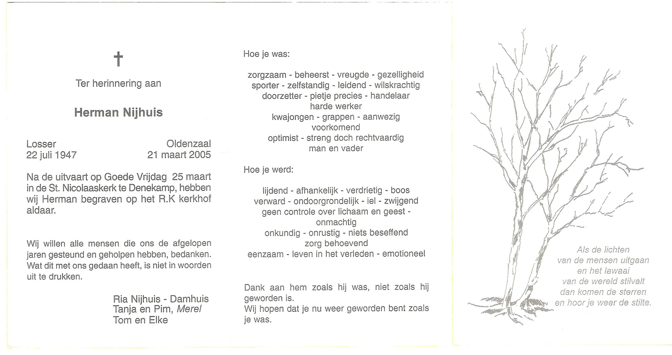 NIJHUIS, , Herman, geboren op 23-7-1930 te Albergen, overleden op 14-7-2010 op 79-jarige leeftijd.