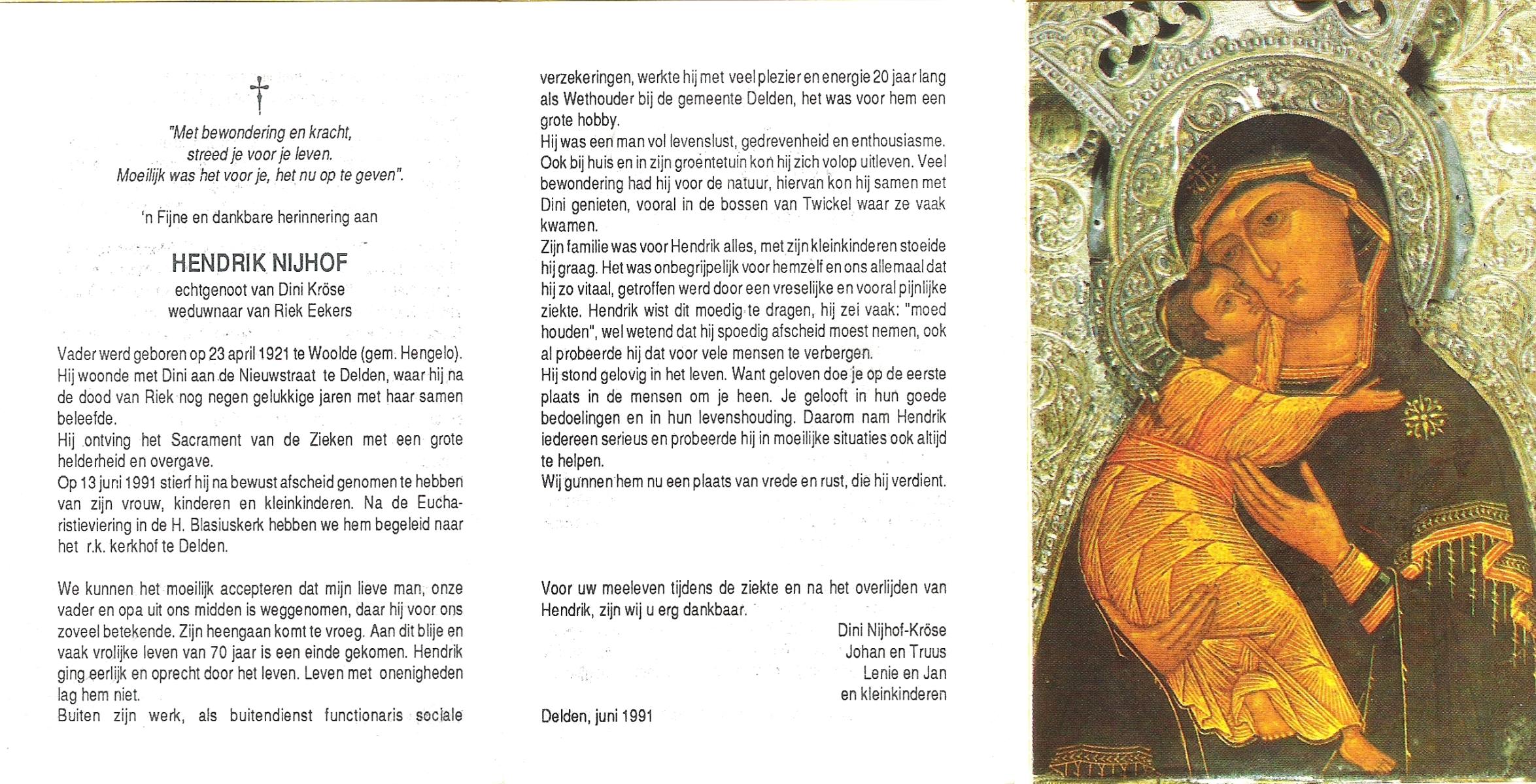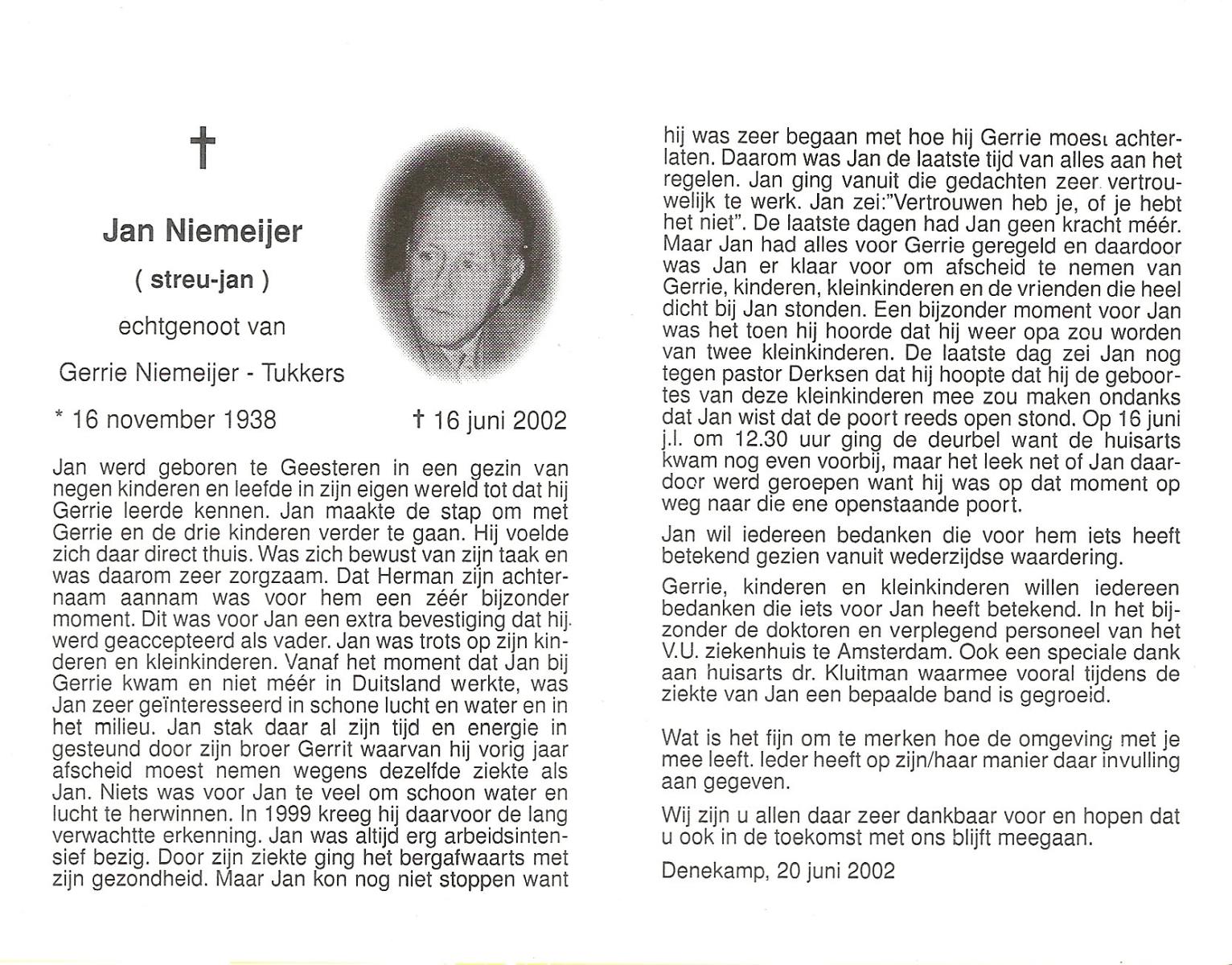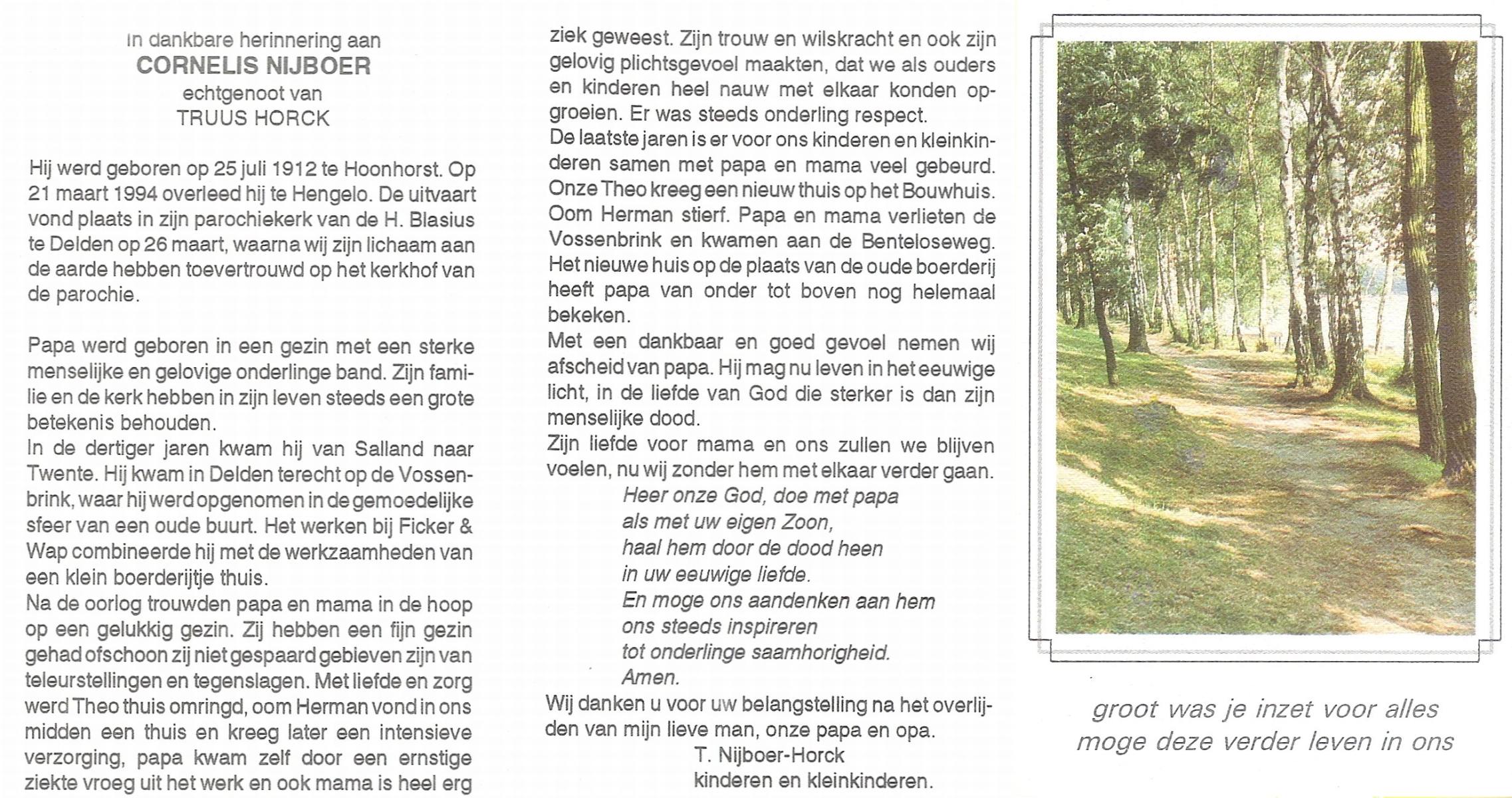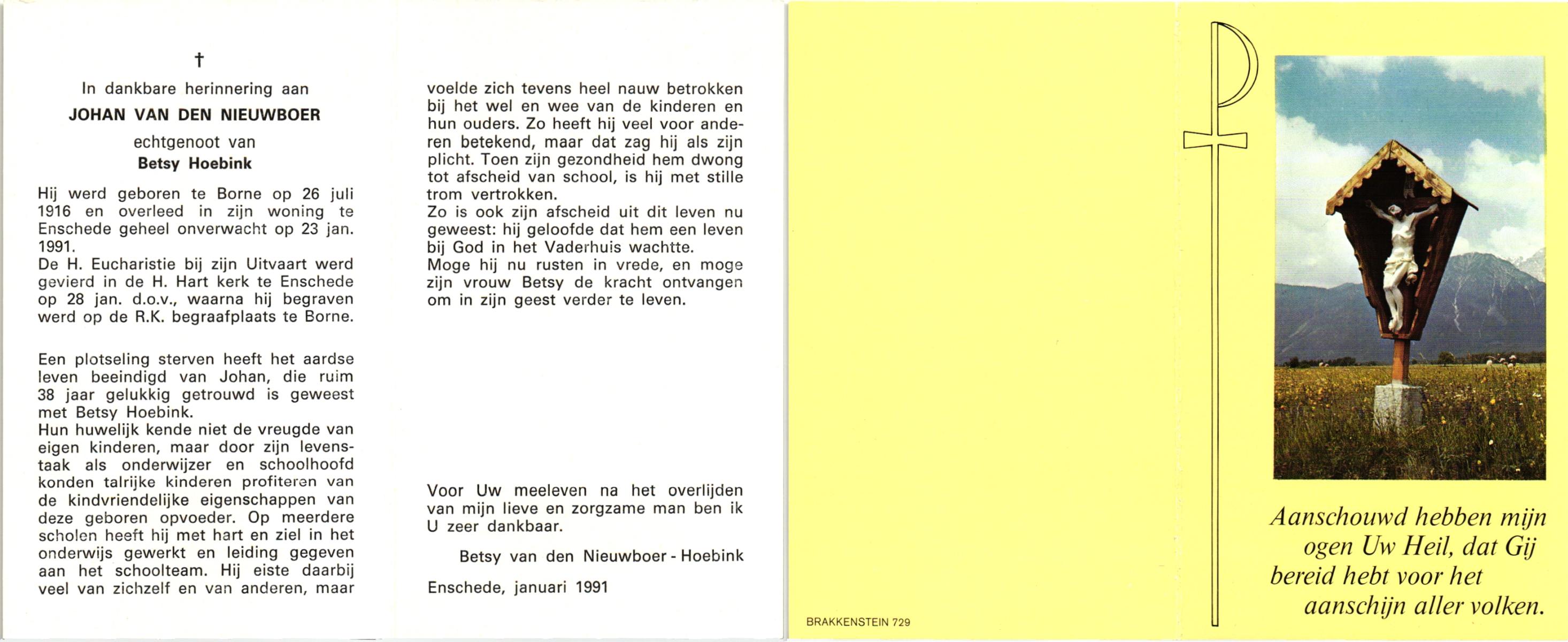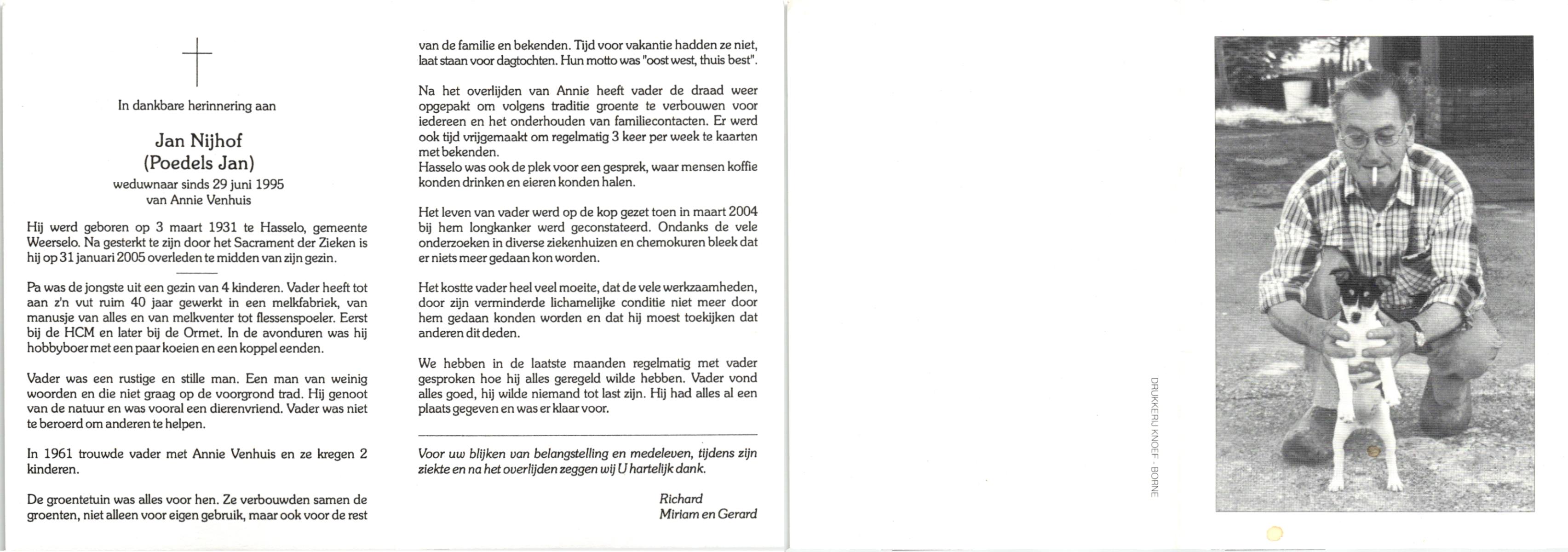 NIJHUIS, , Jan, geboren op 18-3-1918 te Borne, overleden op 8-6-1994 te Hengelo (O) op 76-jarige leeftijd, begraven op 11-6-1994 te Borne.