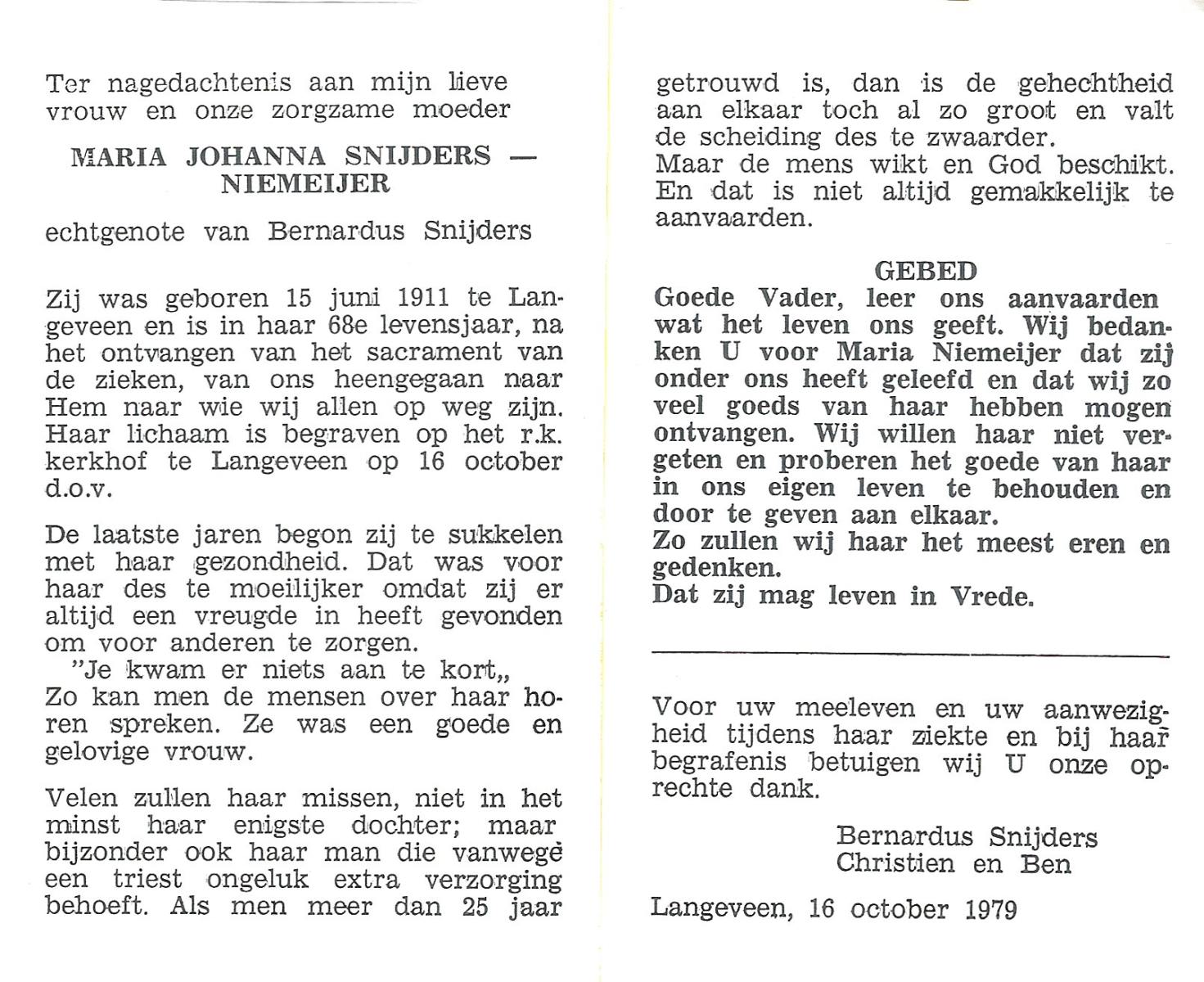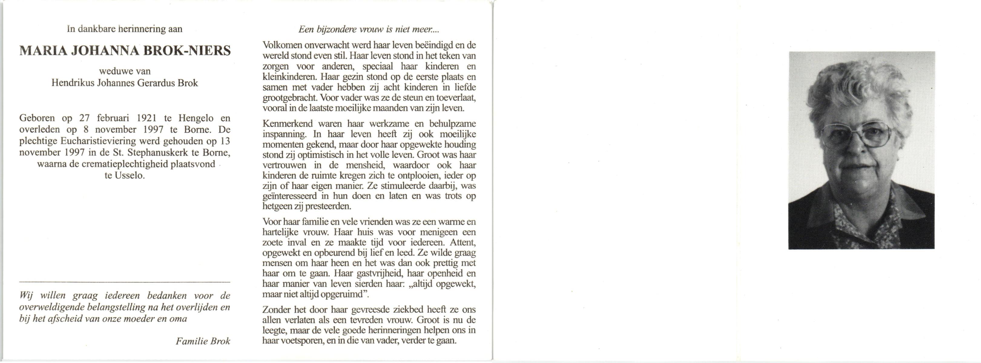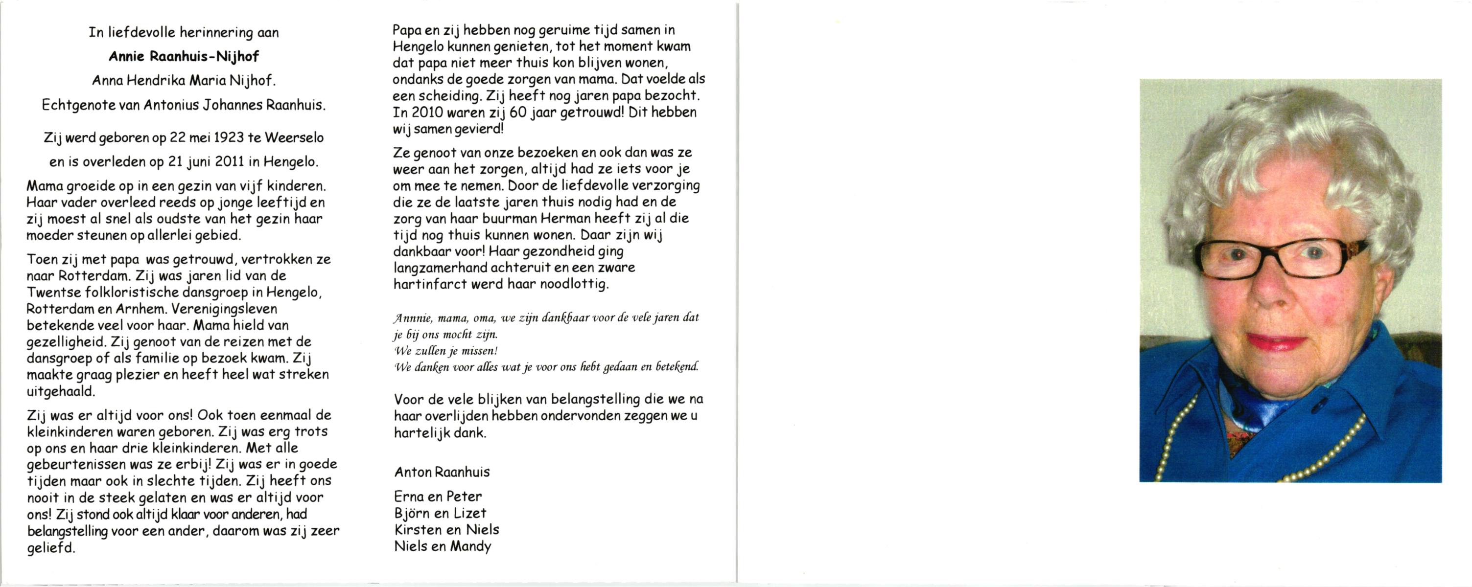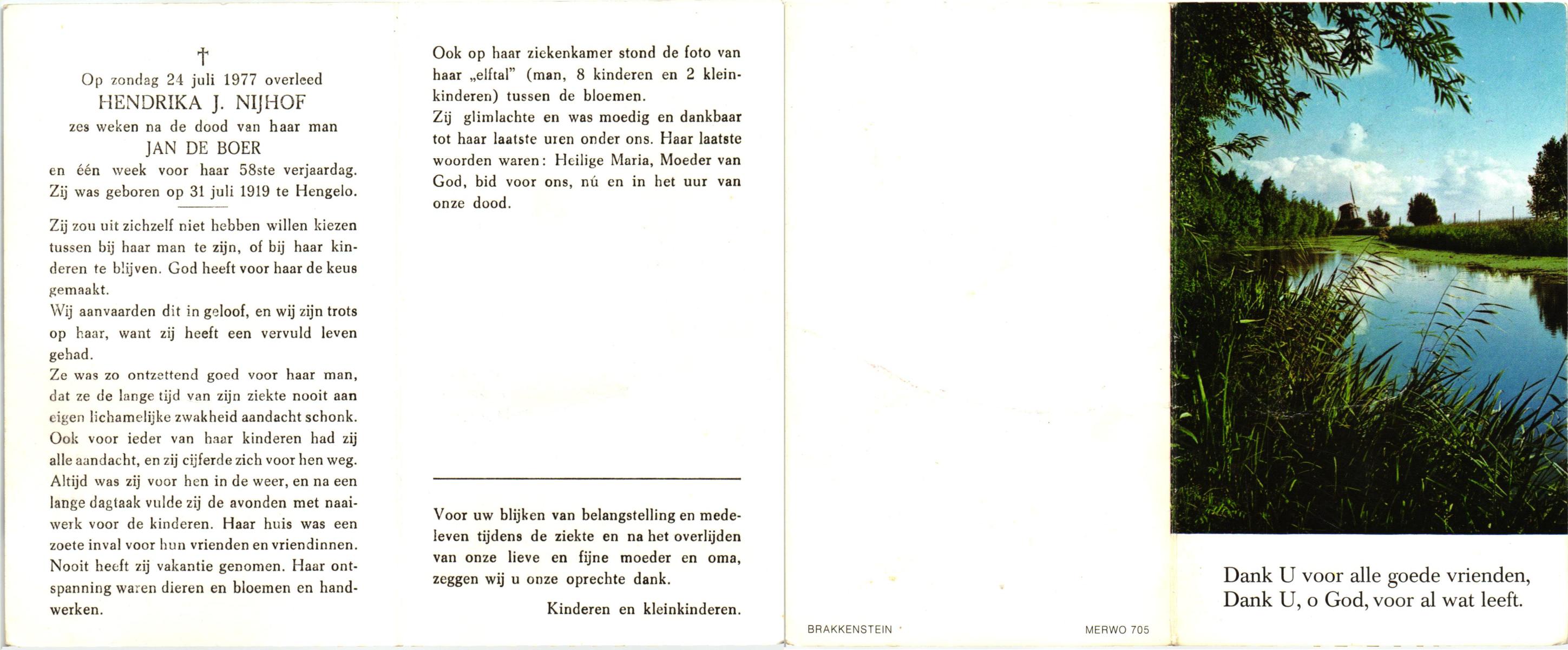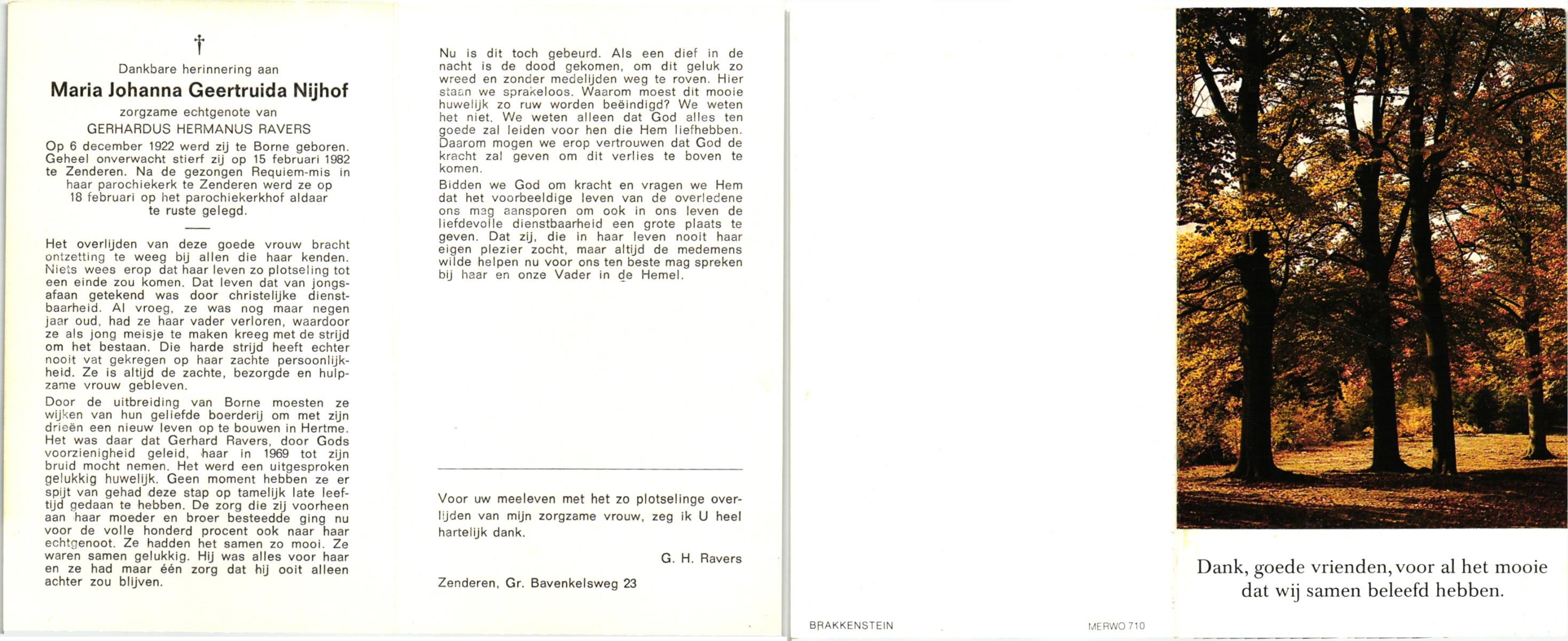 NIJHUIS, Maria Johanna, geboren op 11-11-1904 te Hengelo (O), overleden op 8-6-1981 op 76-jarige leeftijd, begraven op 11-6-1981 te Hengelo (Ov.).