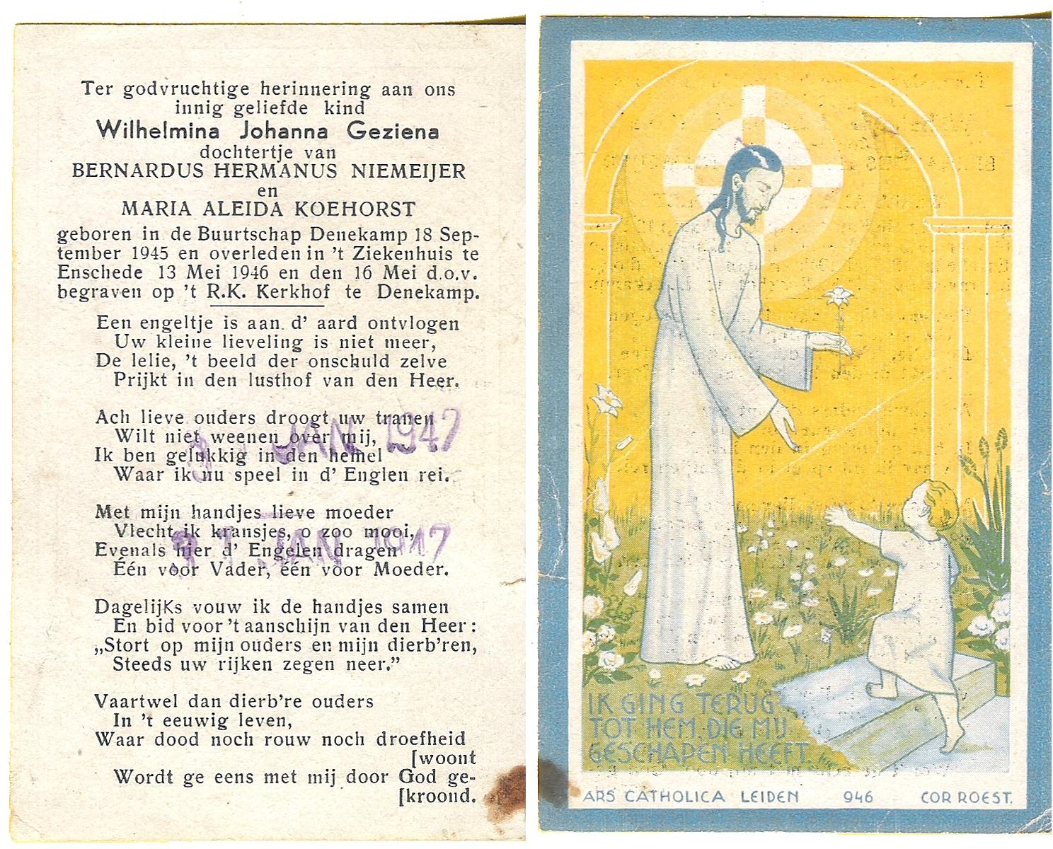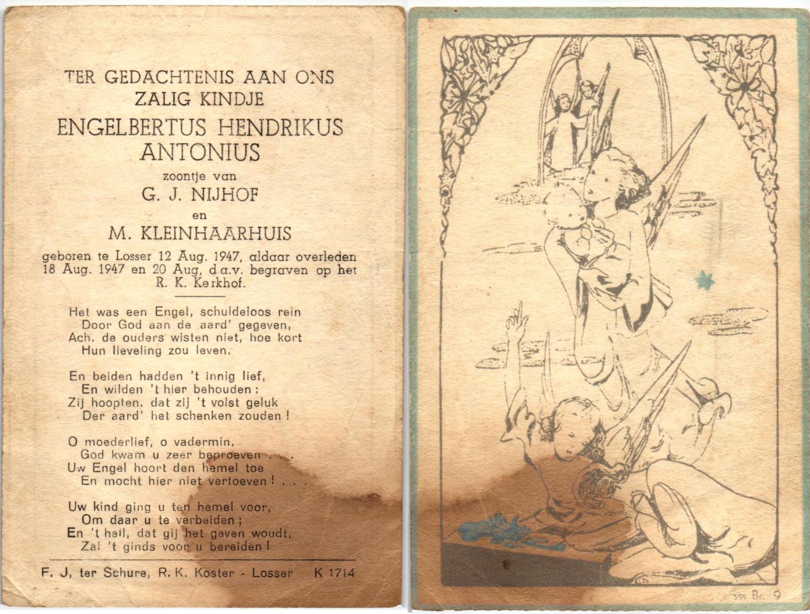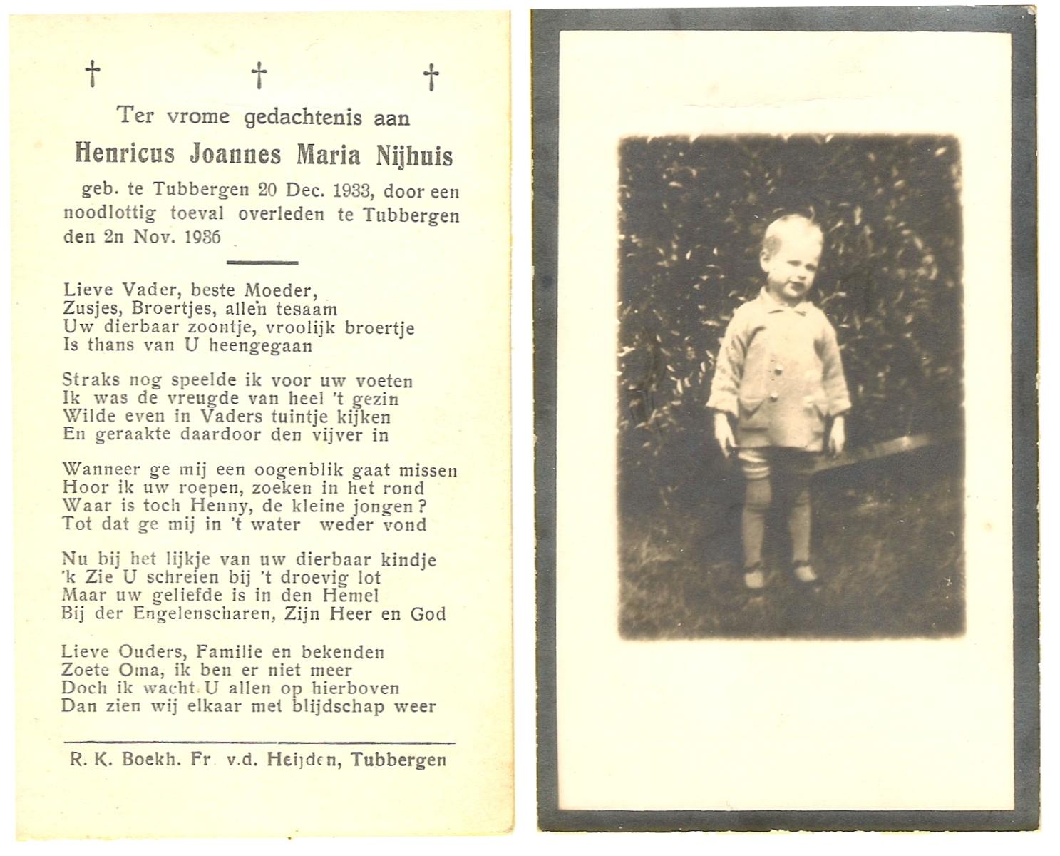 NIJHUIS, Jootje, geboren op 5-9-1936 te Enschede, overleden op 14-2-1949 te Enschede op 12-jarige leeftijd, begraven op 17-2-1949 te Enschede.