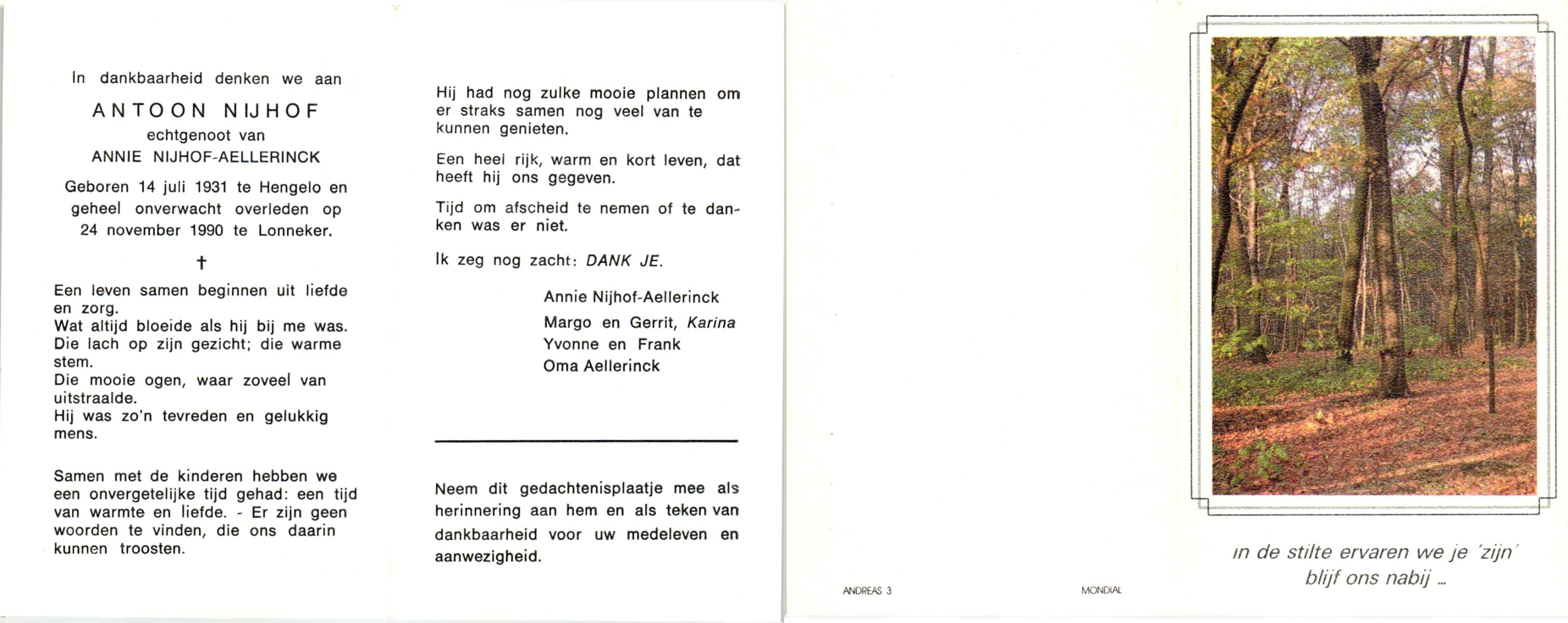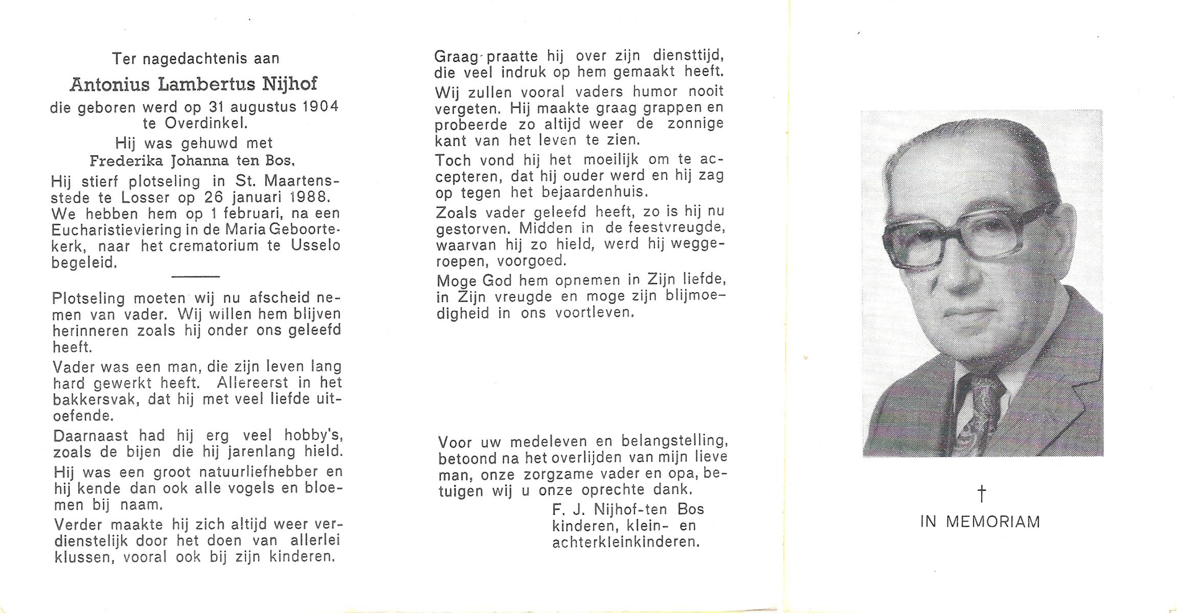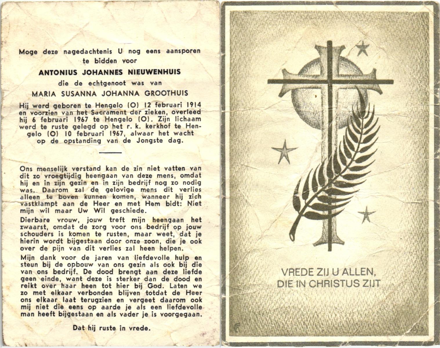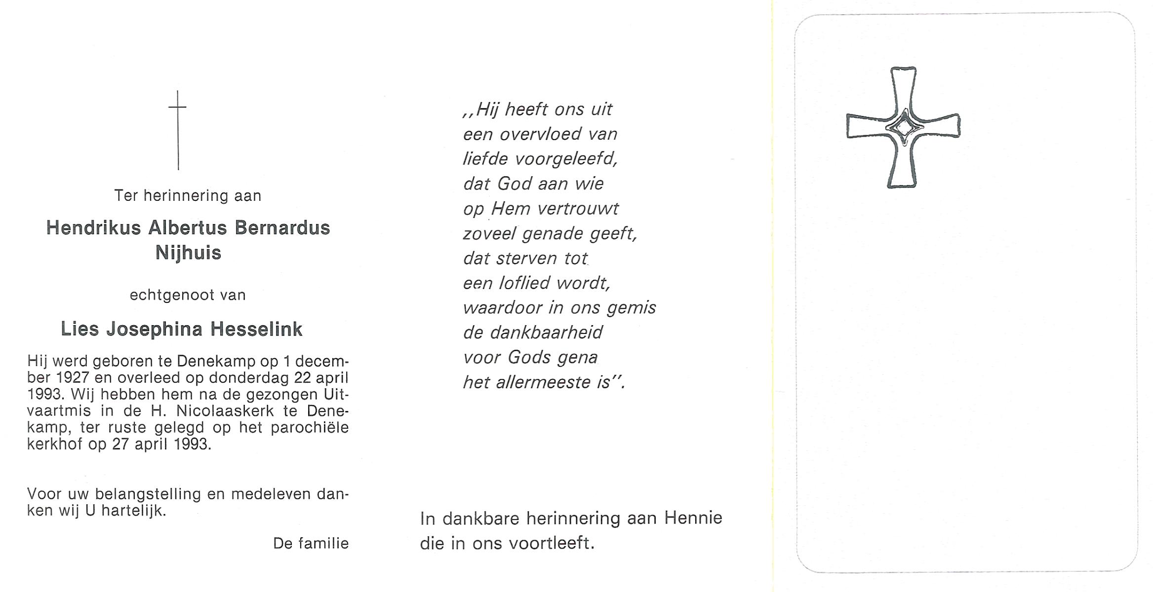 NIJHUIS, , Albert Jan Hendrik, geboren op 28-8-1916 te Enschede, overleden op 9-7-1989 te Enschede op 73-jarige leeftijd.