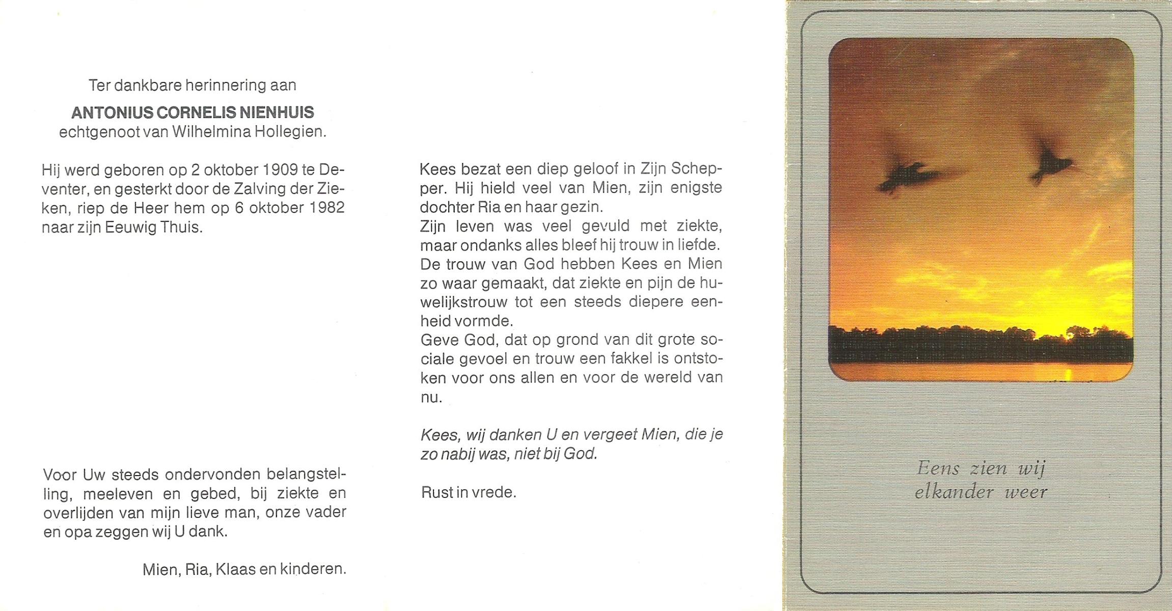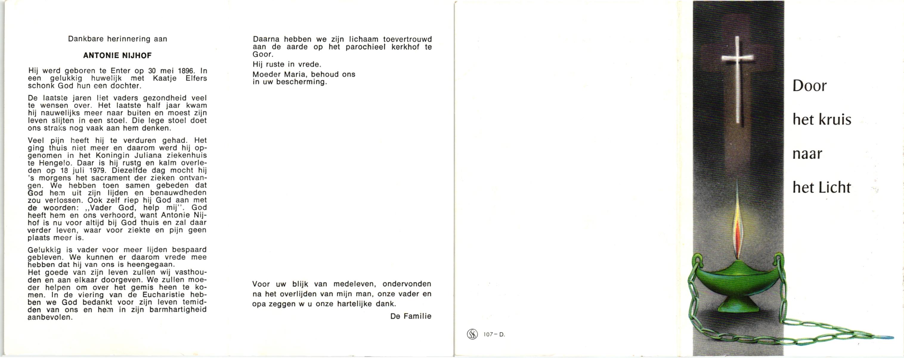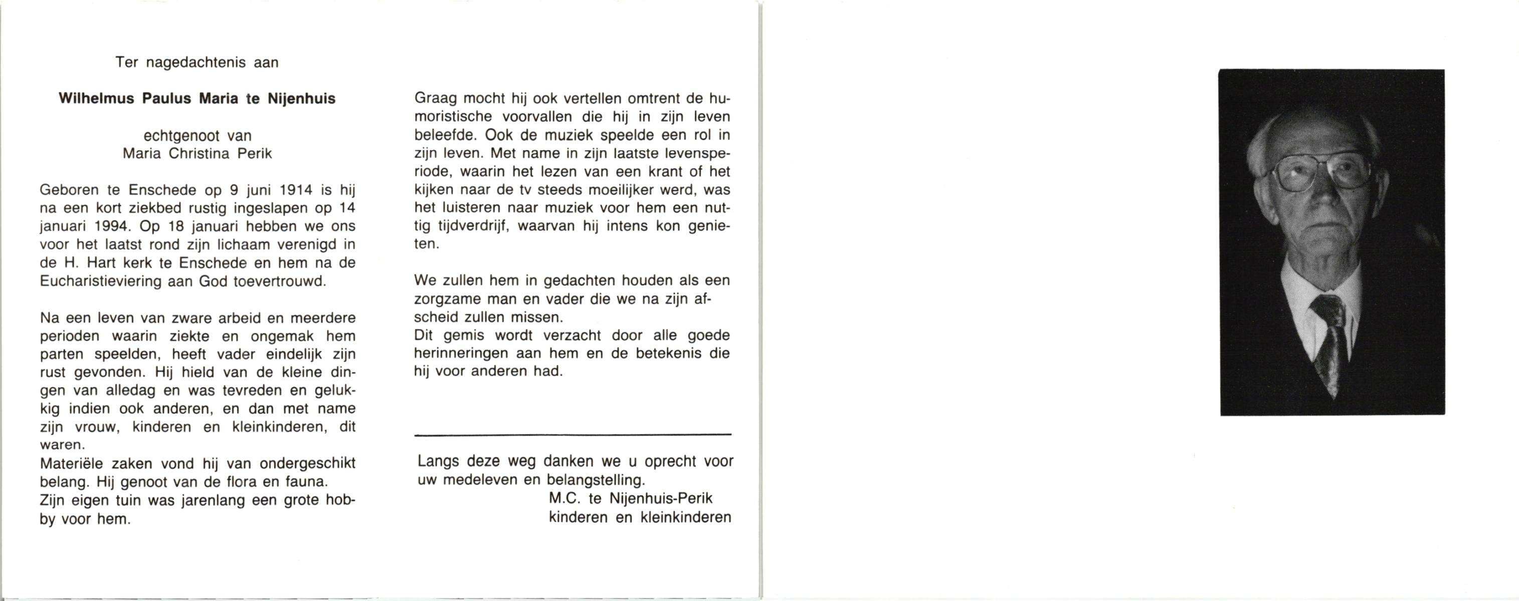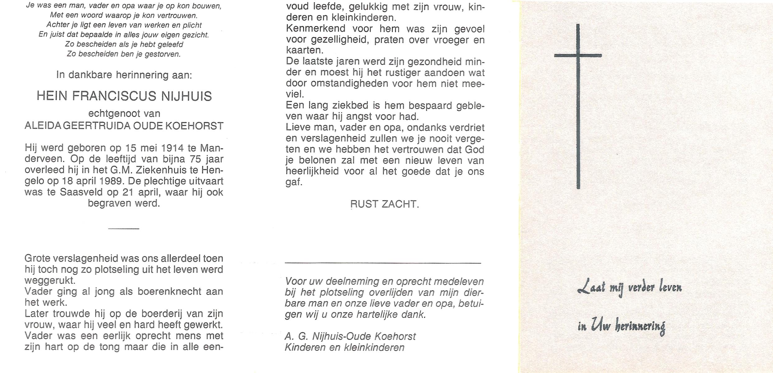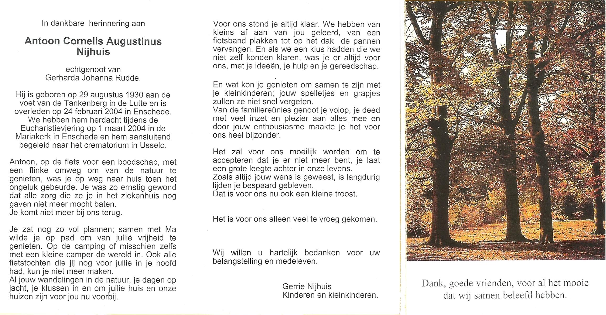 NIJHUIS, , Albert Jan Hendrik, geboren op 28-8-1916 te Enschede, overleden op 9-7-1989 te Enschede op 73-jarige leeftijd.