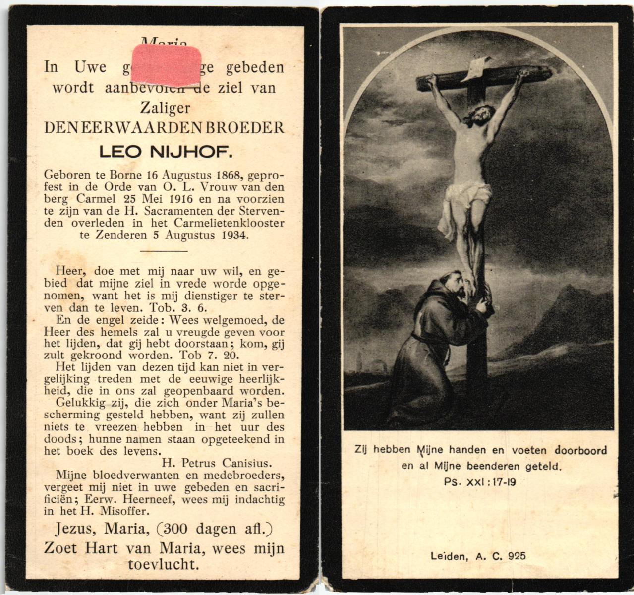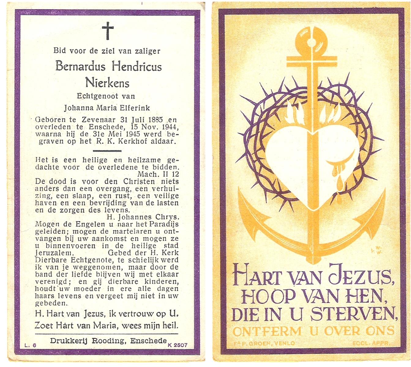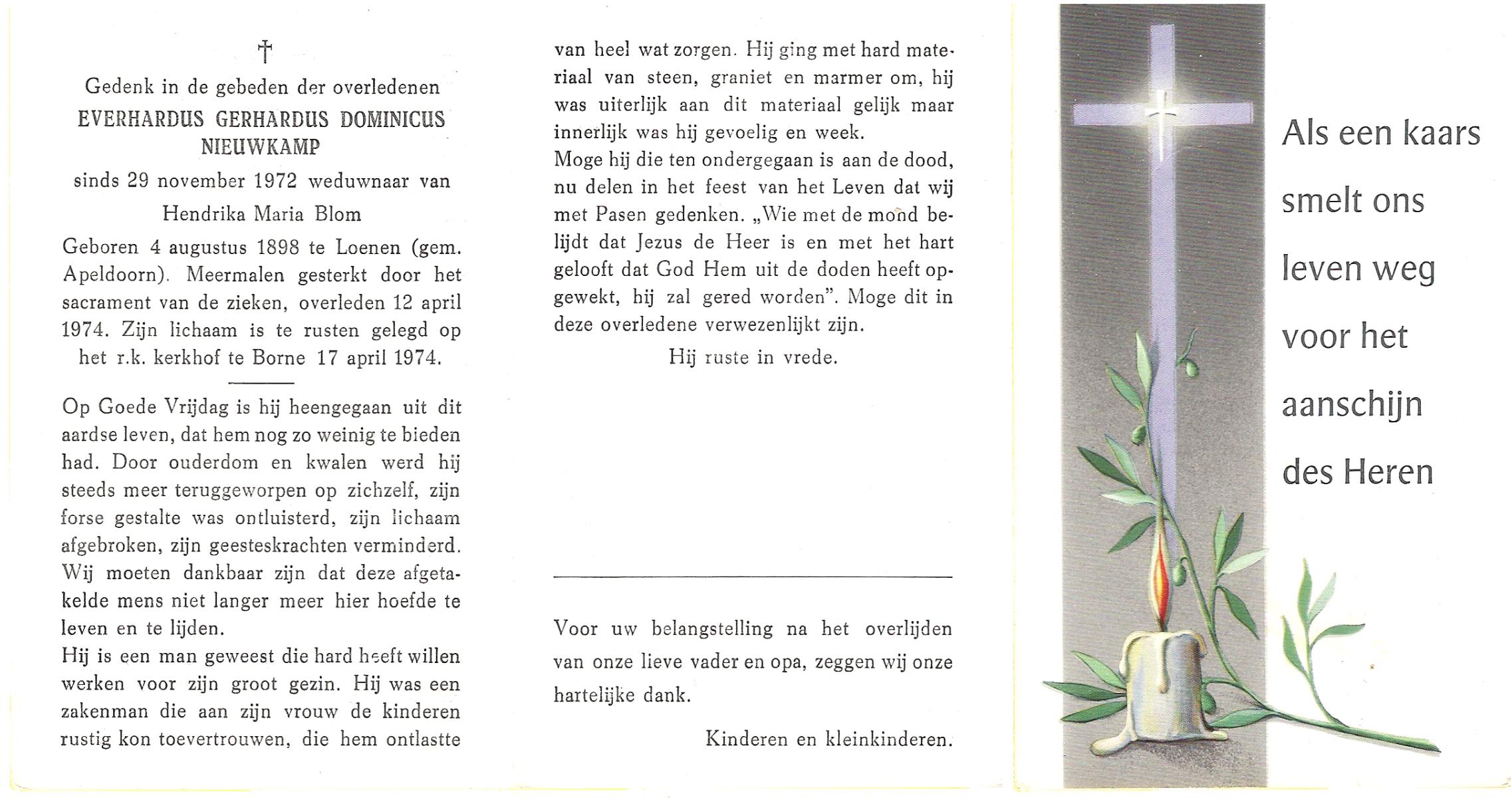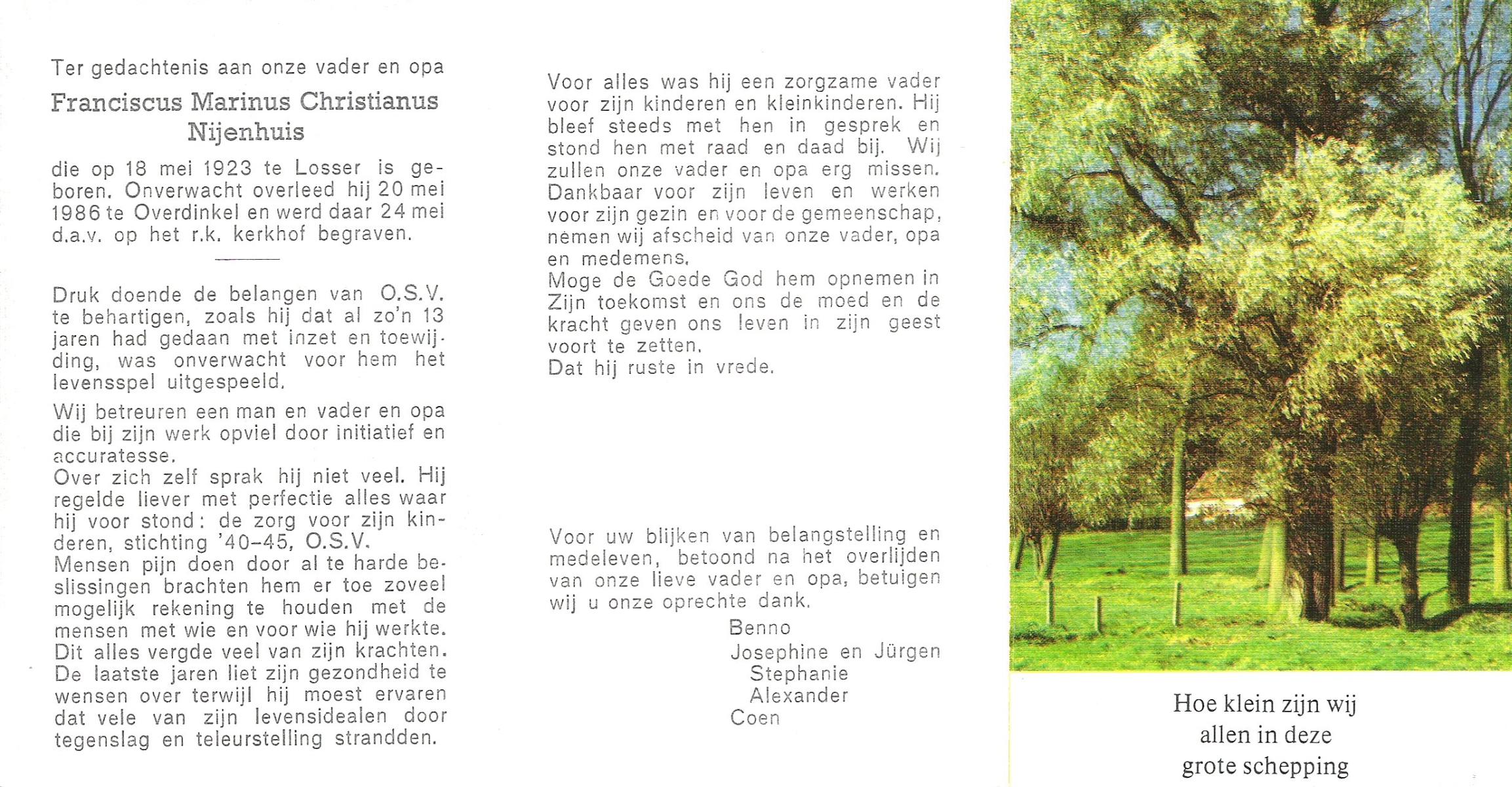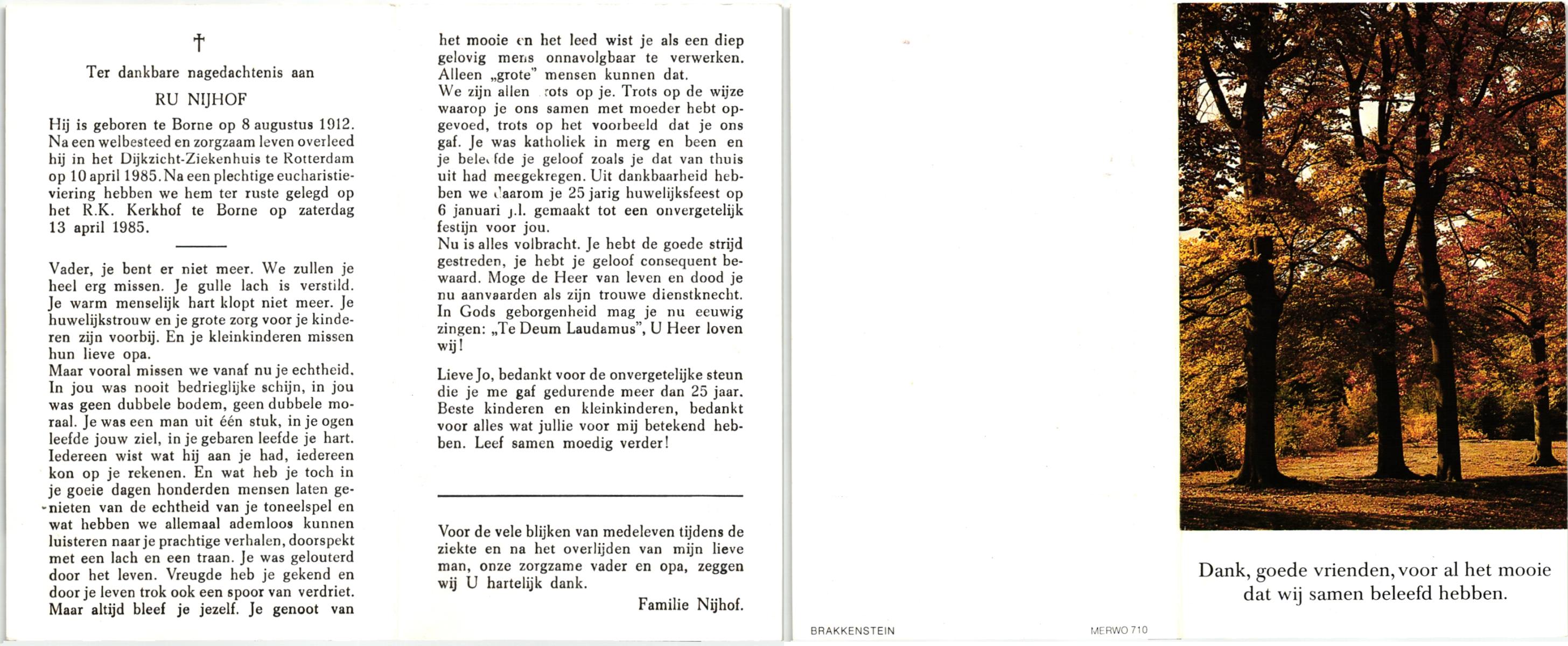 NIJHUIS, Lambertus Fredericus Jozef, geboren op 25-4-1915 te Borne, overleden op 13-8-1986 te Hengelo op 71-jarige leeftijd, begraven op 16-8-1986 te Borne.