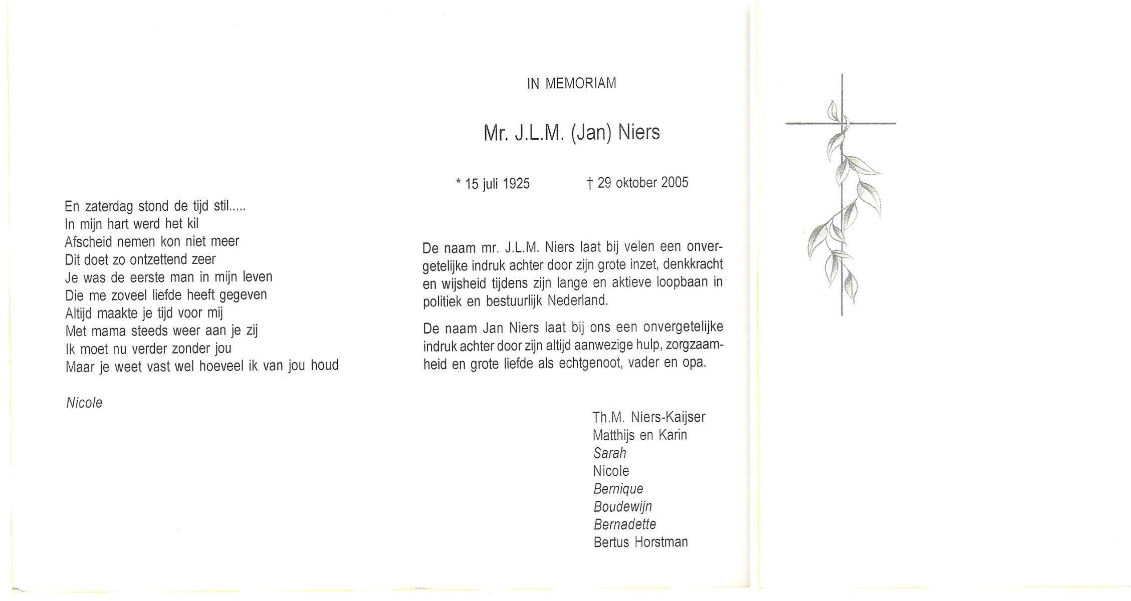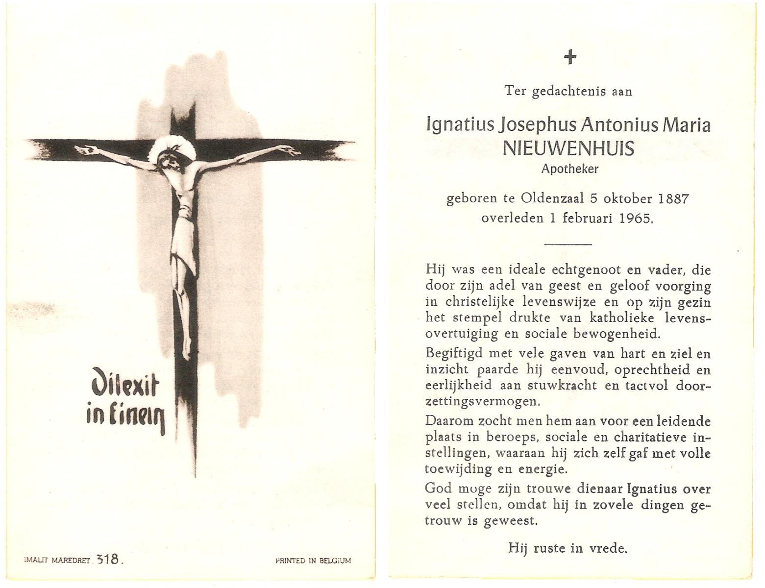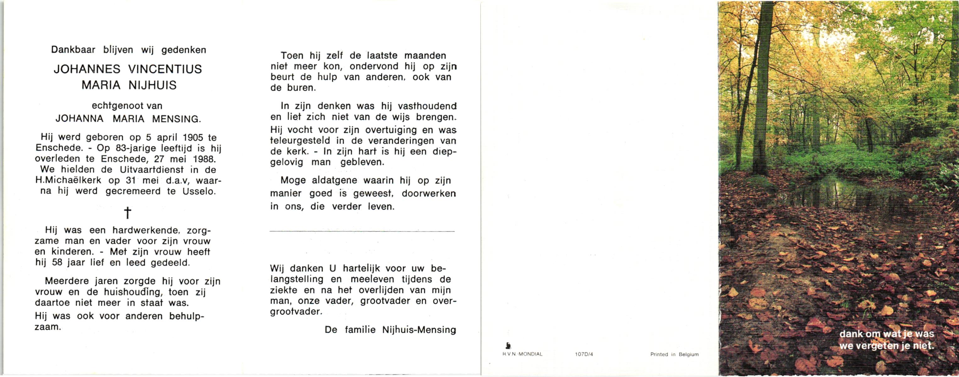NIJHUIS, , Johannes Vincentius Maria, geboren op 5-4-1905 te Enschede, overleden op 27-5-1988 te Enschede op 83-jarige leeftijd, gecremeerd op 31-5-1988 te Usselo.