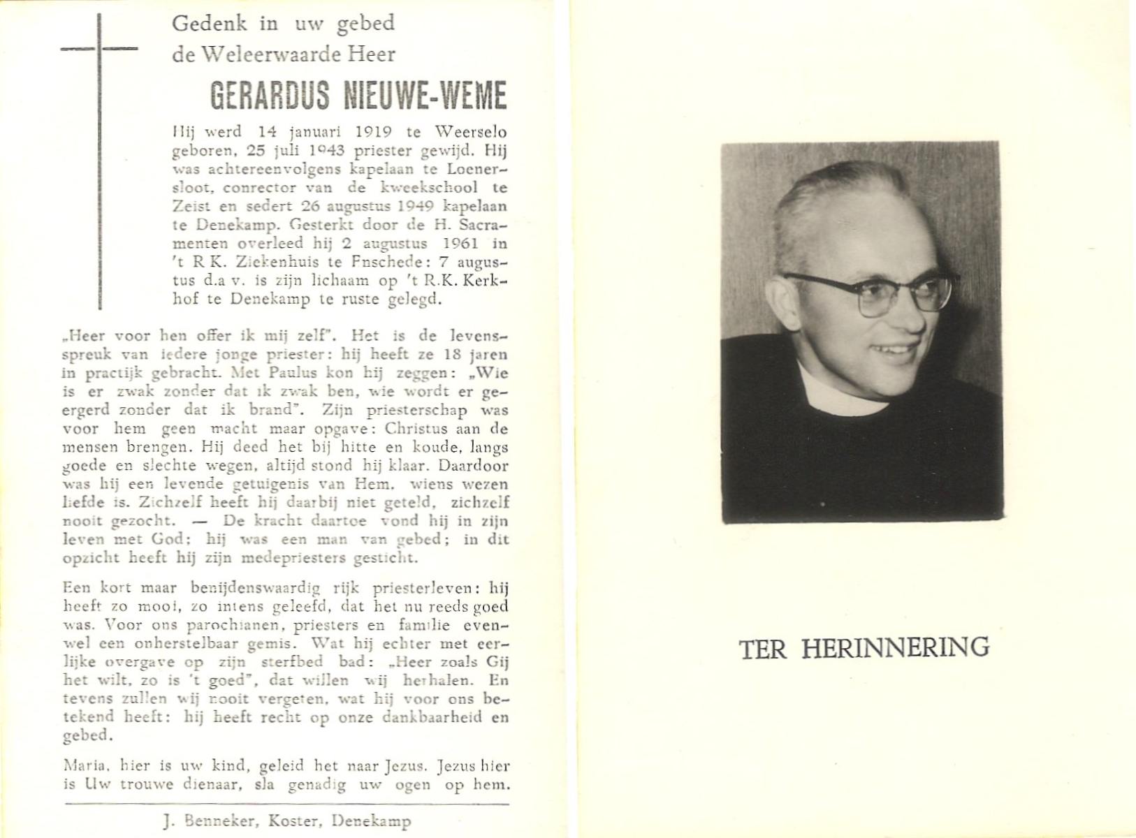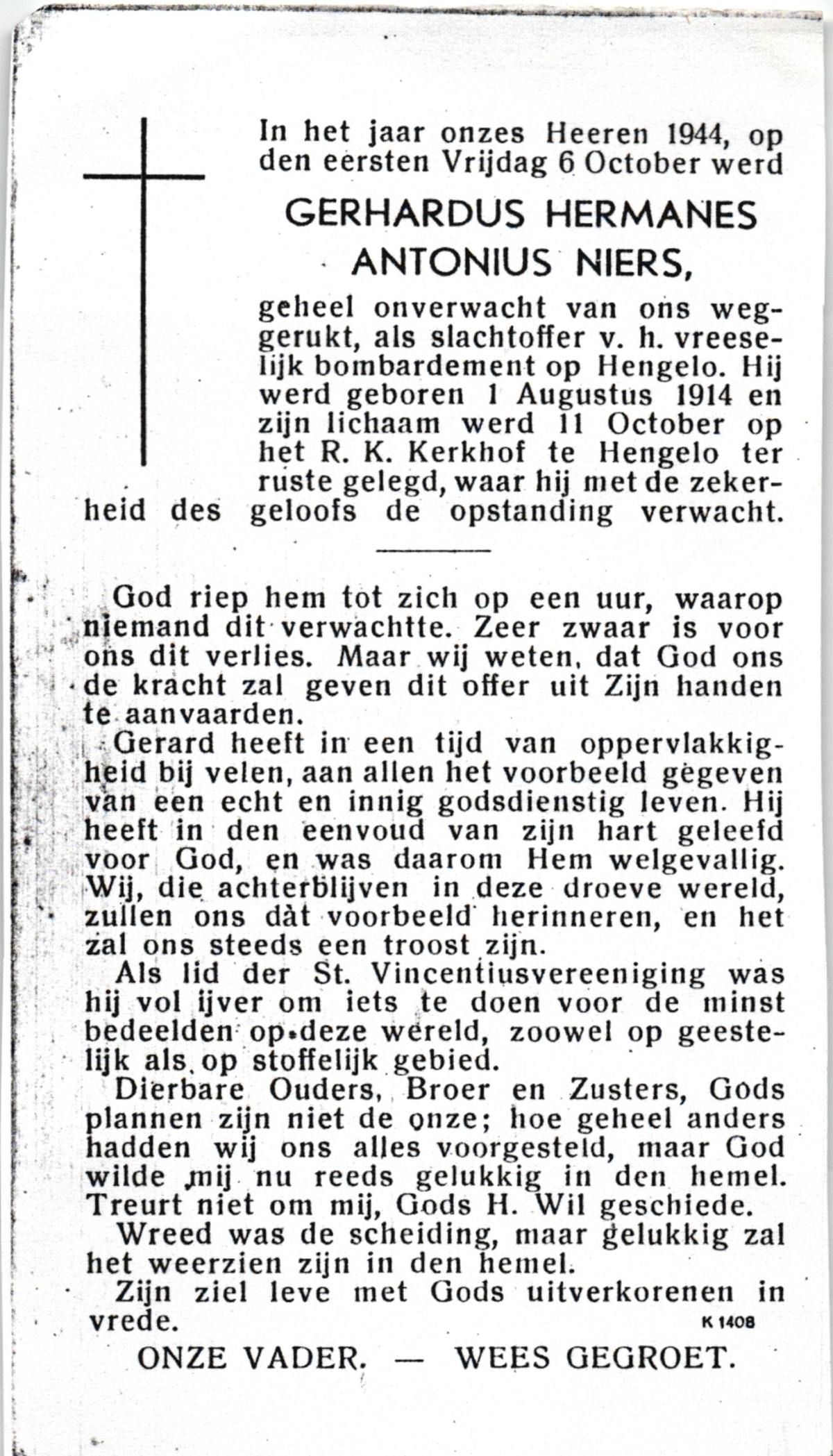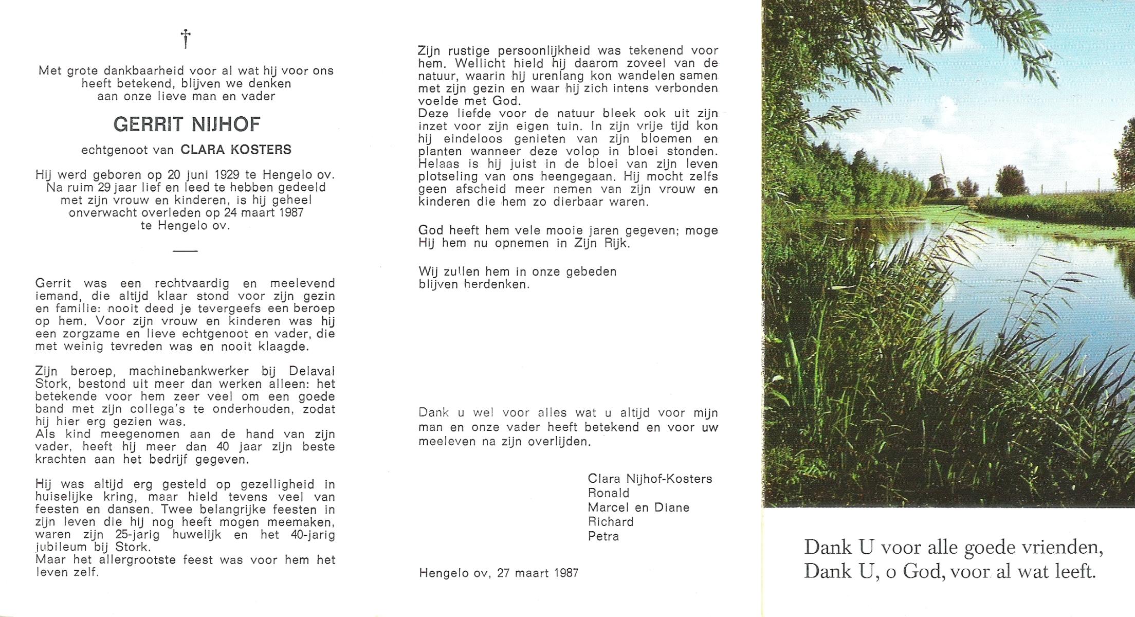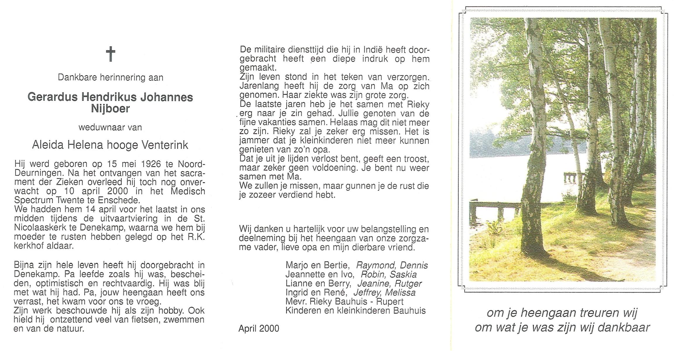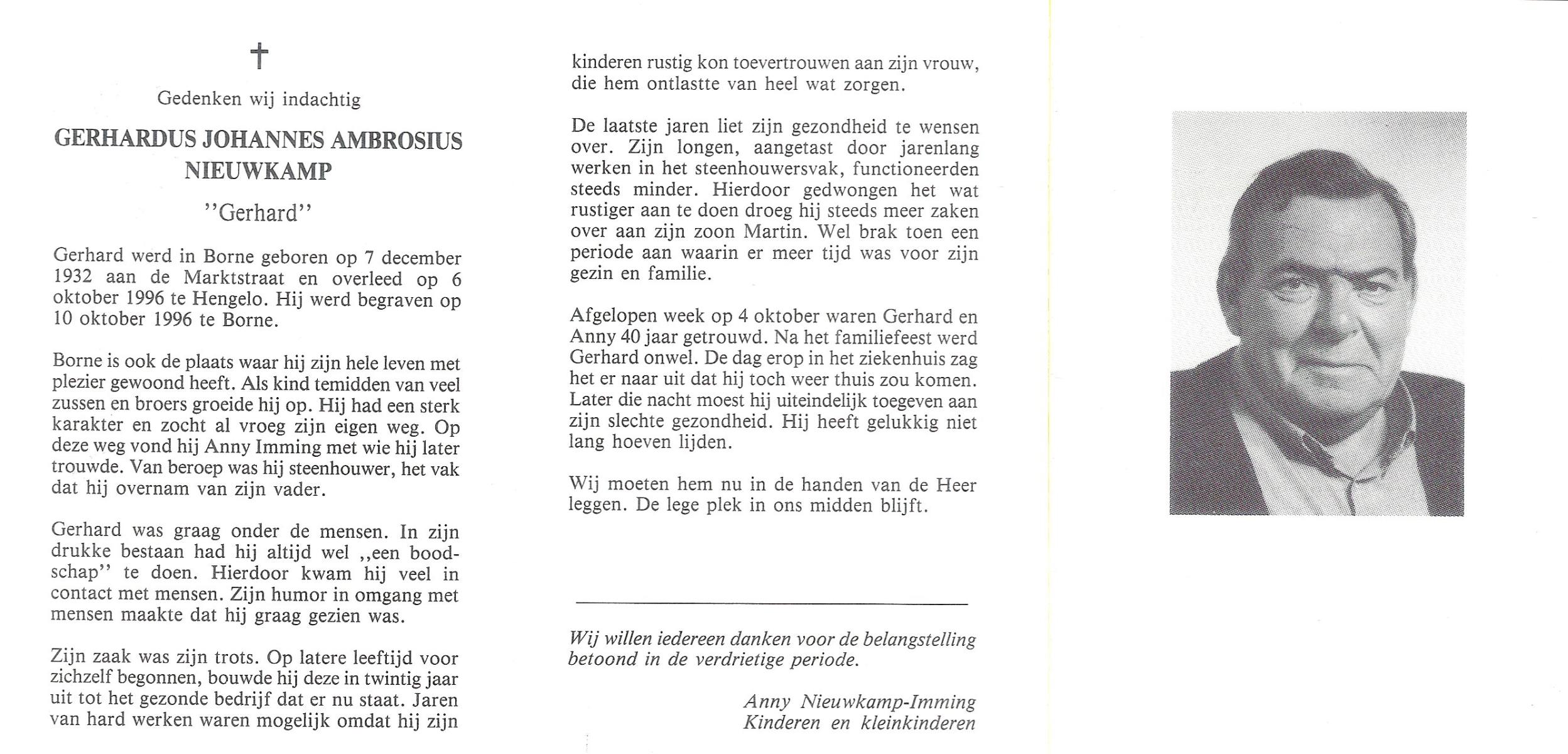 NIJHUIS, , Gerardus Hermanus, geboren op 9-9-1932 te Albergen, overleden op 27-10-1996 te Albergen op 64-jarige leeftijd, begraven op 30-10-1996 te Albergen.