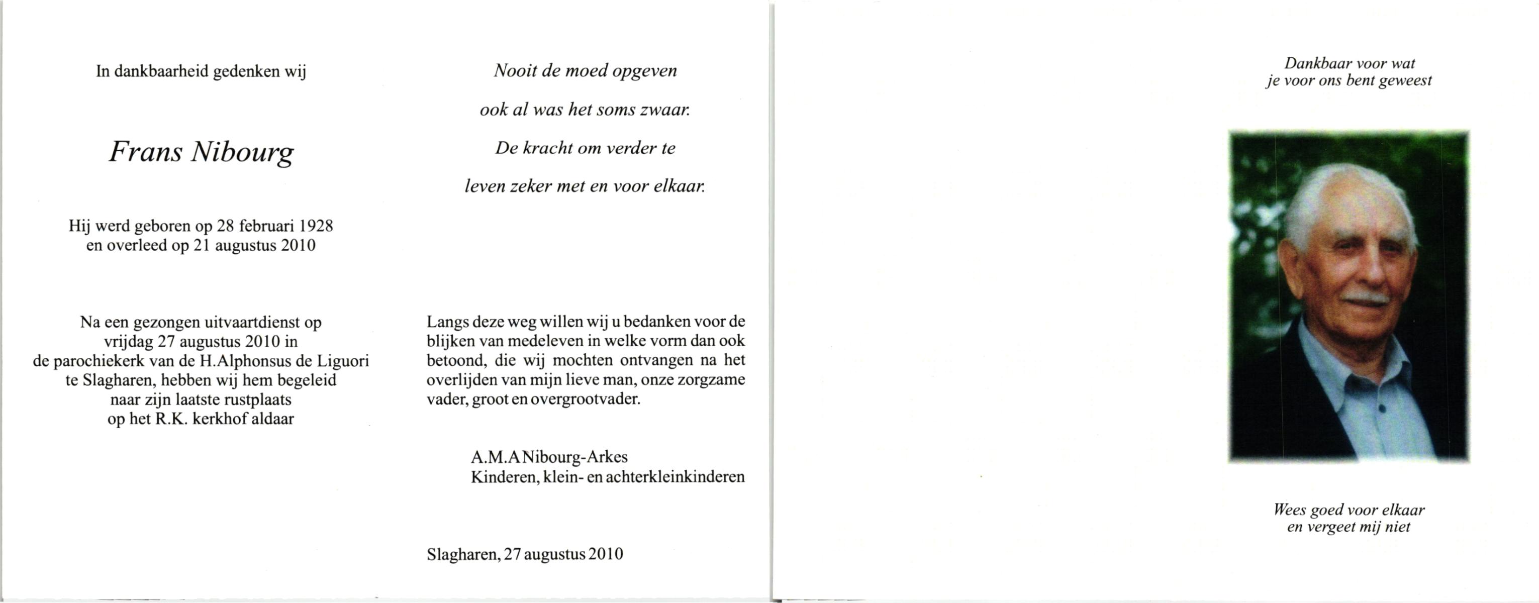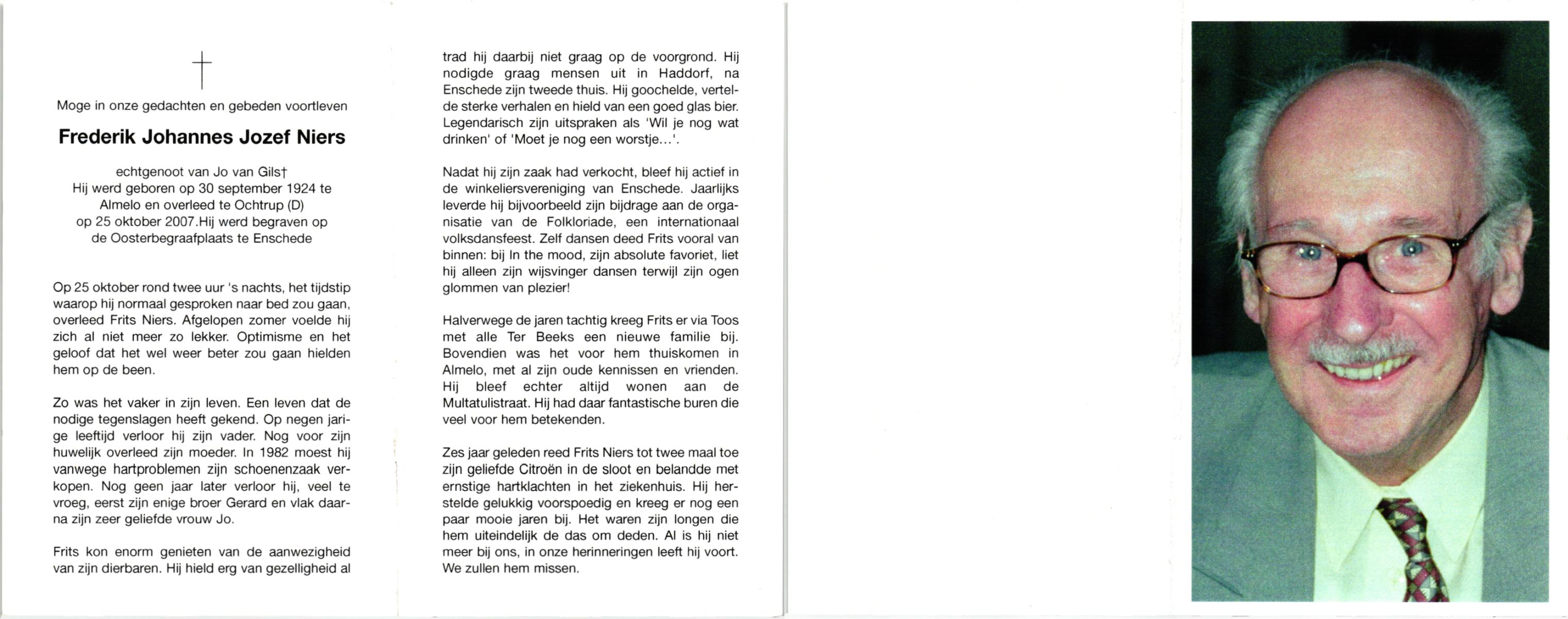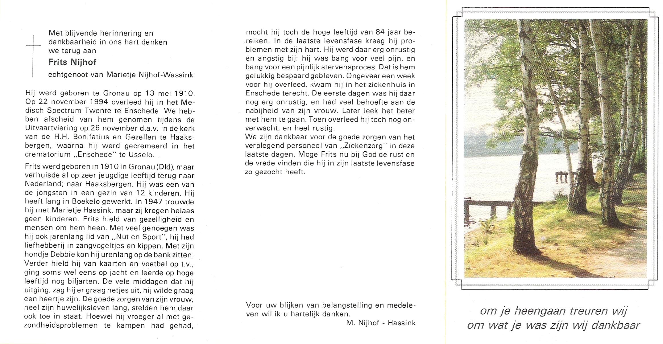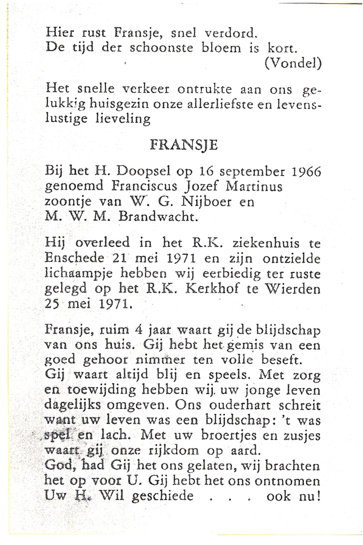 NIJHUIS, , Frans, geboren op 10-8-1922 te De Lutte, overleden op 18-12-2006 te Enschede op 84-jarige leeftijd, begraven op 22-12-2006 te De Lutte.