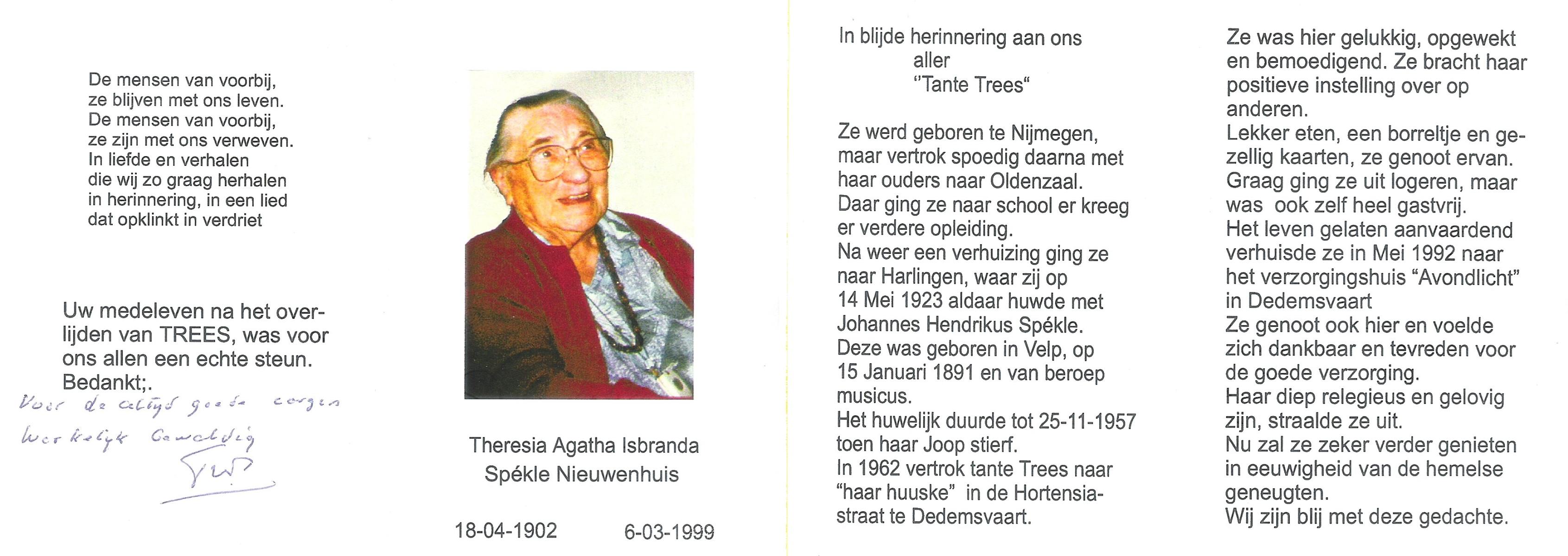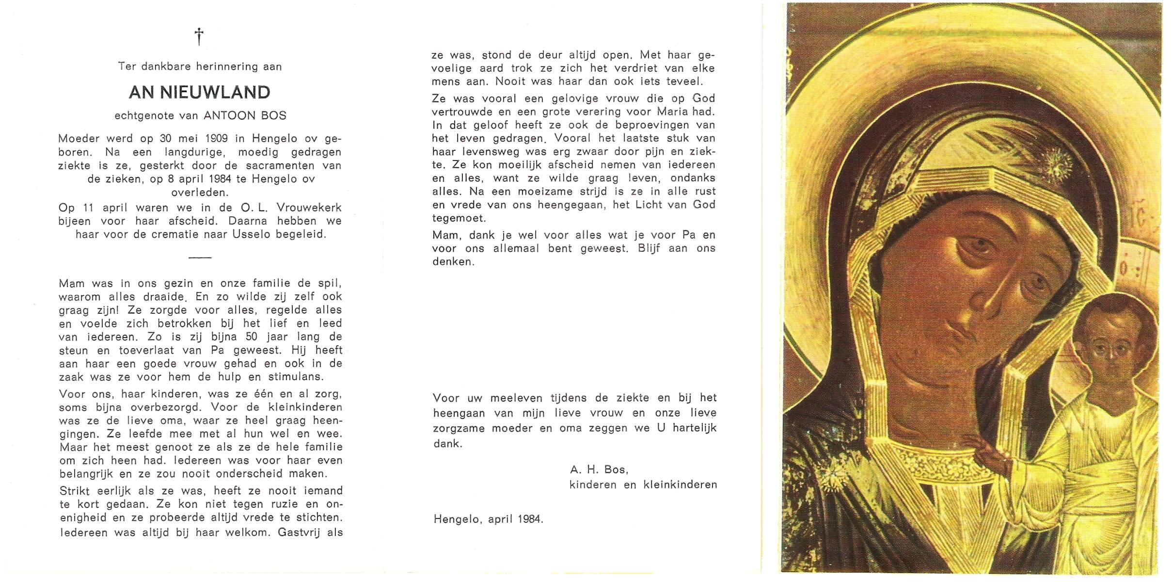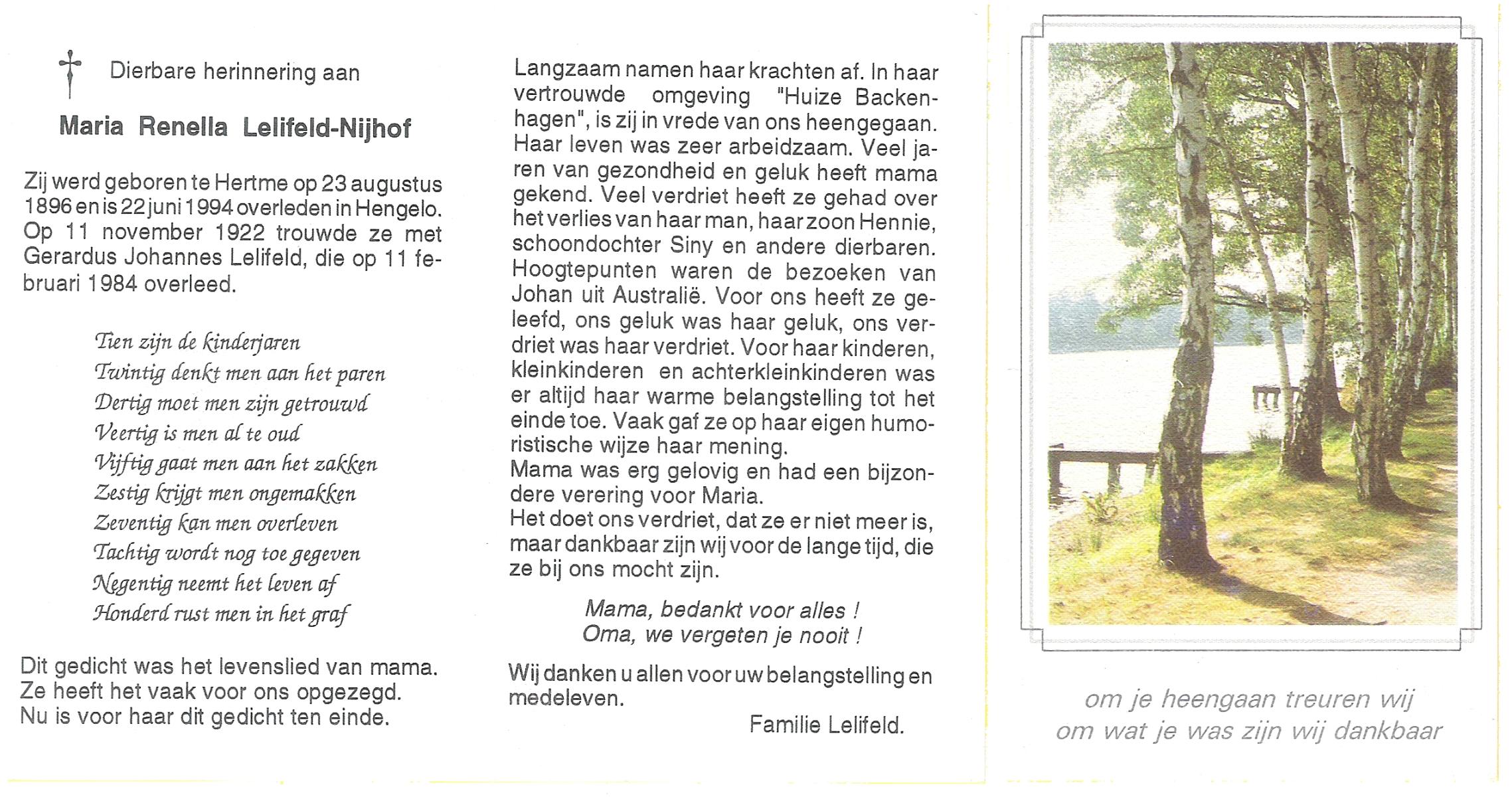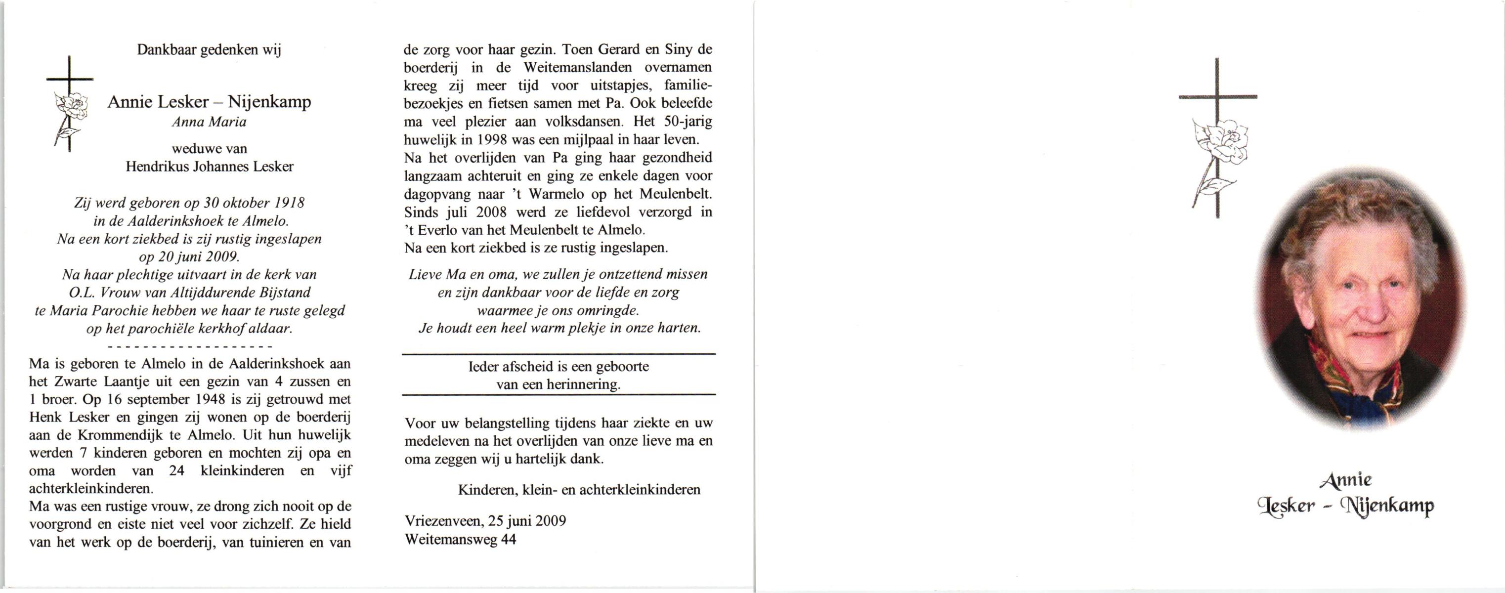 NIJHUIS, Lamberta, geboren op 26-7-1904 te Weerselo, overleden op 10-4-1992 op 87-jarige leeftijd, begraven op 15-4-1992 te Weerselo.