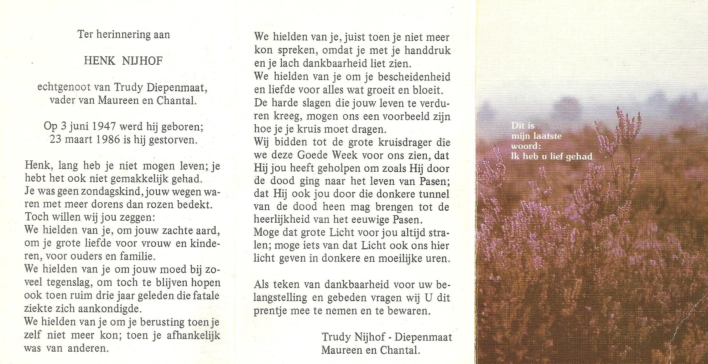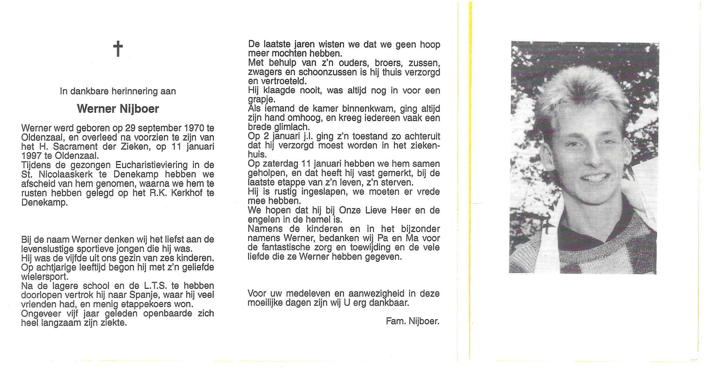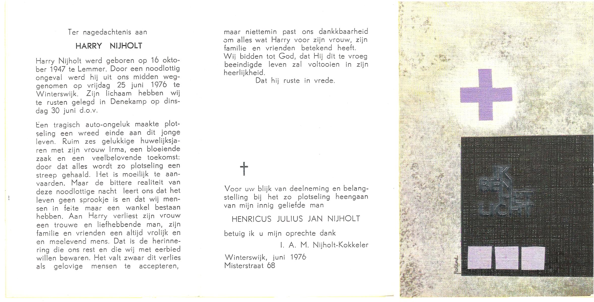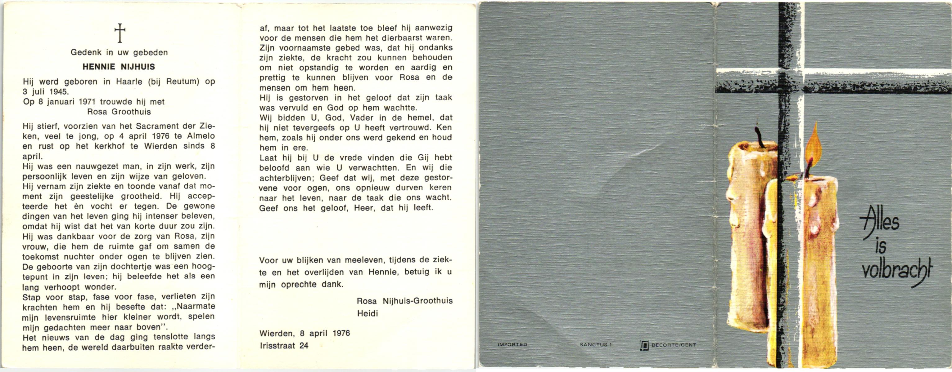 NIJHUIS, , Hennie, geboren op 3-7-1945 te Haarle, Tubbergen, overleden op 4-4-1976 te Almelo op 30-jarige leeftijd, begraven op 8-4-1976 te Wierden.
