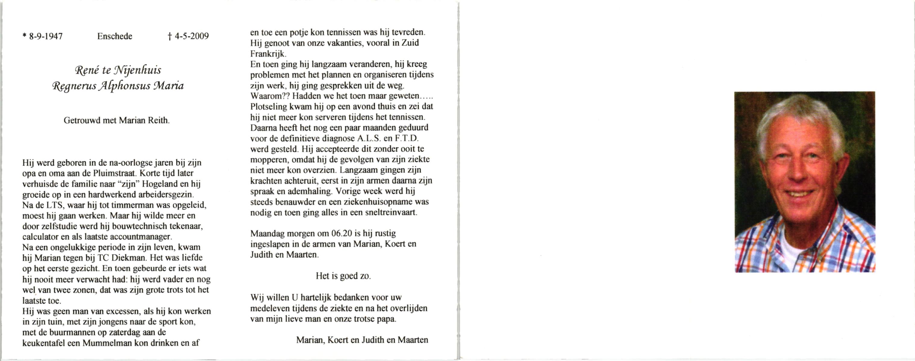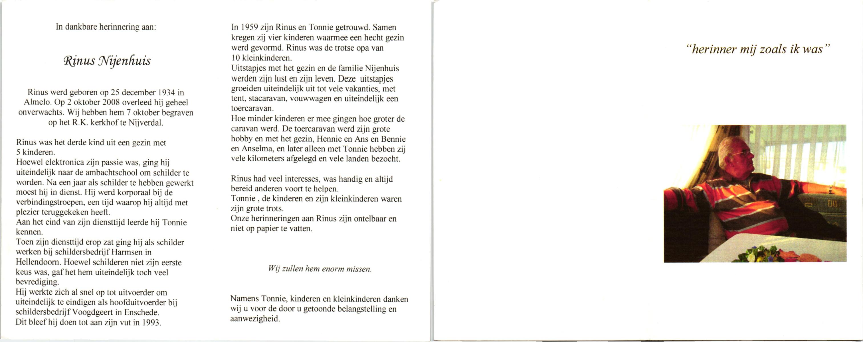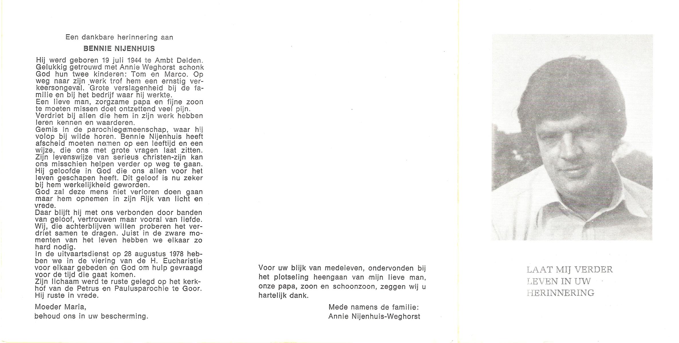 NIJHUIS, , Bernard, geboren op 5-3-1934 te De Lutte, overleden op 7-12-2009 te Enschede op 75-jarige leeftijd.