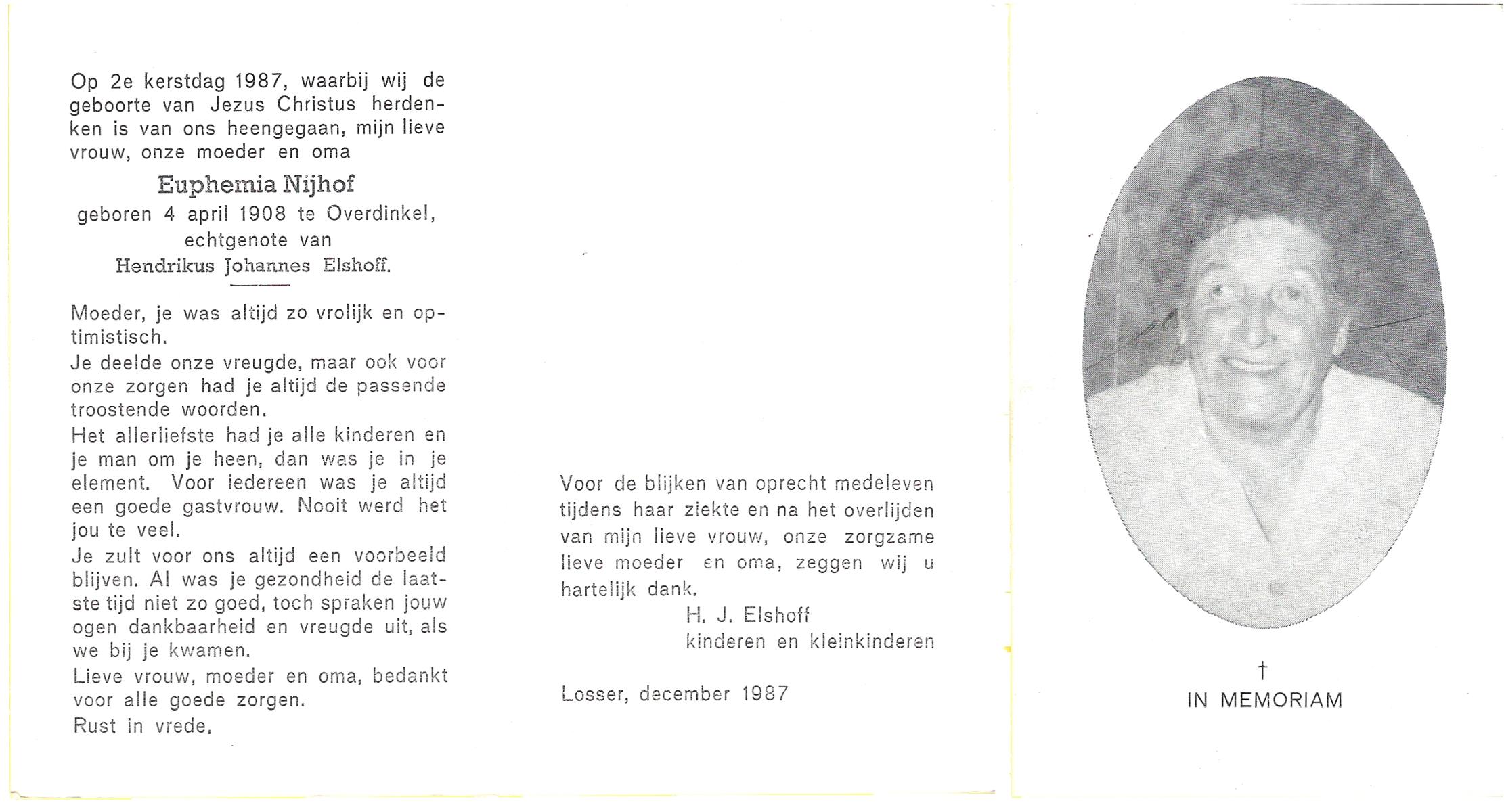 MULTHOFF, Euphemia, geboren op 12-02-1852 te Losser, overleden op 23-6-1924 te Losser op 72-jarige leeftijd, begraven op 26-6-1924 te Losser.