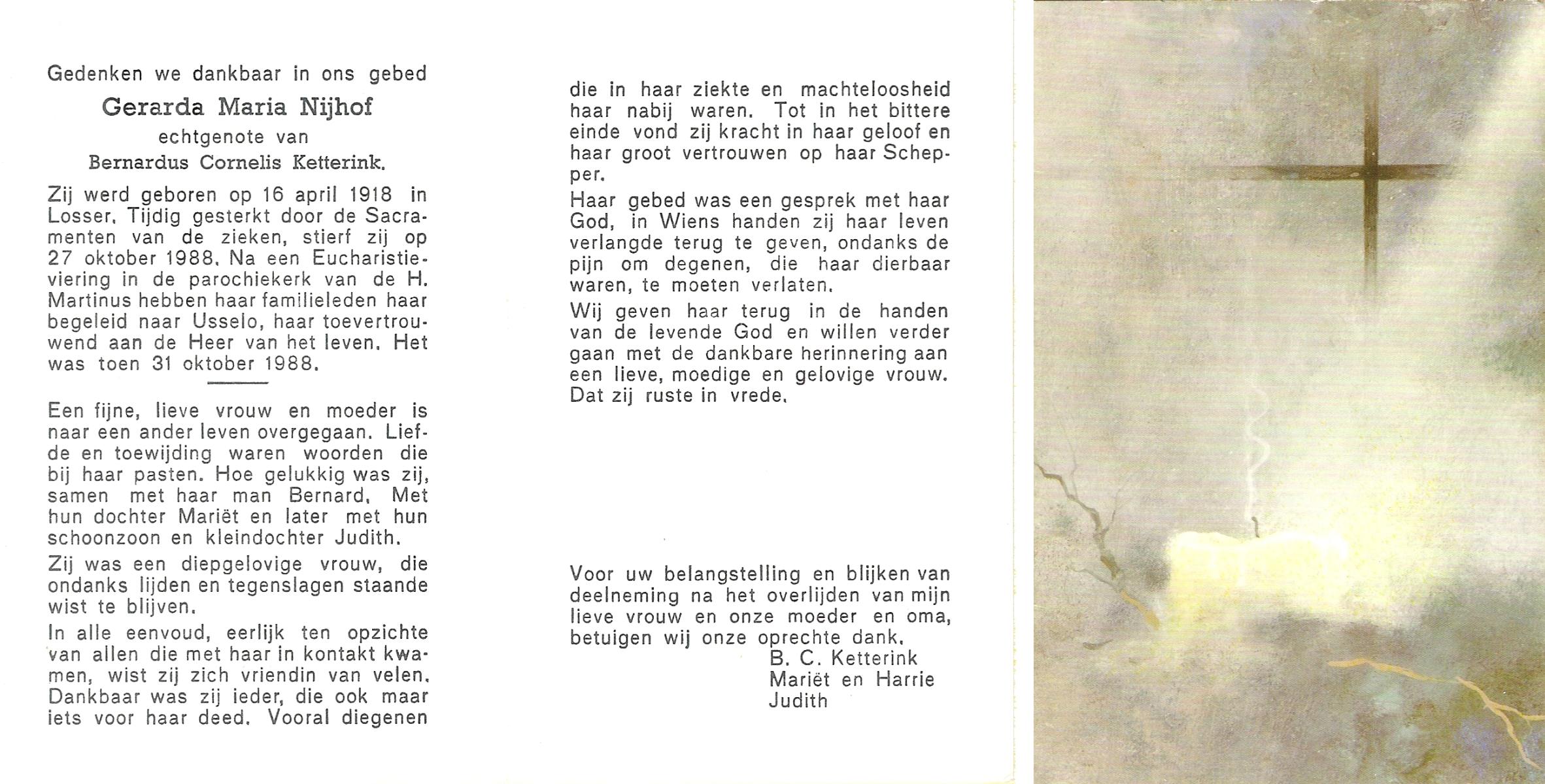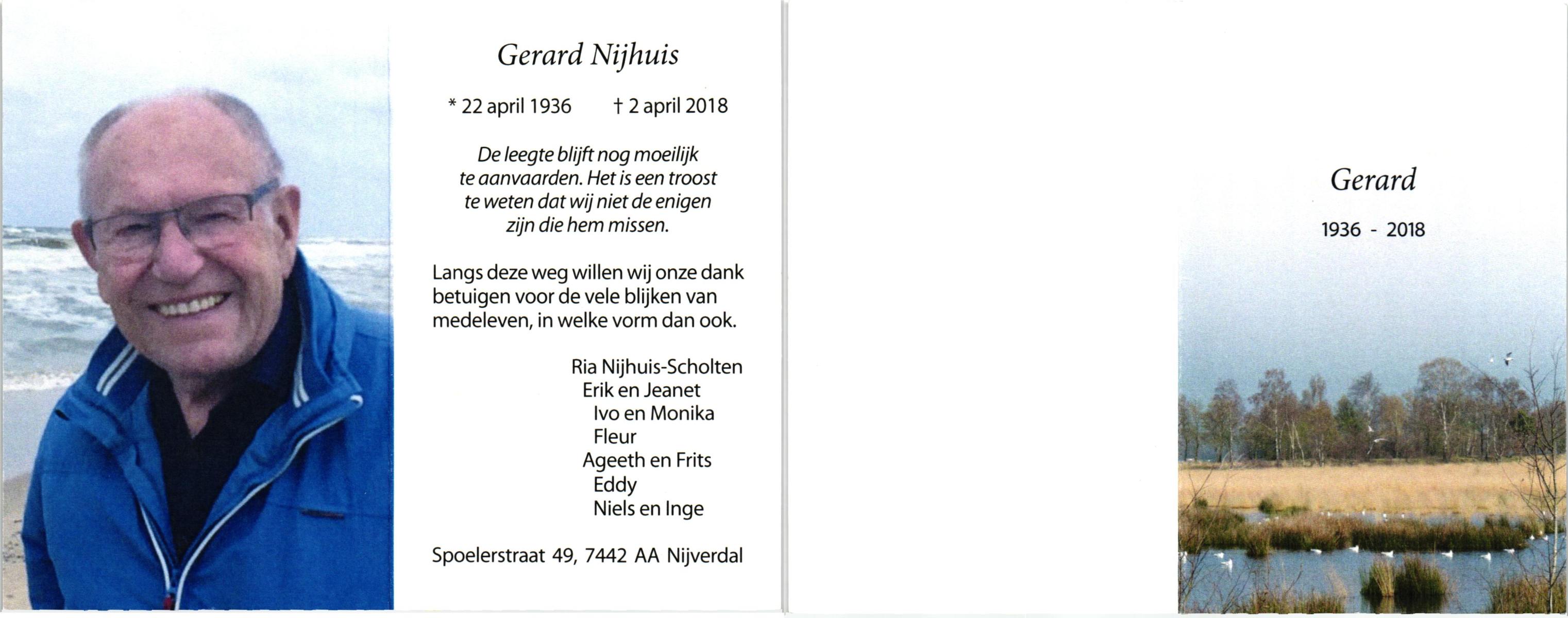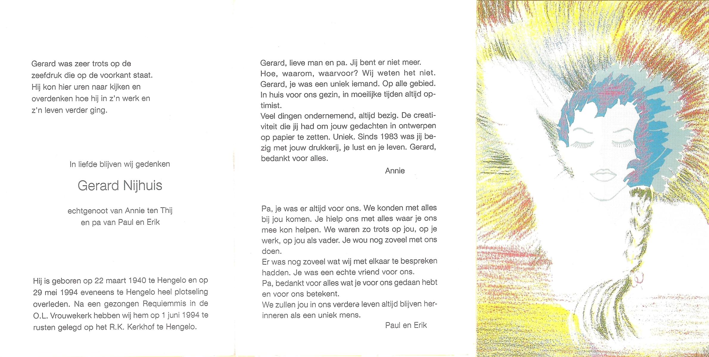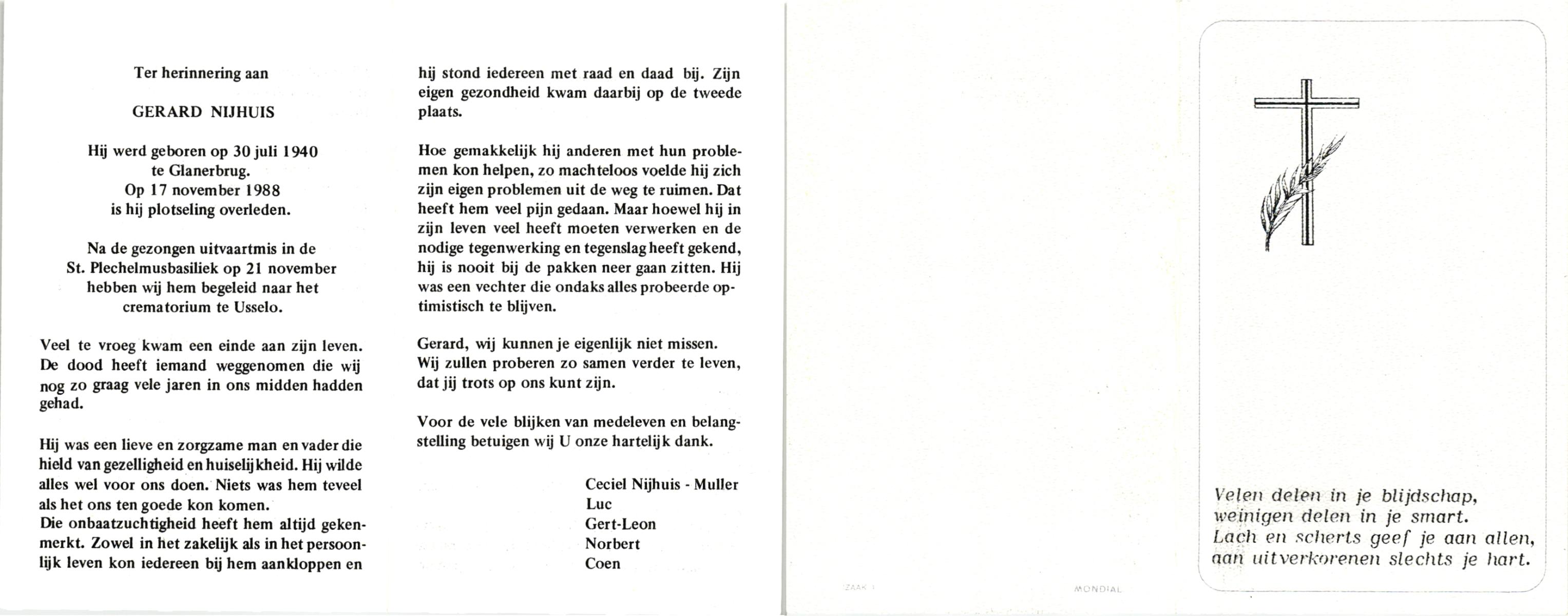 NIJHUIS, , Gerard, geboren op 30-7-1940 te Glanerbrug, overleden op 17-11-1988 op 48-jarige leeftijd, gecremeerd op 21-11-1988 te Usselo.