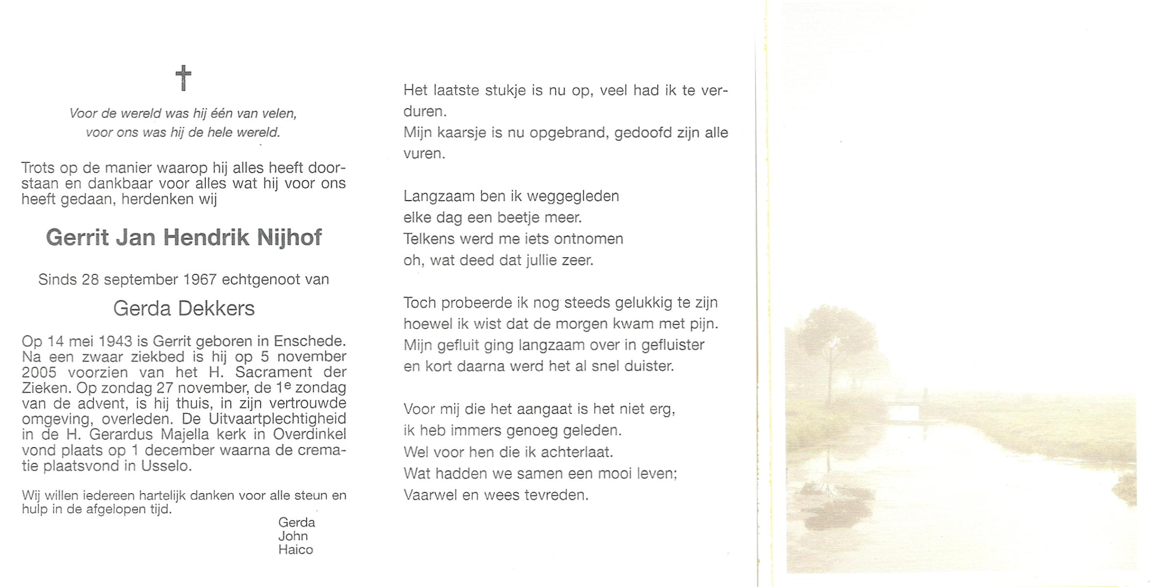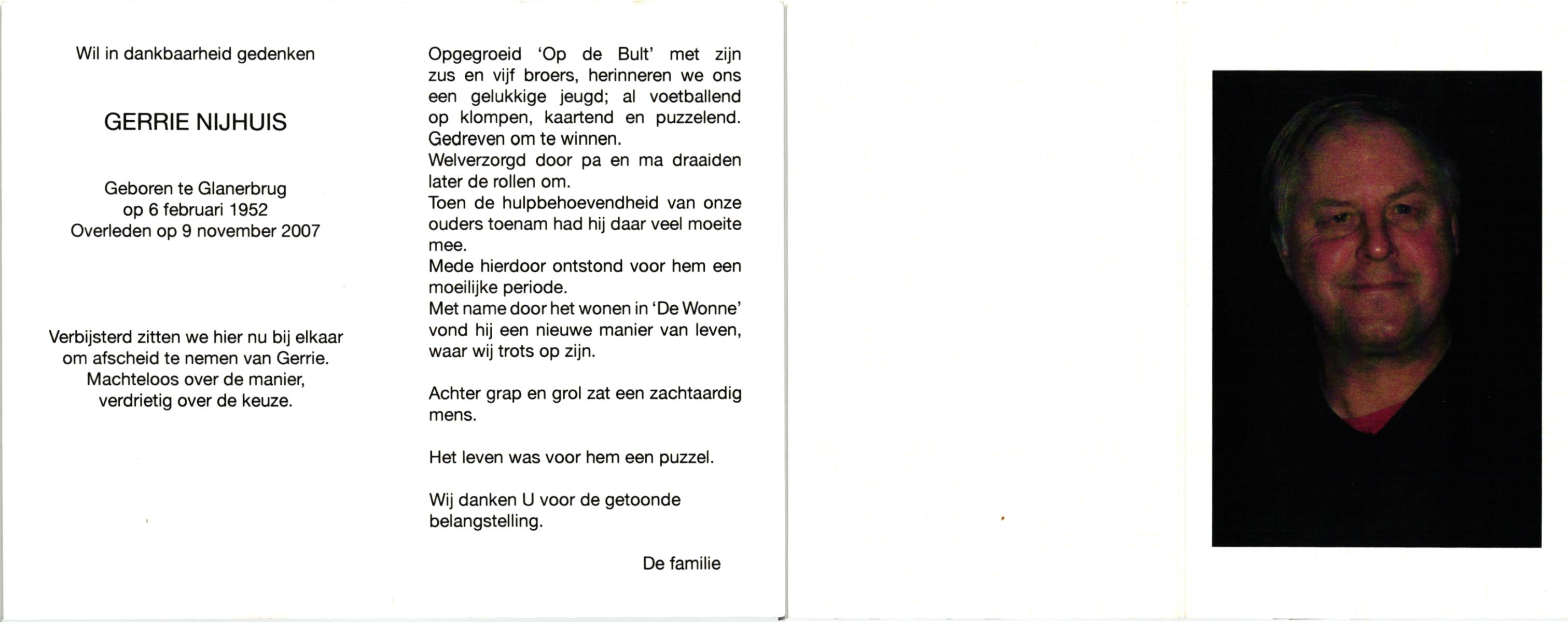 NIJHUIS, , Gerrie, geboren op 6-2-1952 te Glanerbrug, overleden op 9-11-2007 op 55-jarige leeftijd.