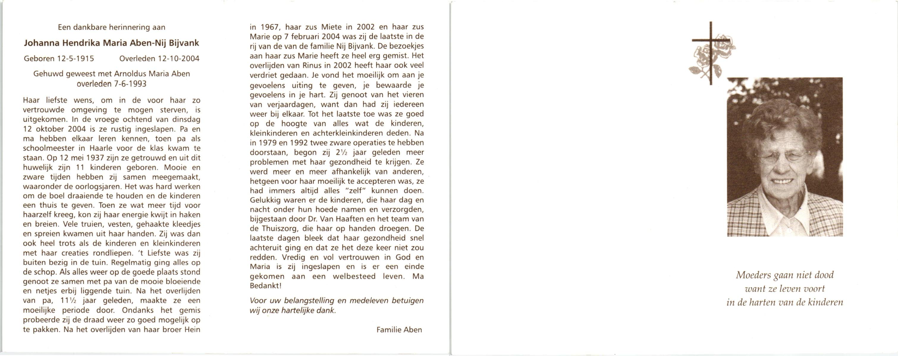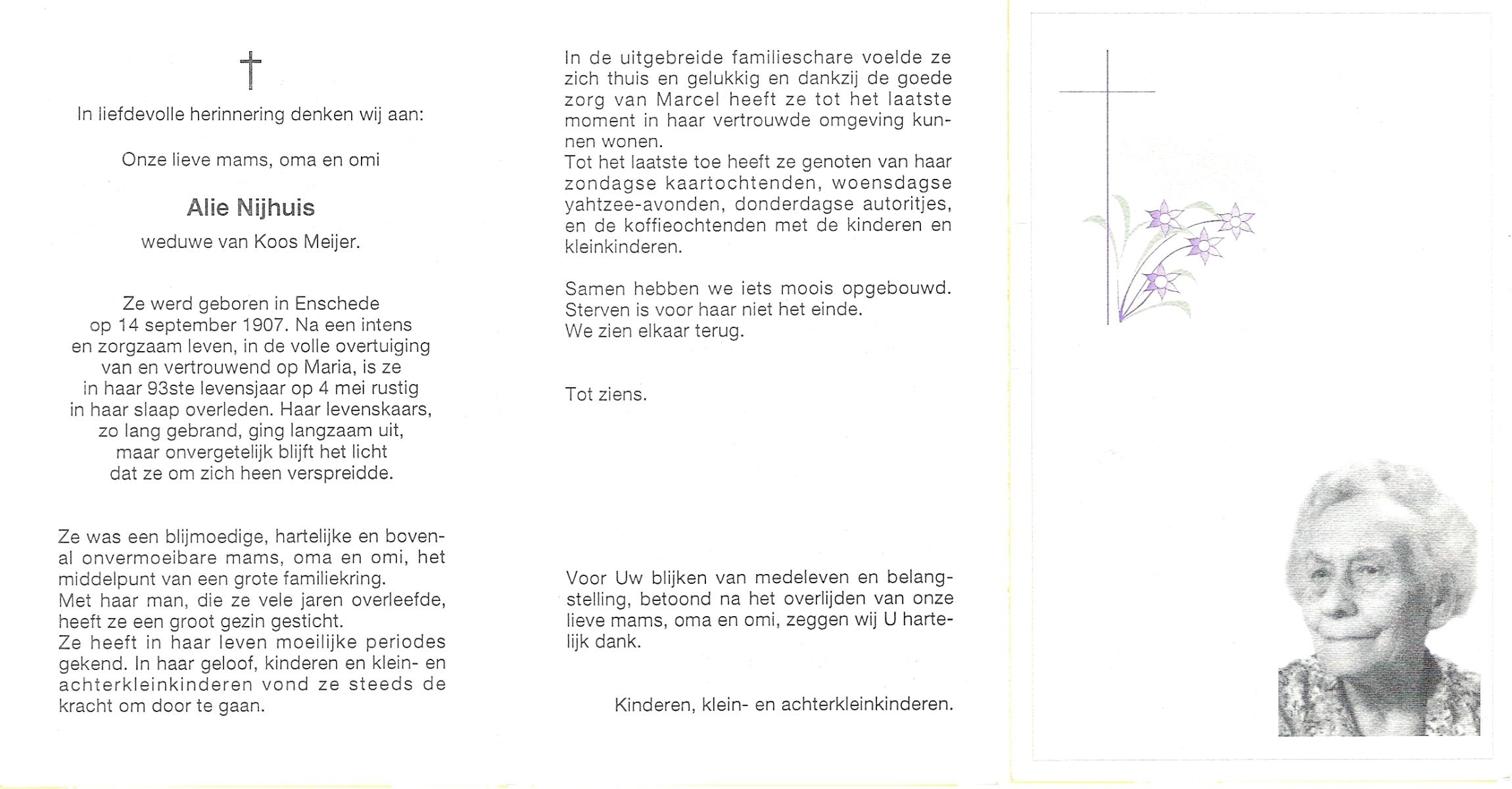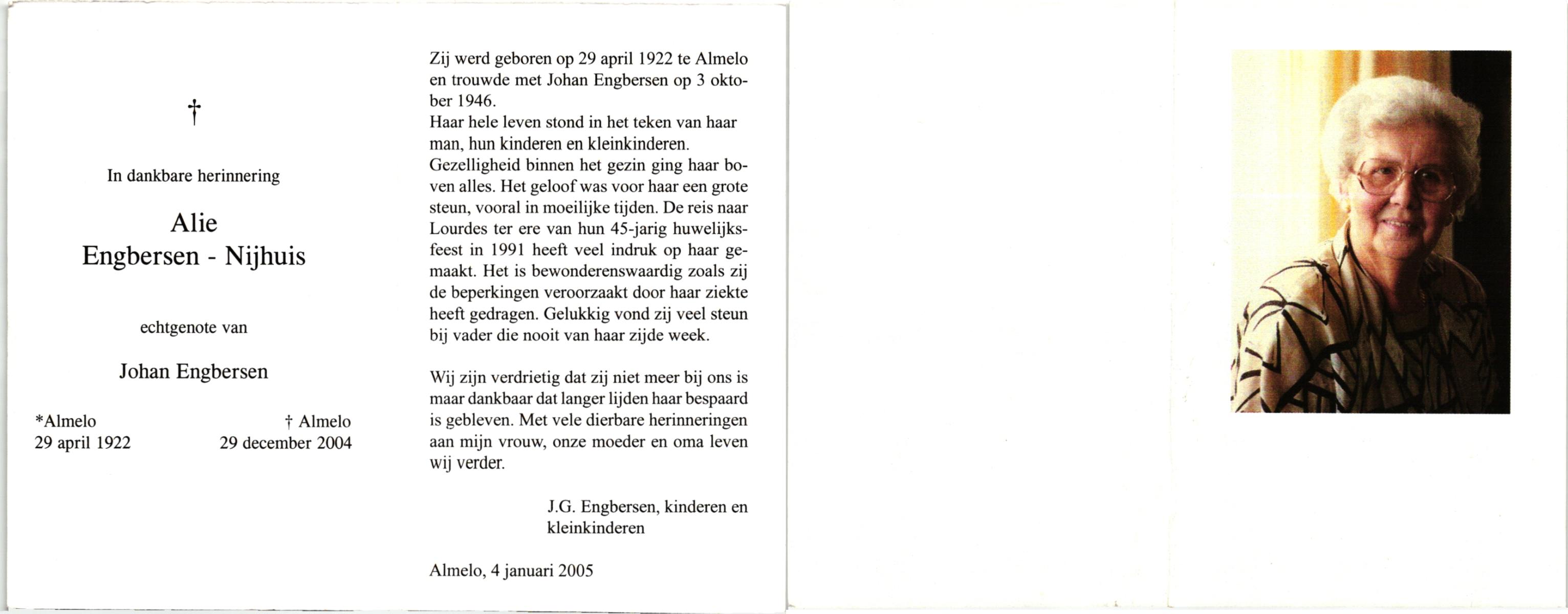 NIJHUIS, , Alie, geboren op 29-4-1922 te Almelo, overleden op 29-12-2004 te Almelo op 82-jarige leeftijd.