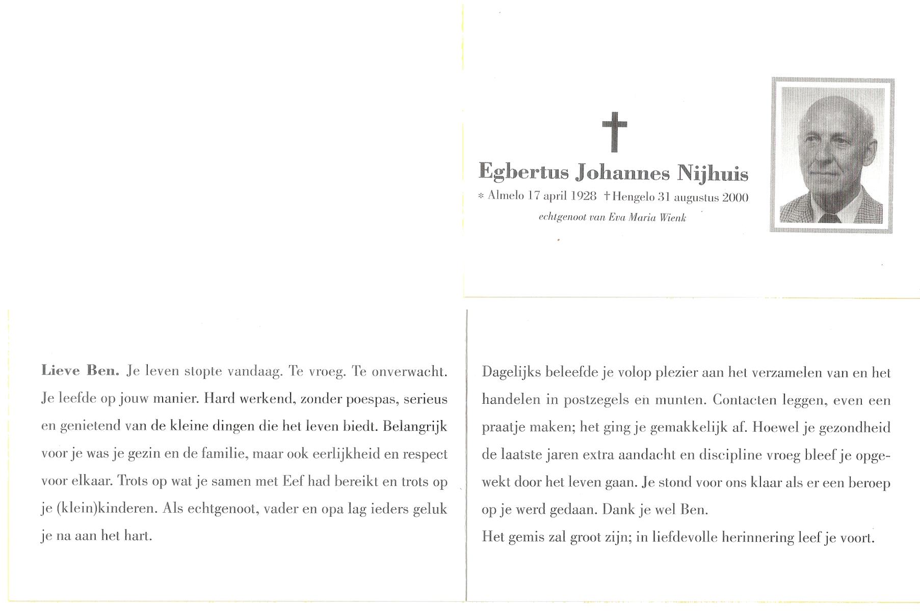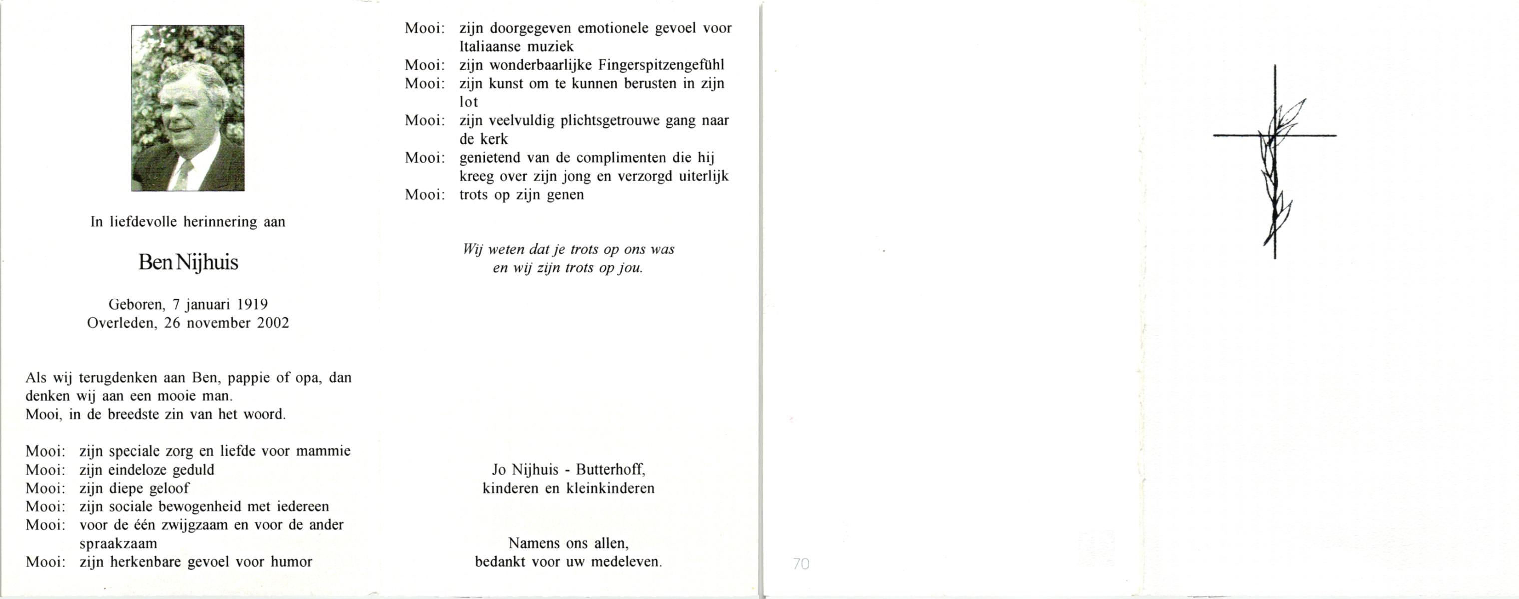 NIJHUIS, , Ben, geboren op 7-1-1919, overleden op 26-11-2002 op 83-jarige leeftijd.