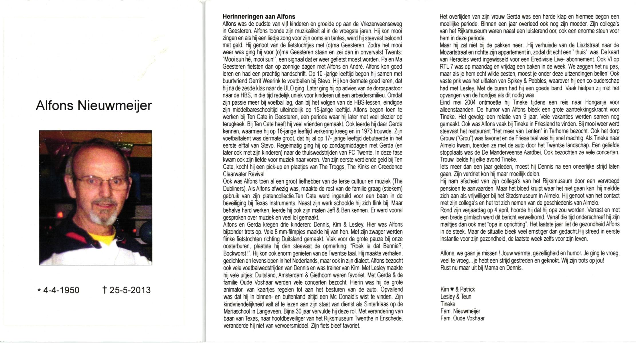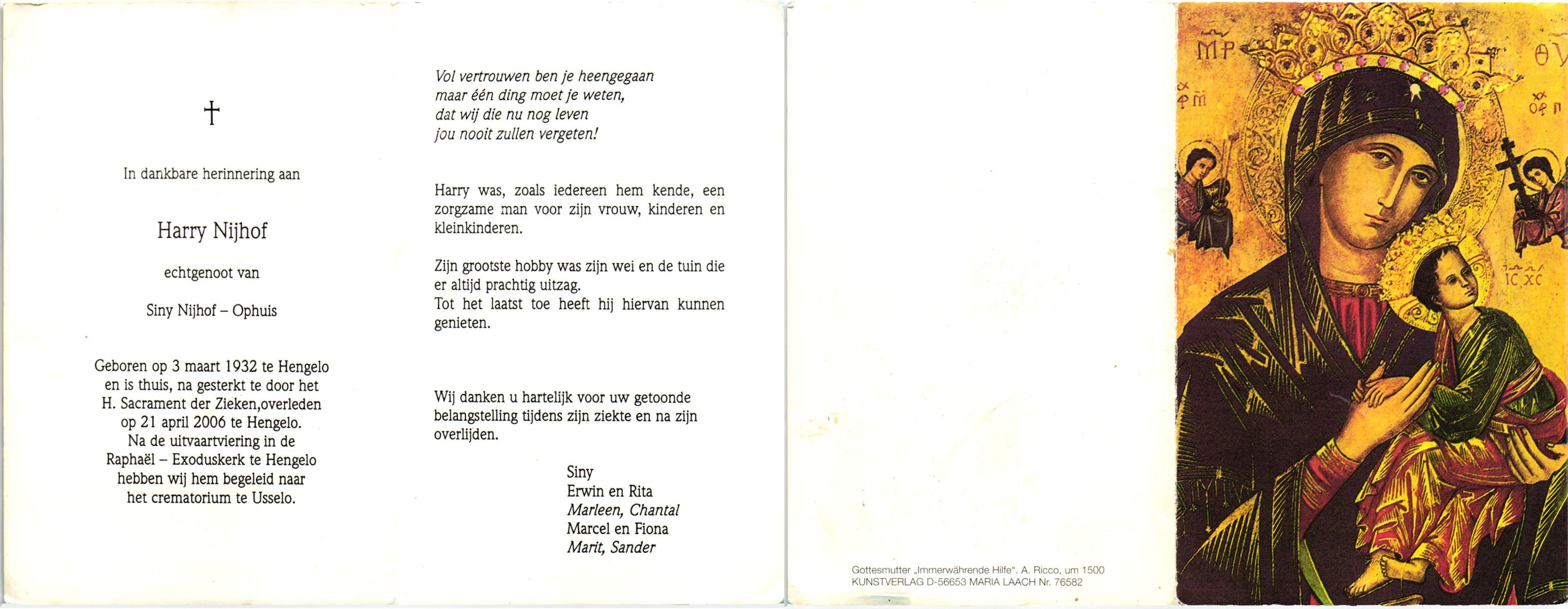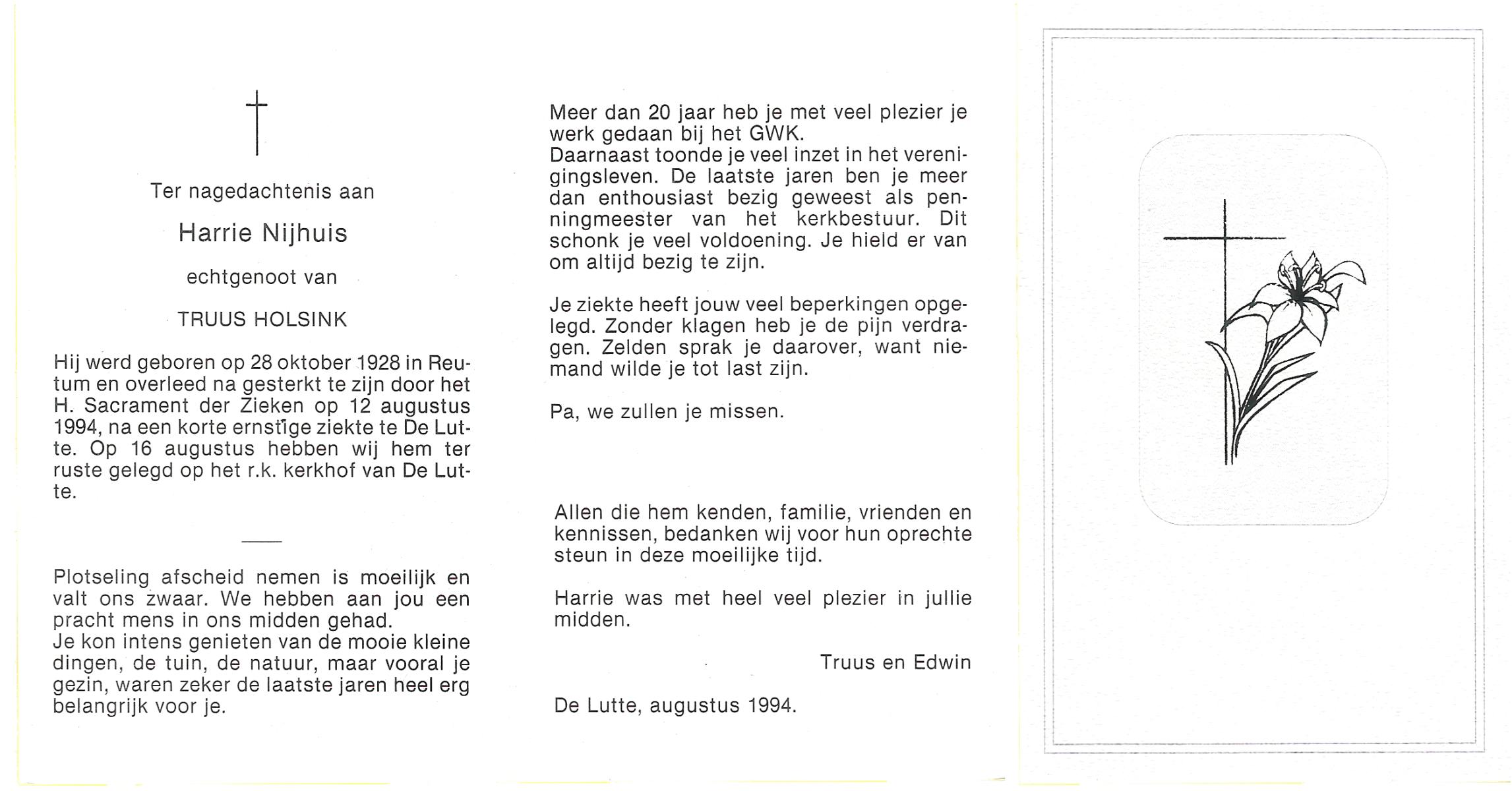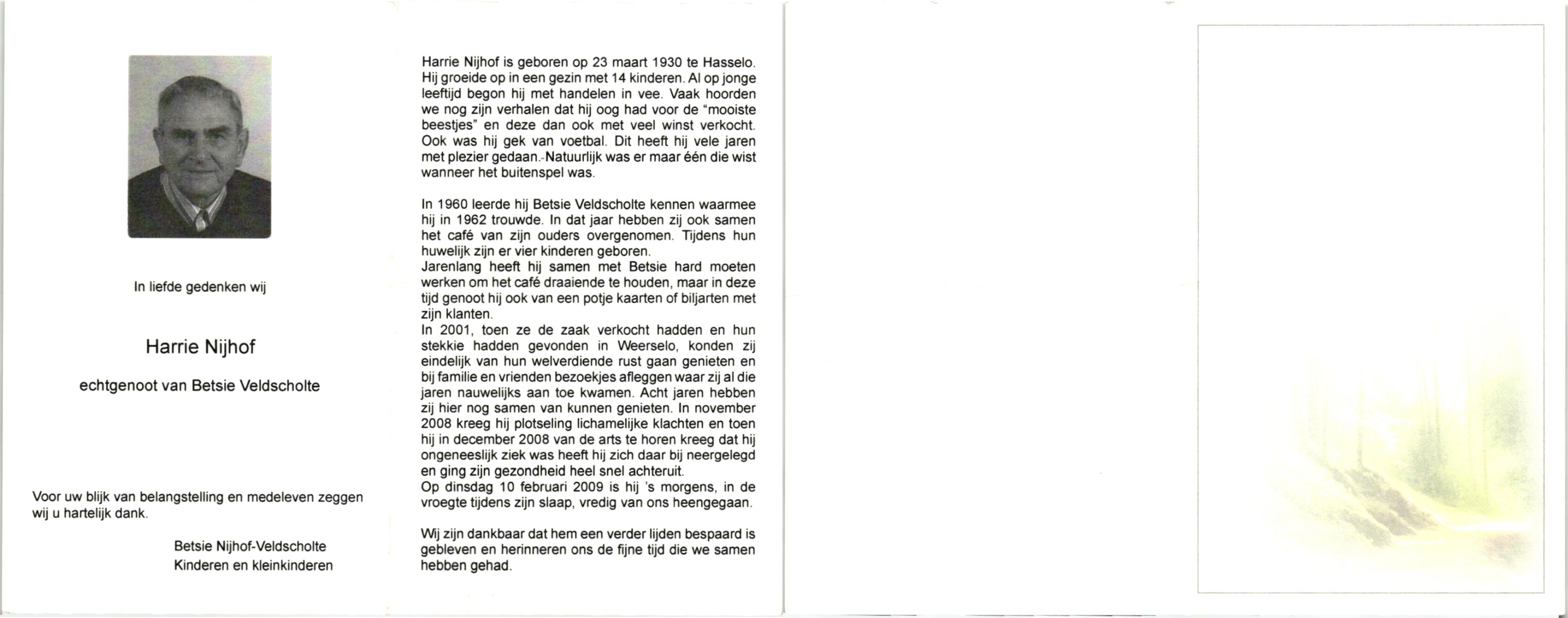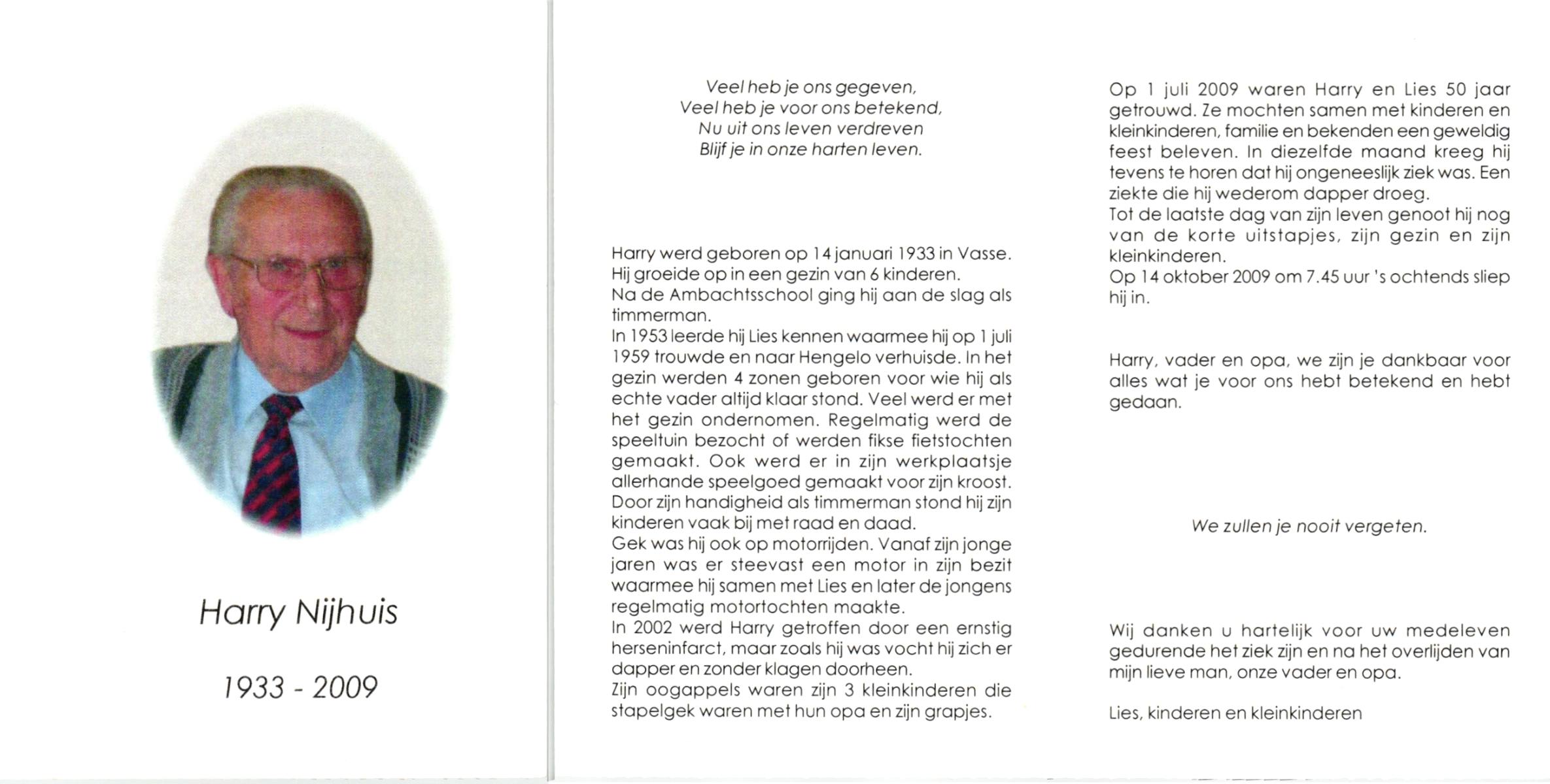 NIJHUIS, , Harry, geboren op 14-1-1933 te Vasse, overleden op 14-10-2009 op 76-jarige leeftijd.