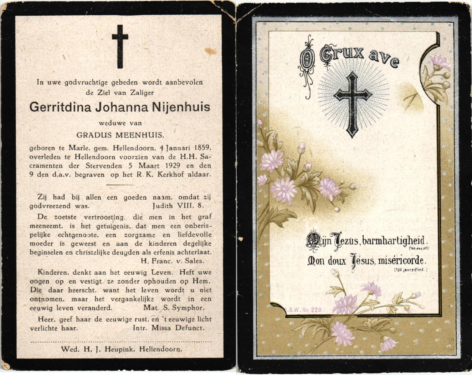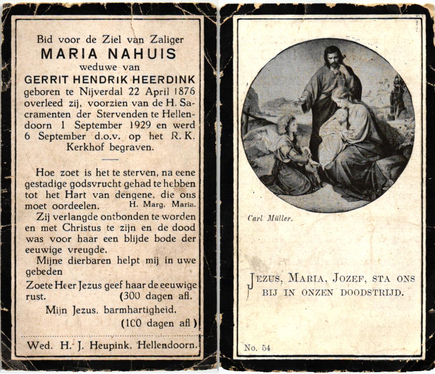 NAHUIS, , Maria, geboren op 22-04-1876 te Hellendoorn, Nijverdal, overleden op 1-9-1929 te Hellendoorn op 53-jarige leeftijd, begraven op 6-9-1929 te Hellendoorn, rk.