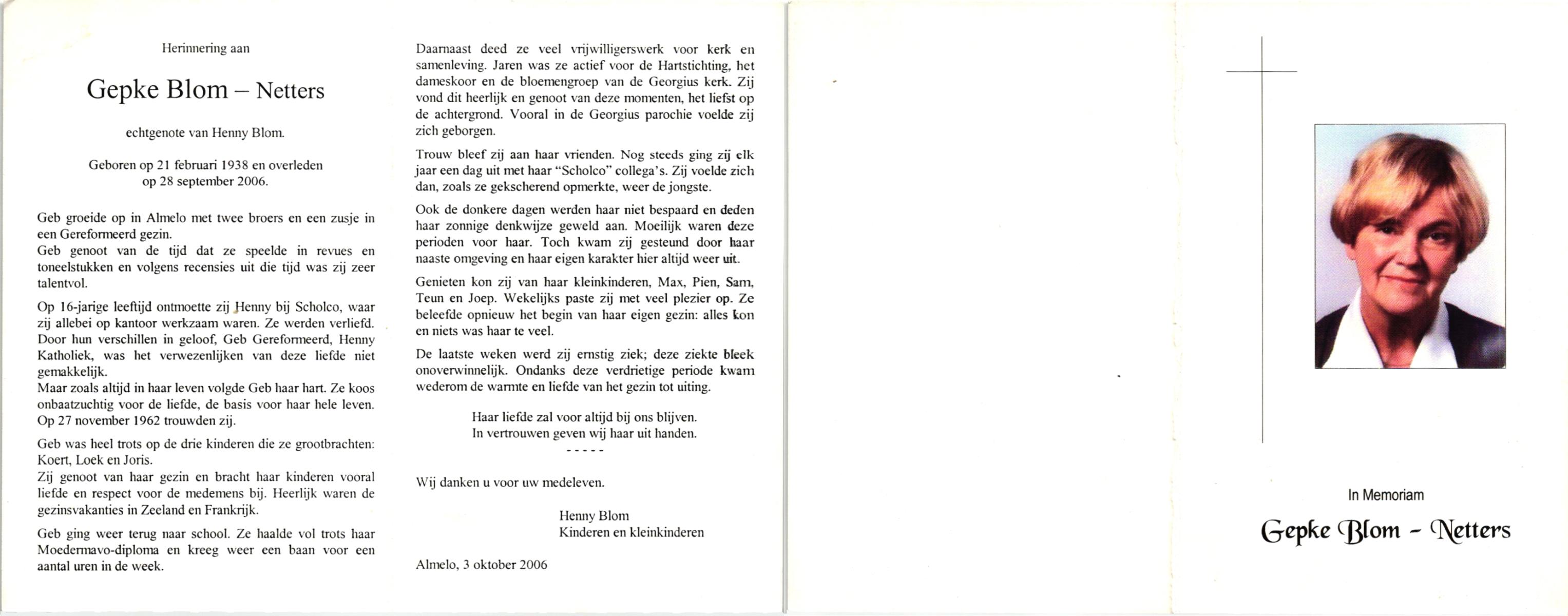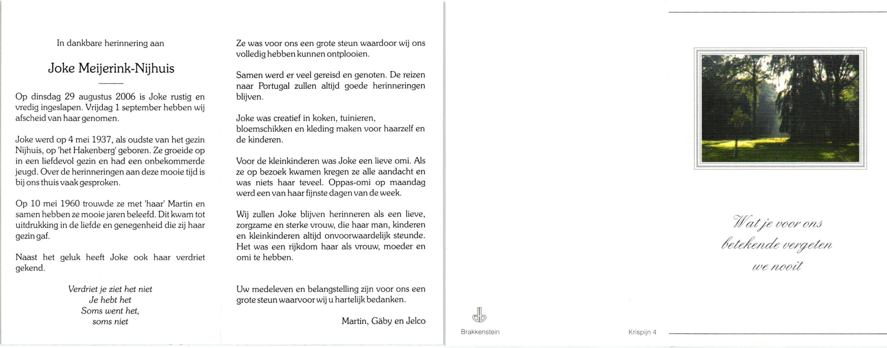 NIJHUIS, , Joke, geboren op 4-5-1937, overleden op 29-8-2006 op 69-jarige leeftijd.