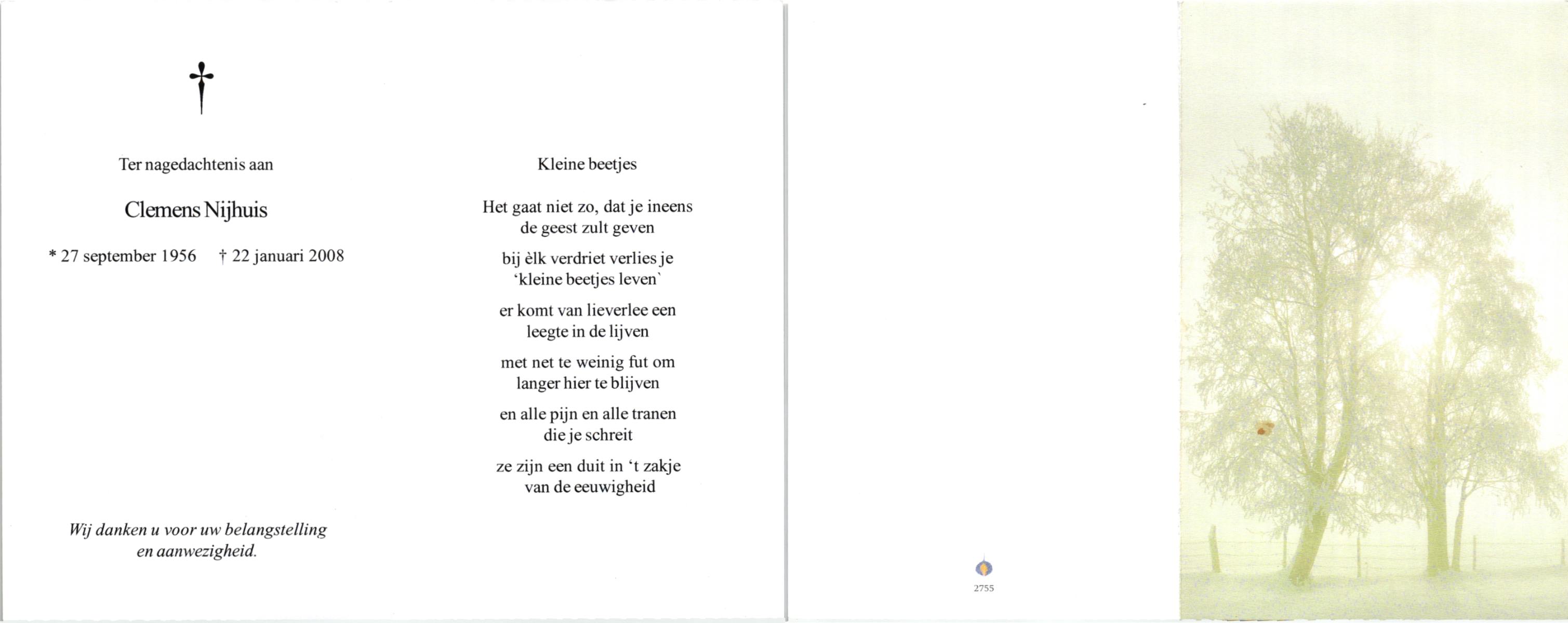 NIJHUIS, , Clemens, geboren op 27-9-1956, overleden op 22-1-2008 op 51-jarige leeftijd.