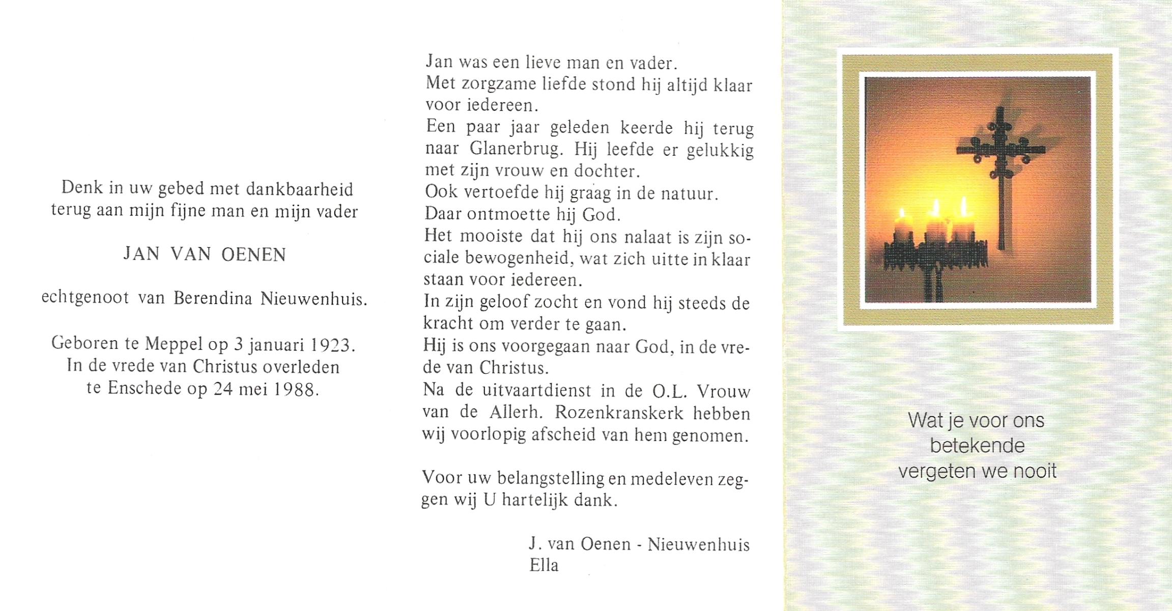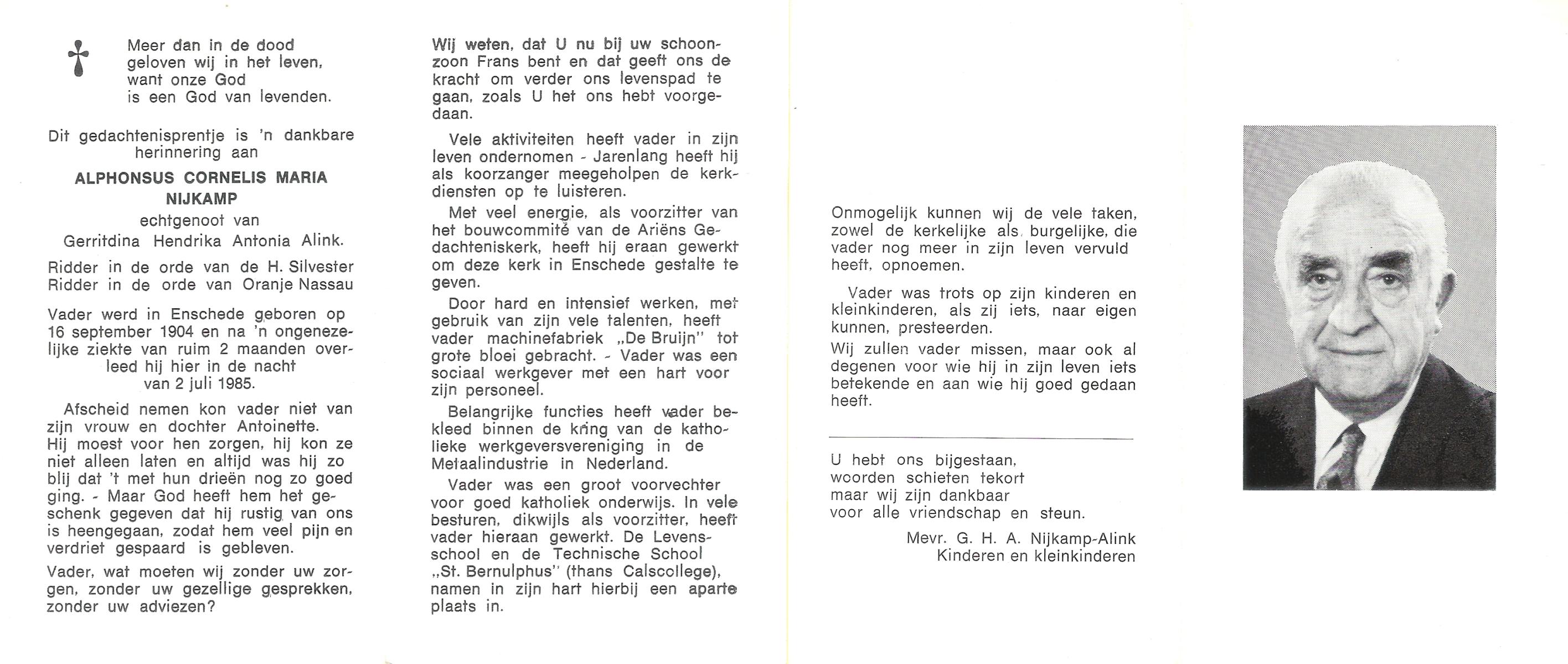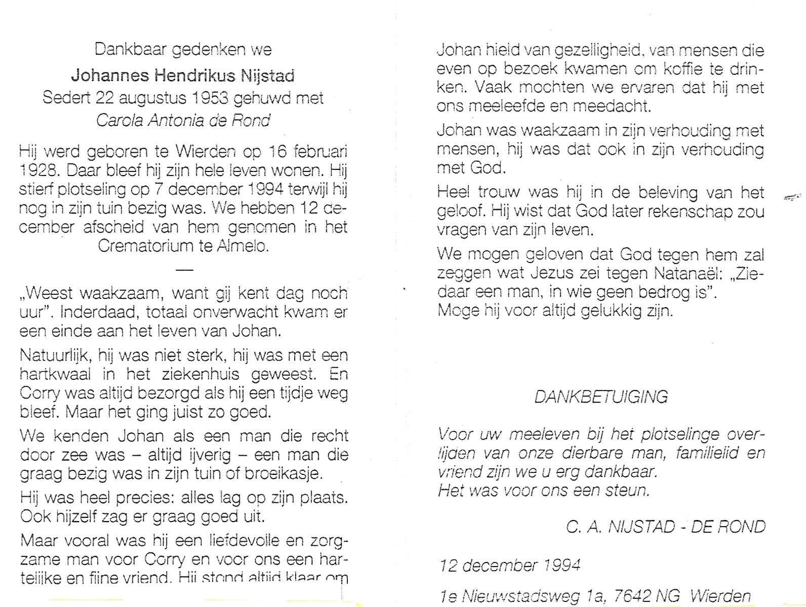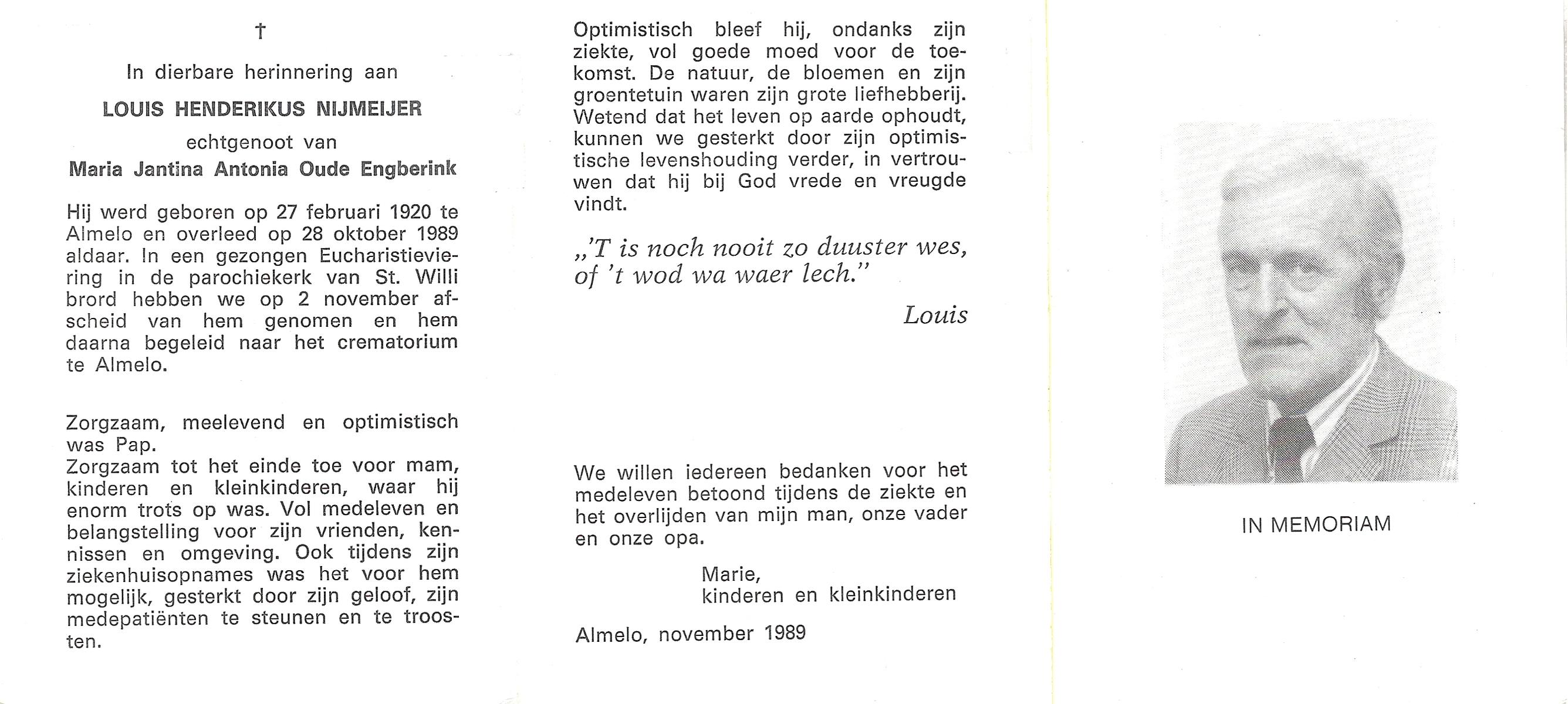 NIJKAMP, Johan H., geboren op 24-9-1928 te Lonneker, overleden op 7-8-1988 te Oldenzaal op 59-jarige leeftijd.