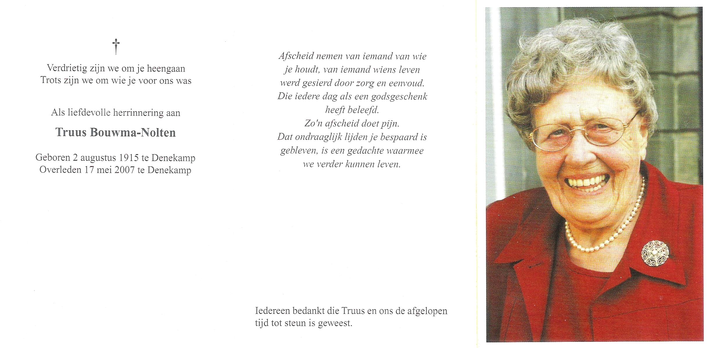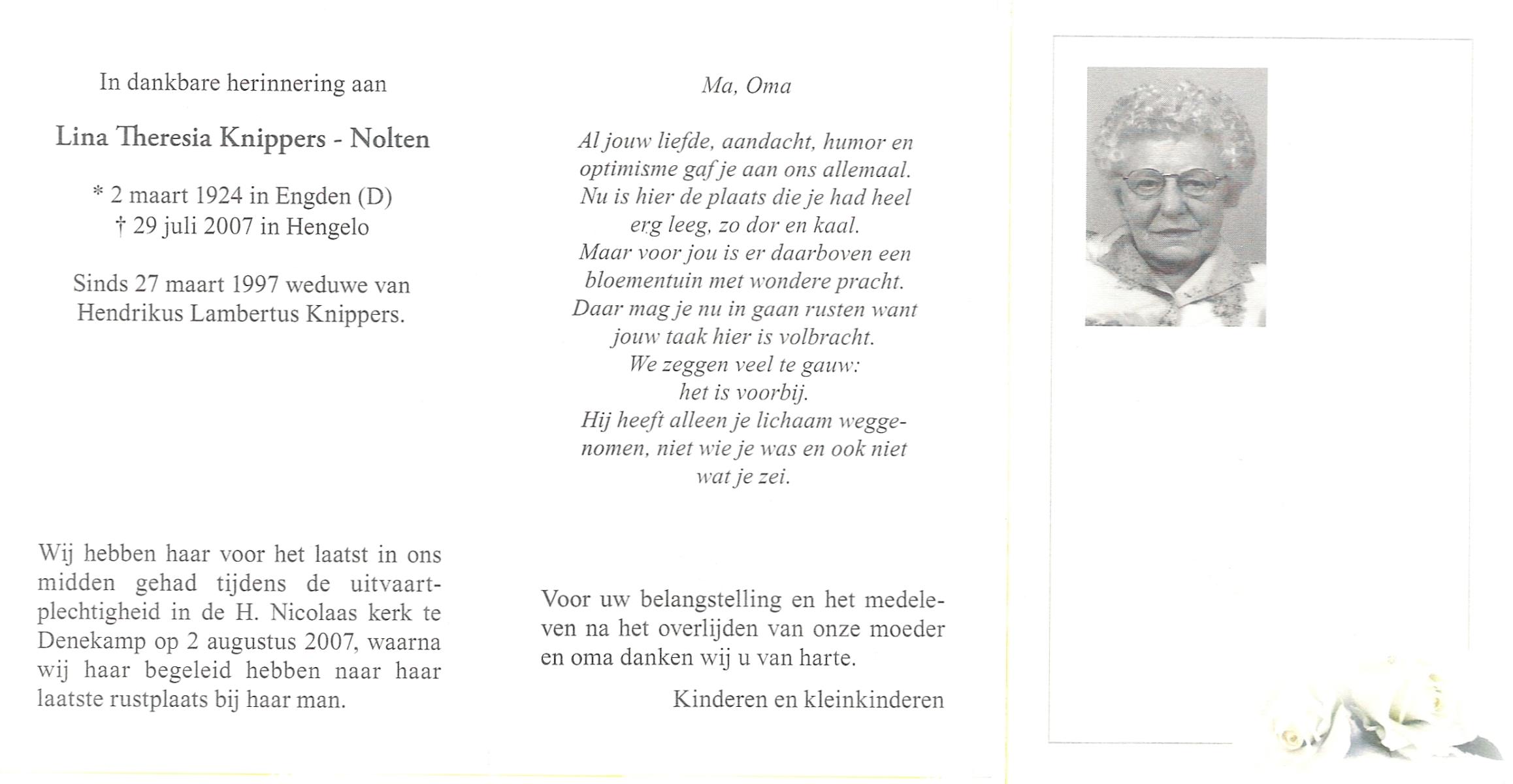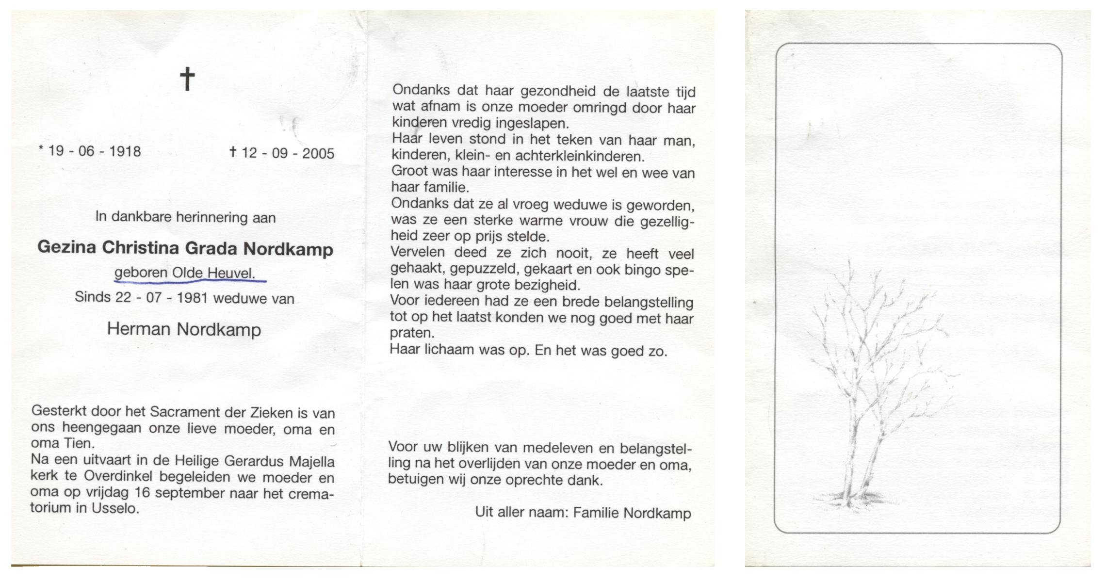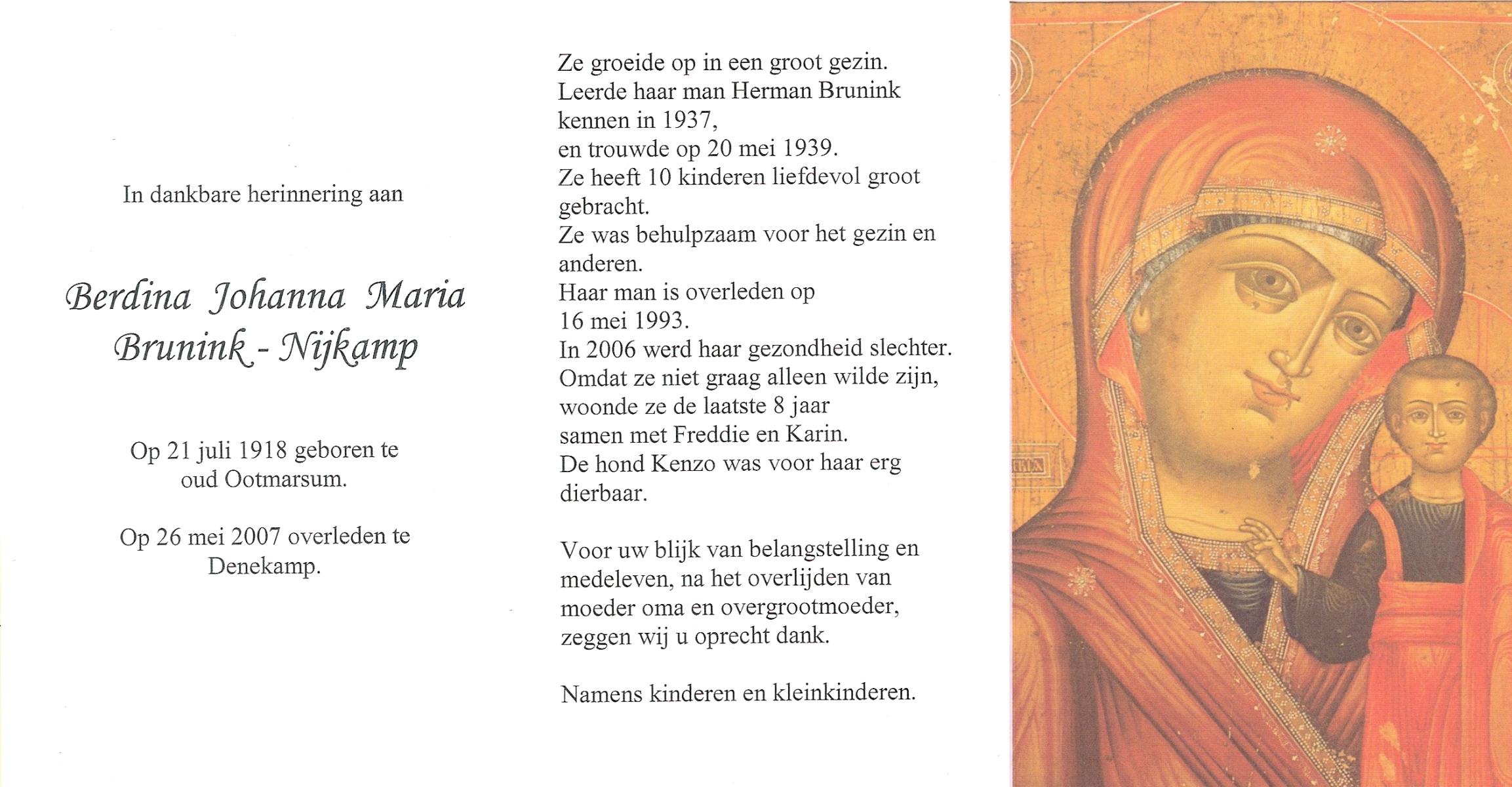 NIJKAMP, Berdina Johanna, geboren op 21-7-1918 te Ootmarsum, overleden op 26-5-2007 te Denekamp op 88-jarige leeftijd.