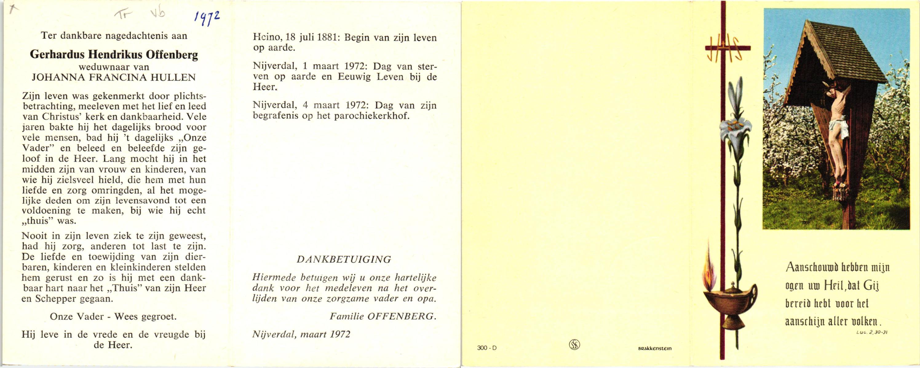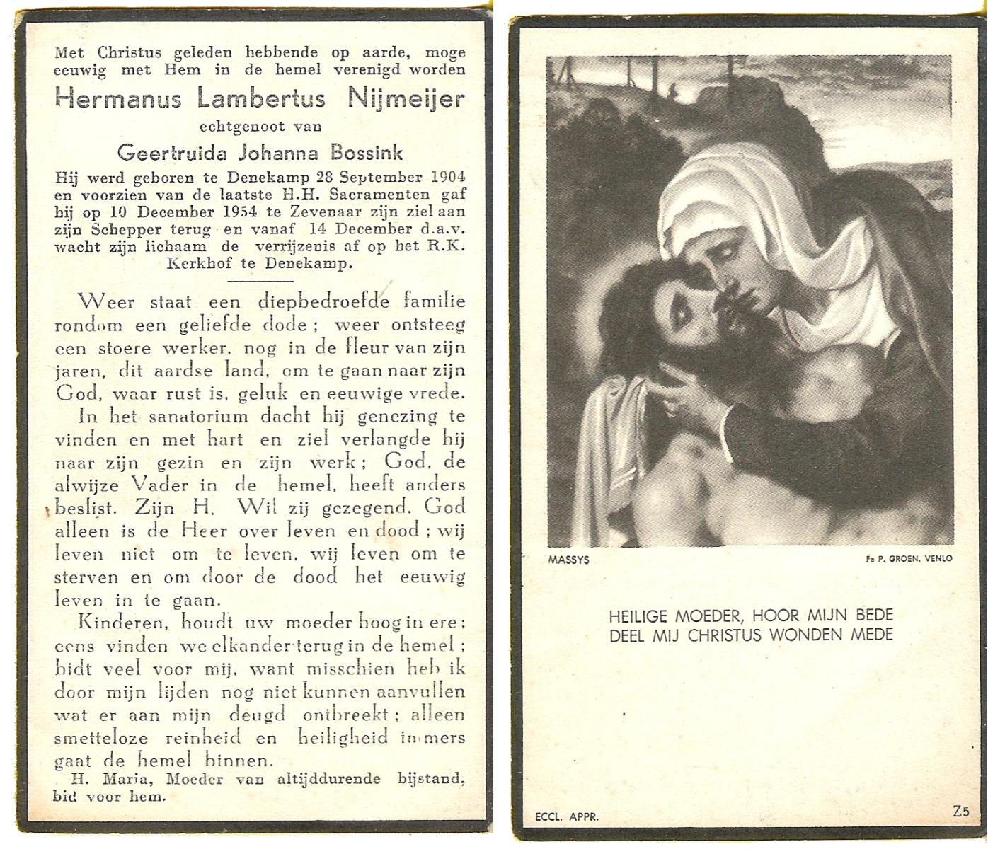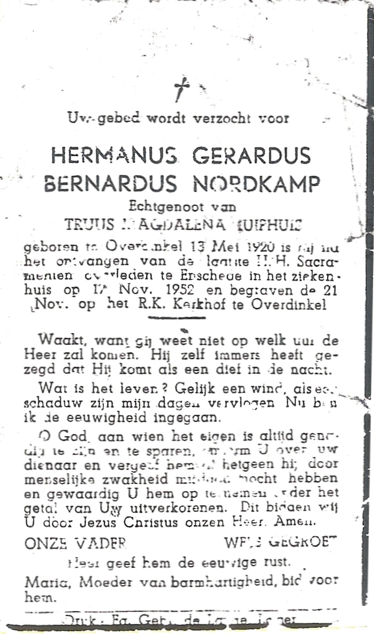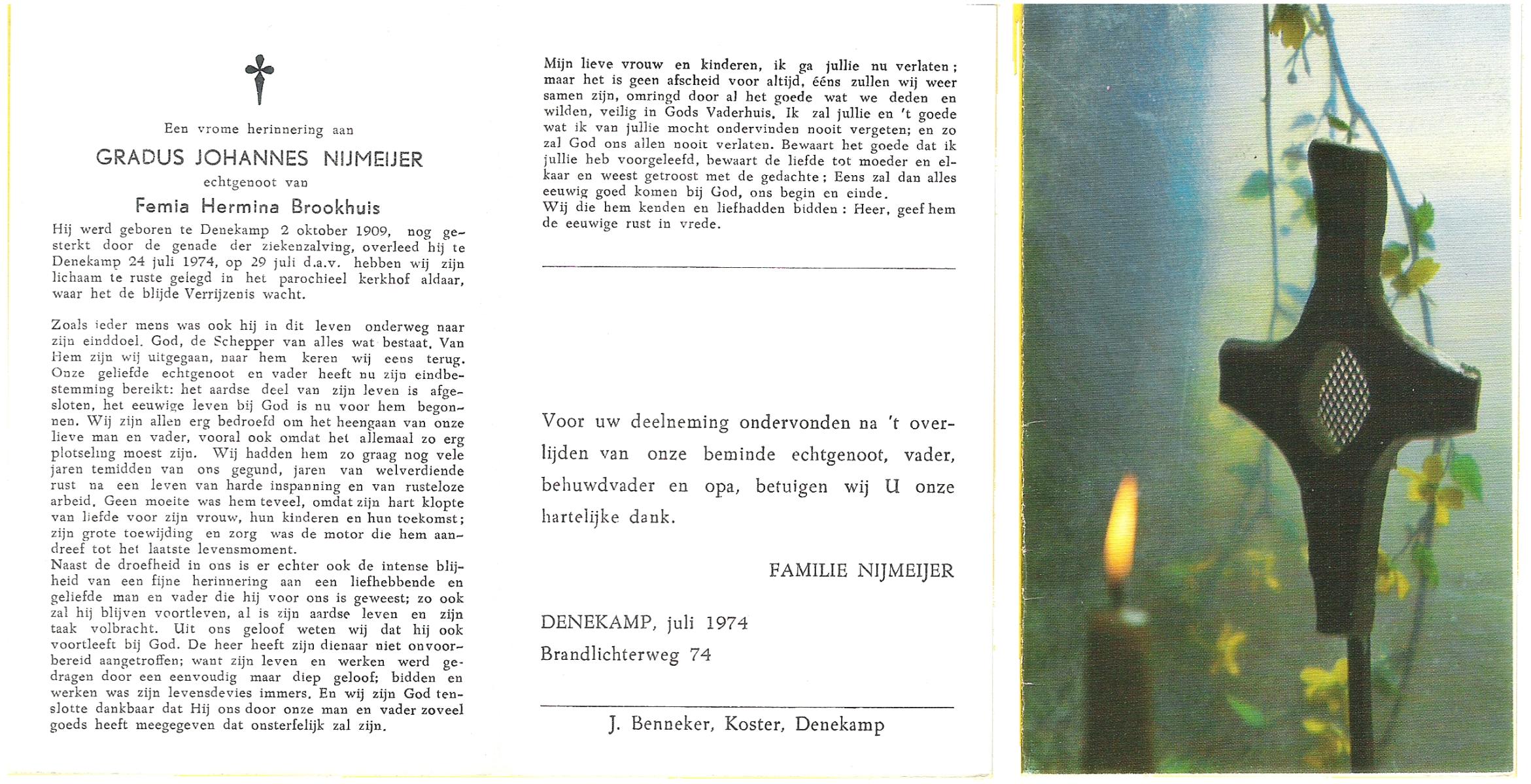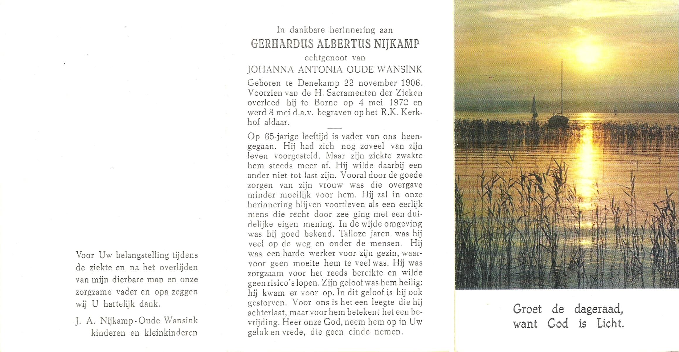 NIJKAMP, Gerhardus Albertus, geboren op 22-11-1906 te Denekamp, overleden op 4-5-1972 te Borne op 65-jarige leeftijd, begraven op 8-5-1972 te Borne.