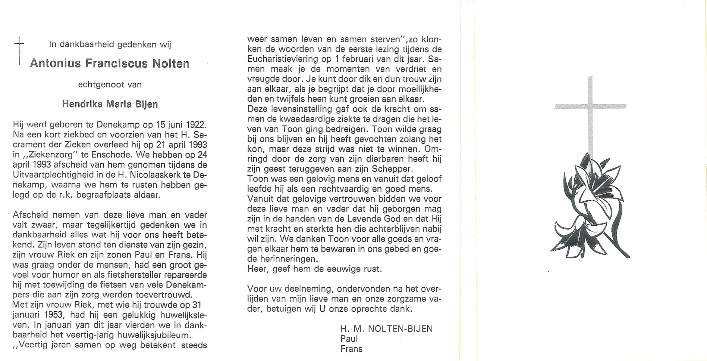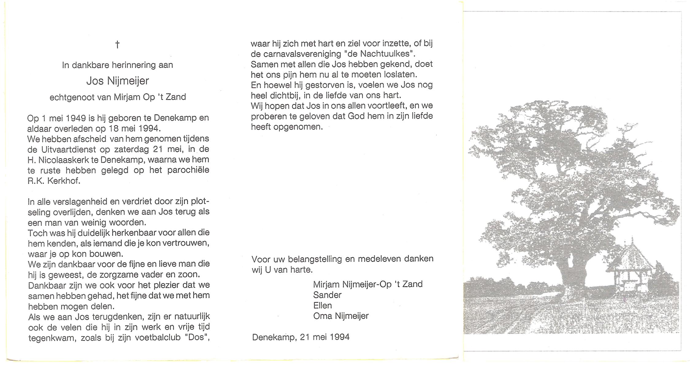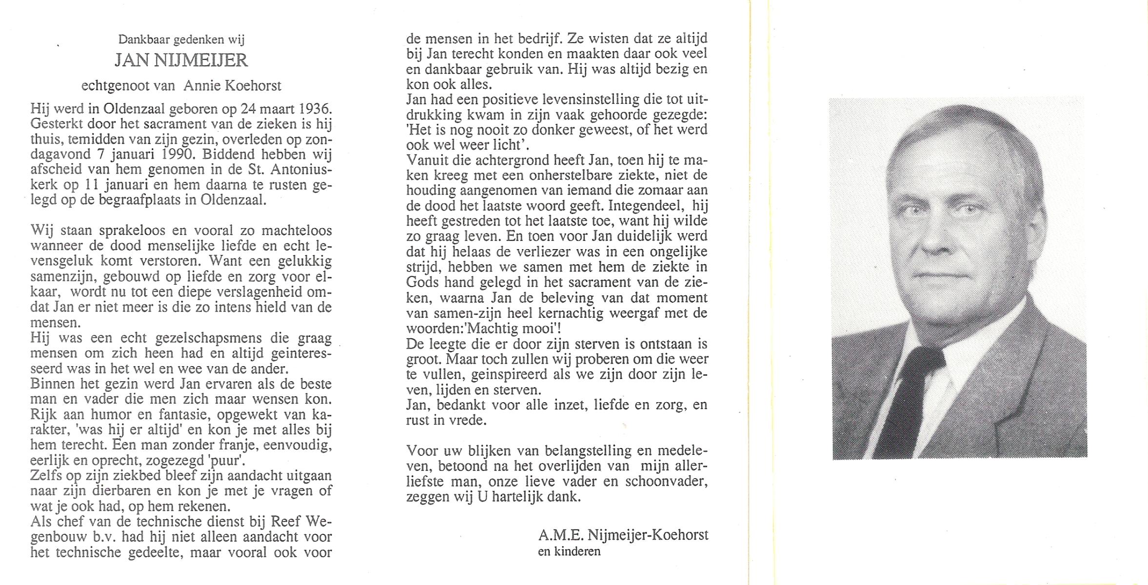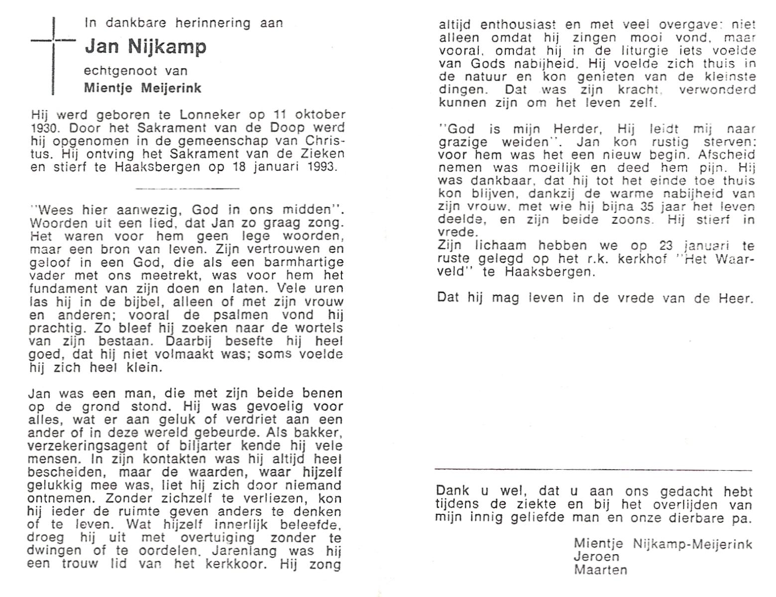 NIJKAMP, Jan, geboren op 11-10-1930 te Lonneker, overleden op 18-1-1993 te Haaksbergen op 62-jarige leeftijd, begraven op 23-1-1993 te Haaksbergen.
